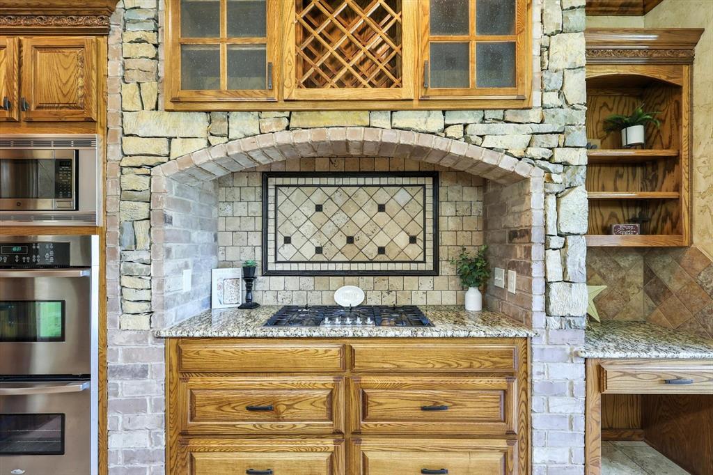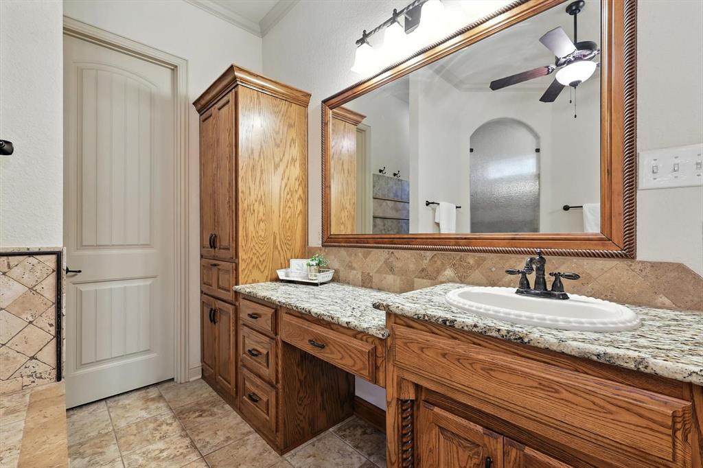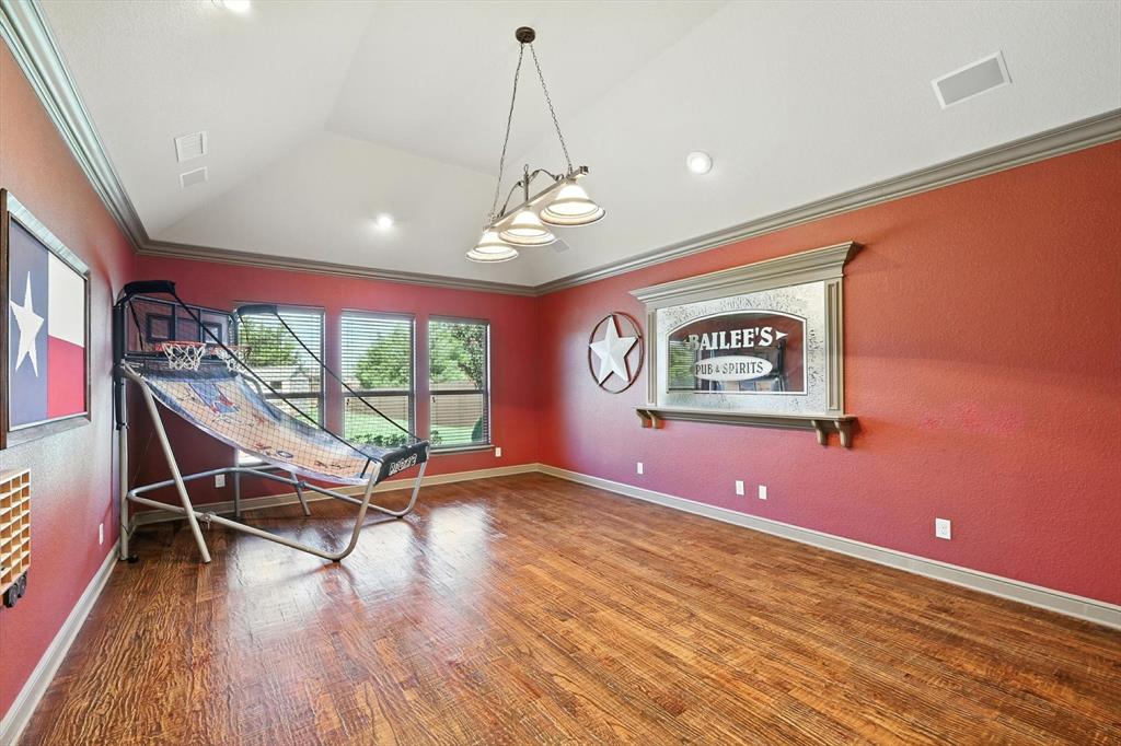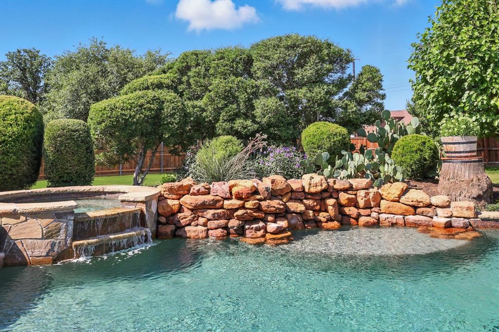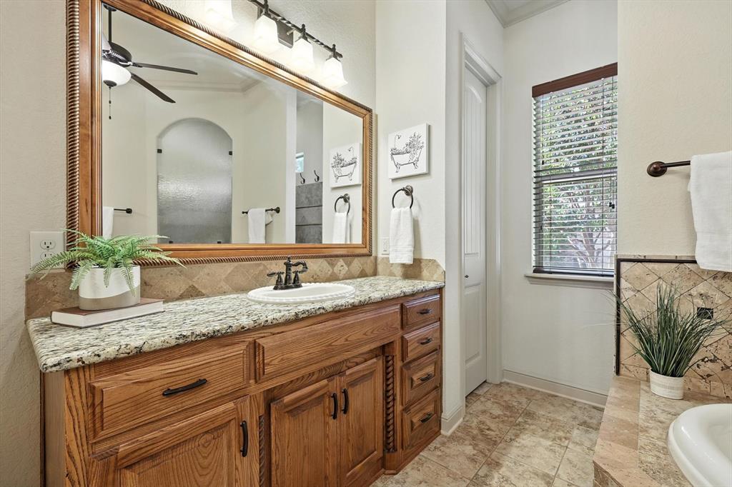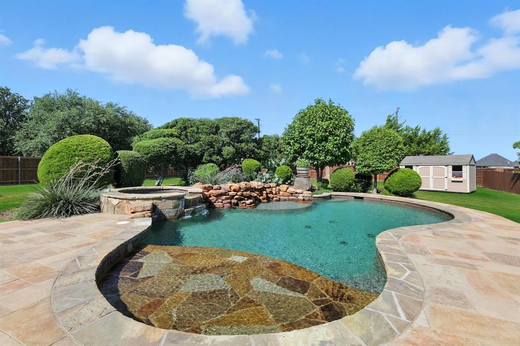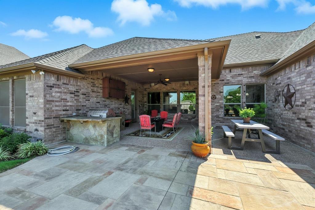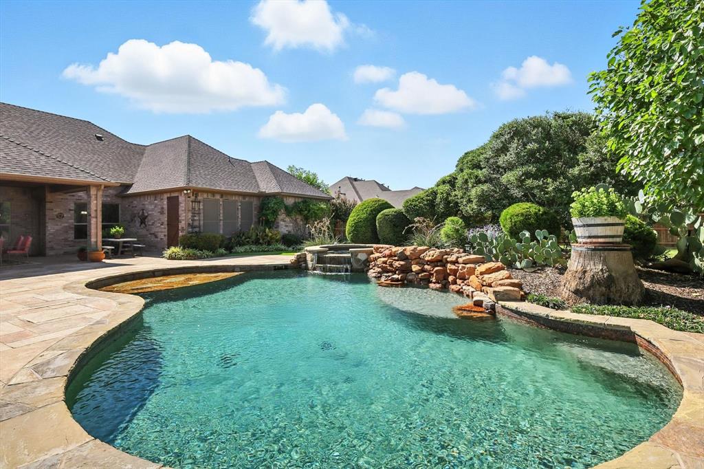 Beautiful custom built Bailee model home. Upgrades galore on a spacious half acre lot in sought after Spring Ranch. New Roof with Class 4 impact resistant shingles in 2025. Sparkling salt water pool and spa with rock formation and water features. Open concept floor plan with built-ins in the office and living room. Vaulted ceilings, extra large game room, granite countertops throughout the house. The kitchen is both functional and full of charm, offering a breakfast nook, and a gas cooktop framed with custom brick along with a large walk-in pantry. The private master suite comes with an extra large walk-in closet and the beautiful master bath has abundant storage and a large walk-in dual shower. There are four bedrooms total with three full baths. The backyard is a beautiful oasis setting with a large covered outdoor living area with refrigerator and built-in grill overlooking the pool. The oversized 3 car garage comes with storage closet.