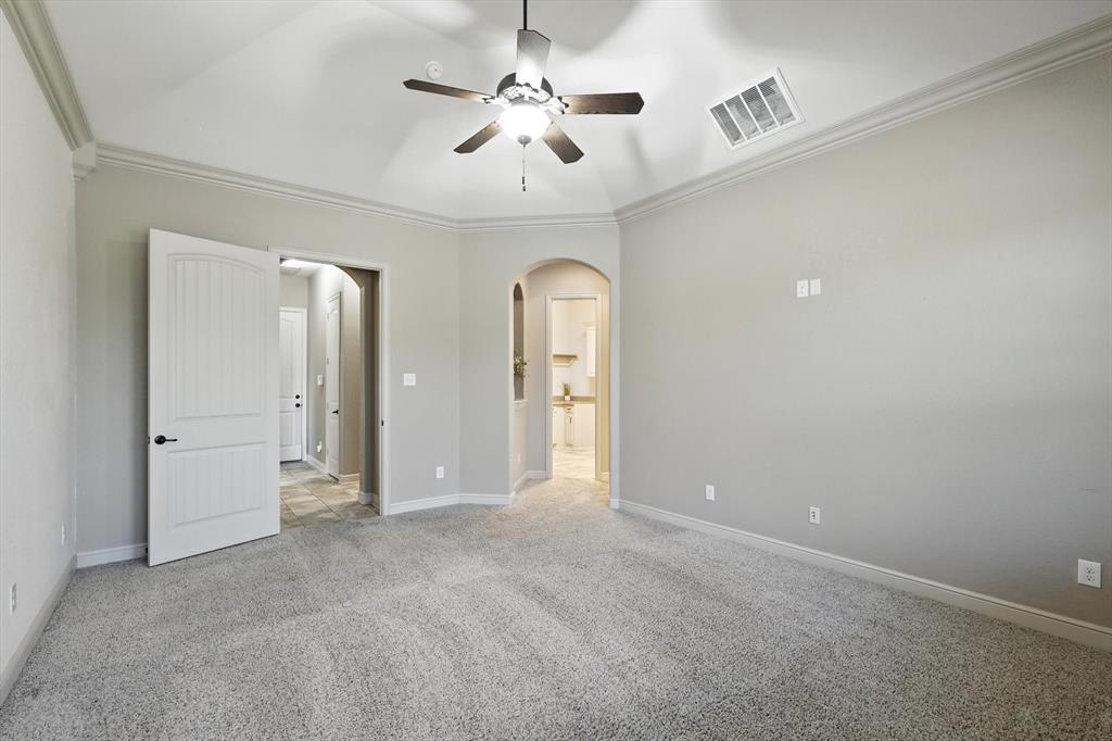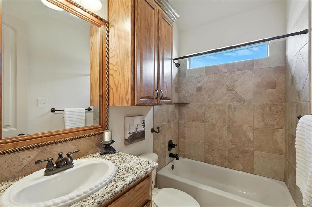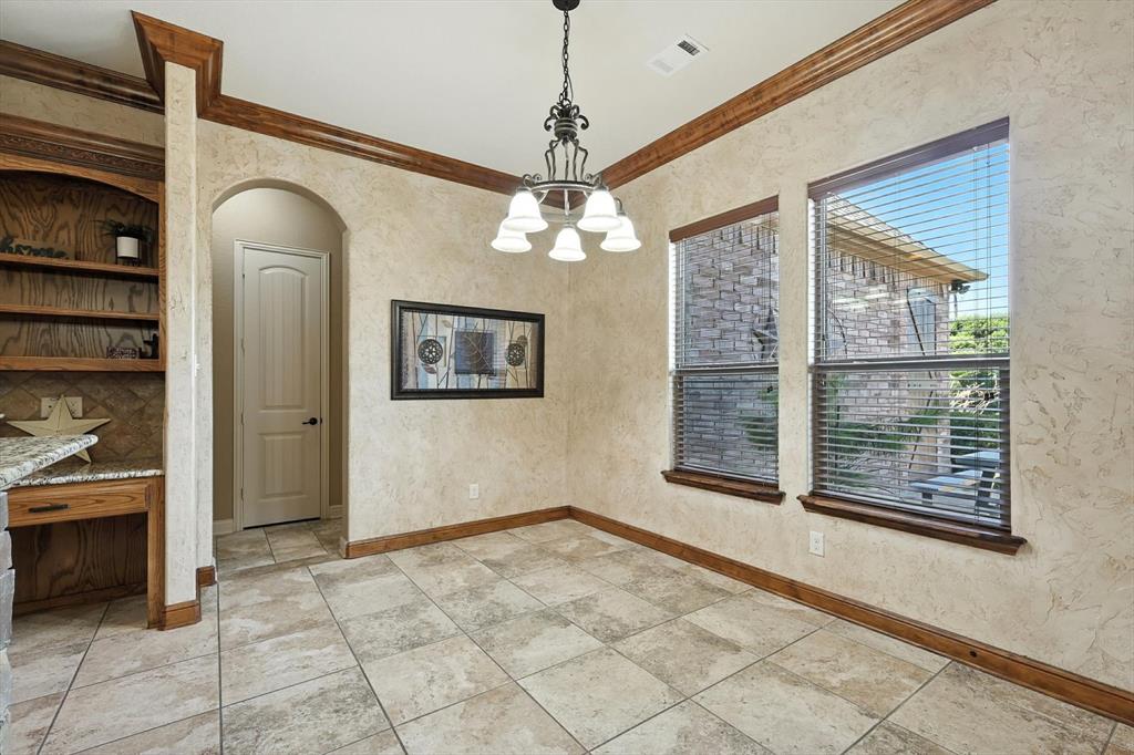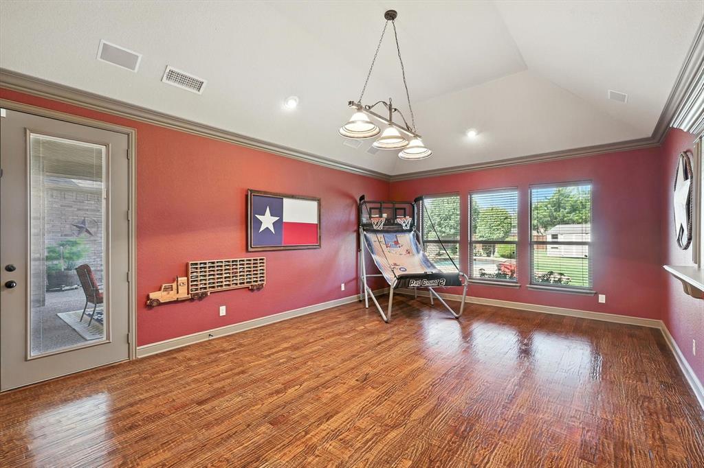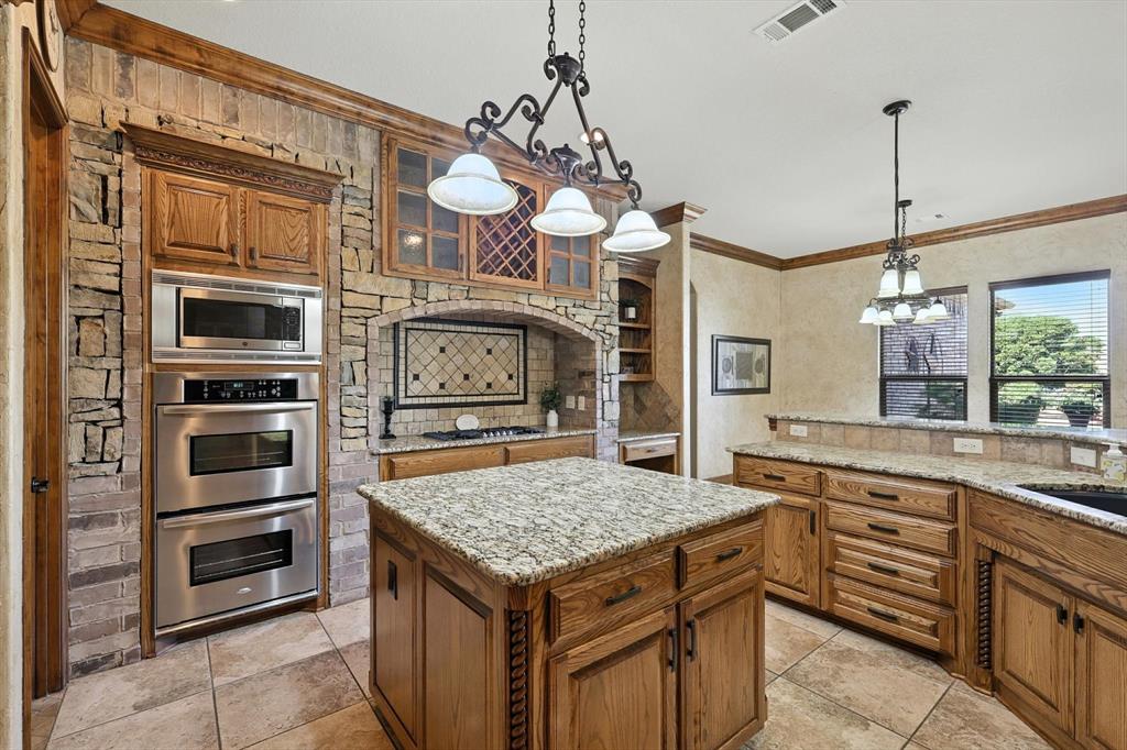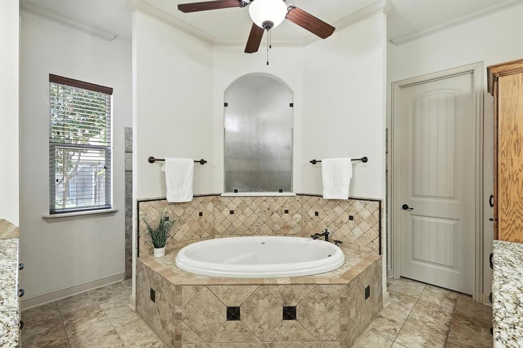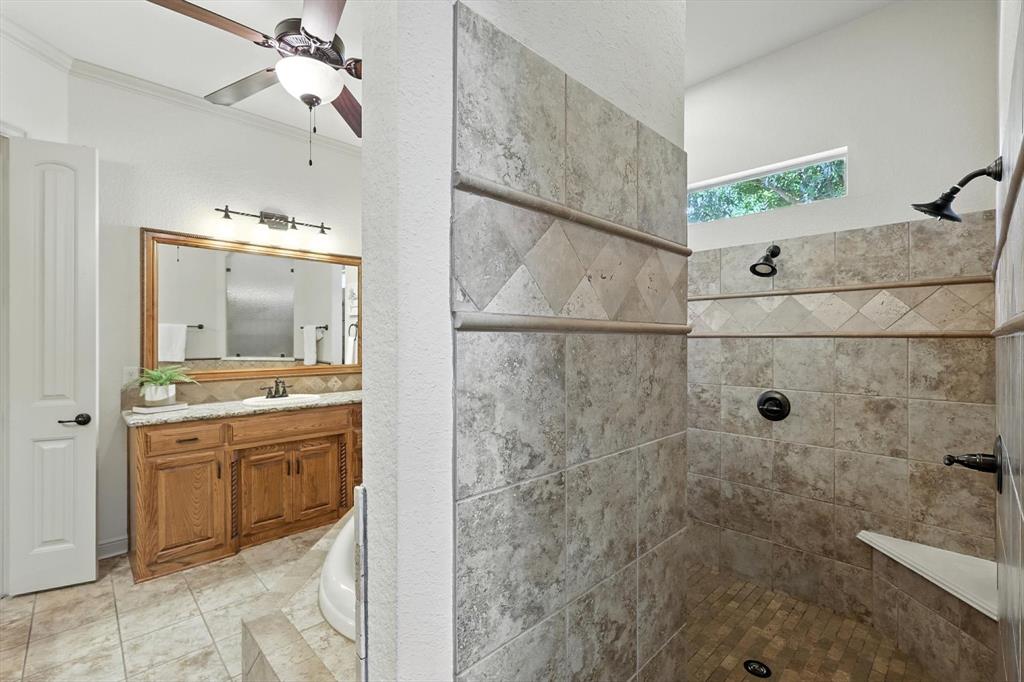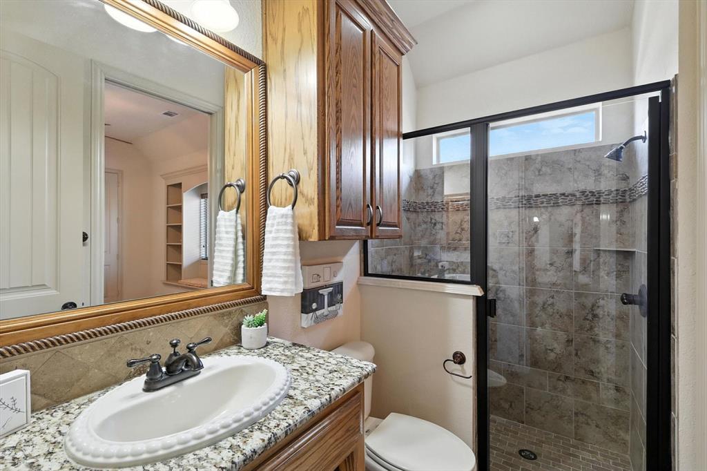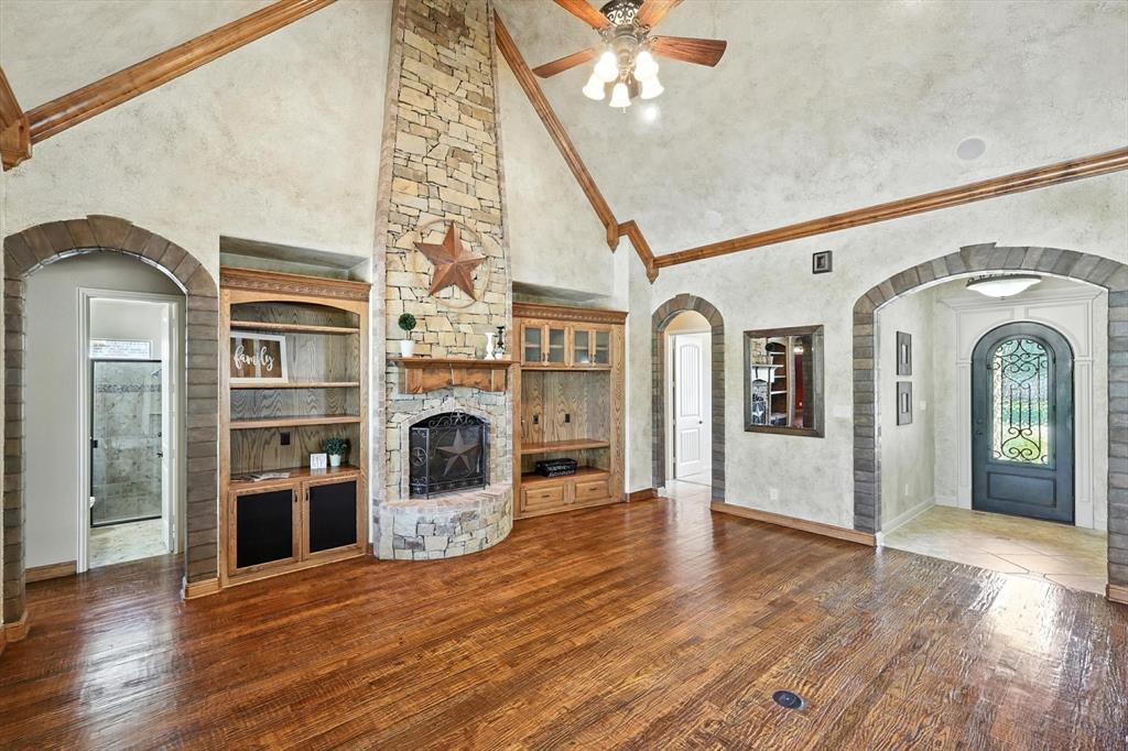 Beautiful custom built Bailee model home. Upgrades galore on a spacious half acre lot in sought after Spring Ranch. New Roof with Class 4 impact resistant shingles in 2025. Sparkling salt water pool and spa with rock formation and water features. Open concept floor plan with built-ins in the office and living room. Vaulted ceilings, extra large game room, granite countertops throughout the house. The kitchen is both functional and full of charm, offering a breakfast nook, and a gas cooktop framed with custom brick along with a large walk-in pantry. The private master suite comes with an extra large walk-in closet and the beautiful master bath has abundant storage and a large walk-in dual shower. There are four bedrooms total with three full baths. The backyard is a beautiful oasis setting with a large covered outdoor living area with refrigerator and built-in grill overlooking the pool. The oversized 3 car garage comes with storage closet.