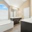 The open kitchen features stainless steel appliances, a gas cooktop, and a center island that flows into the breakfast nook and family room with a stone fireplace. Bay windows in the breakfast area and primary suite fill the home with natural light. The primary suite includes dual vanities, a garden tub, separate shower, and a large walk-in closet. A split-bedroom layout provides privacy, while the backyard is ready for entertaining or relaxing.