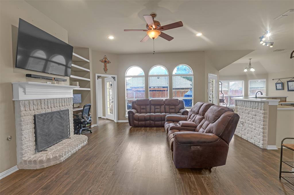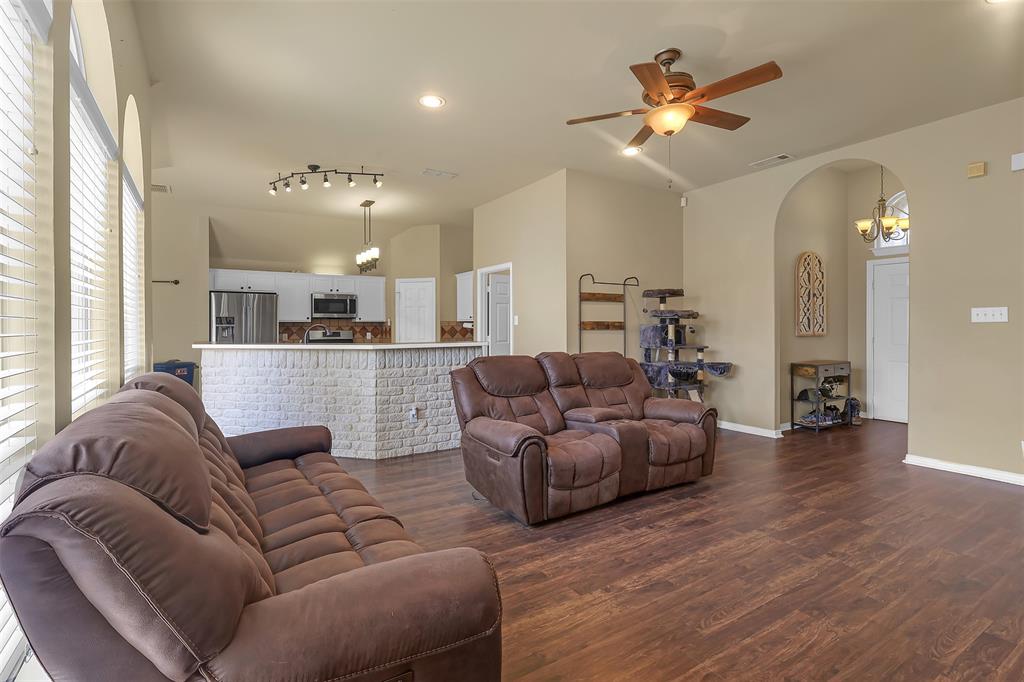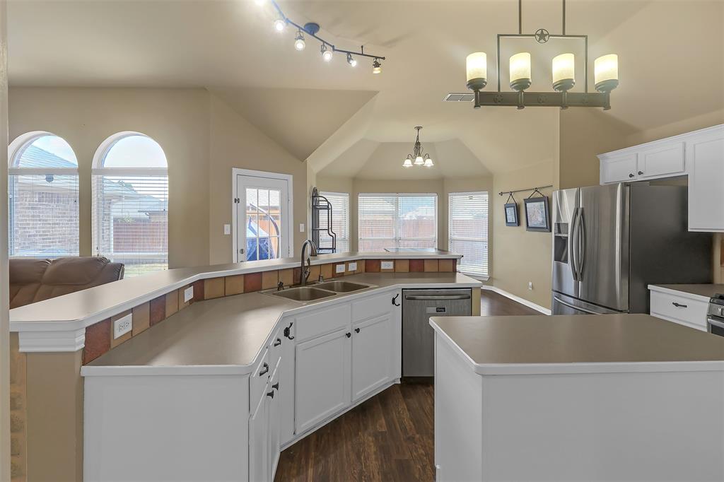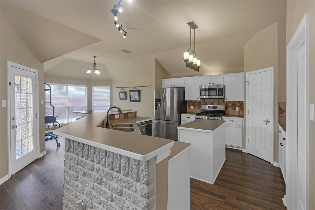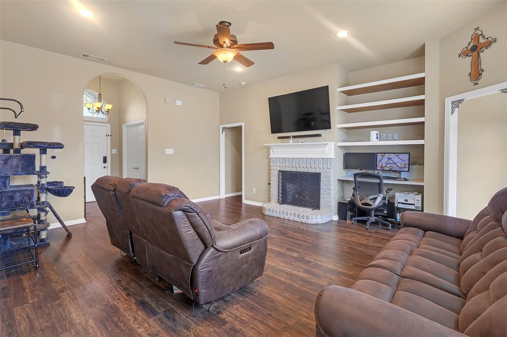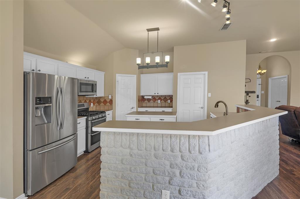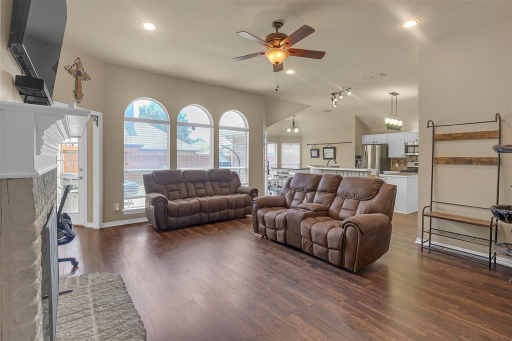 Beautiful 4-Bedroom Home in a Desirable Neighborhood. Pride of ownership shines throughout this stunning home, located in a quiet cul-de-sac. Featuring a spacious open floor plan, the home boasts a white stone fireplace and matching white stone island, complemented by laminate flooring and stainless steel appliances. Enjoy peace of mind with major updates already completed — roof and gutters replaced in 2019, HVAC in 2022, and water heater in November 2022. High 10-foot ceilings and a split-bedroom layout add to the airy, modern feel. The fourth bedroom offers flexibility and can easily serve as a home office. Step outside to a covered patio that's plumbed for a gas grill — perfect for entertaining. The community features a pool and picnic area for residents to enjoy. Just a short walk to Willow Creek Park, which includes multiple playgrounds, sports fields, tennis and basketball courts, and a scenic concrete walking path. The nearby Saginaw Switchyard hosts seasonal food trucks, vendor markets, and live concerts. Conveniently located close to shopping, dining, and entertainment — this home truly has it all!