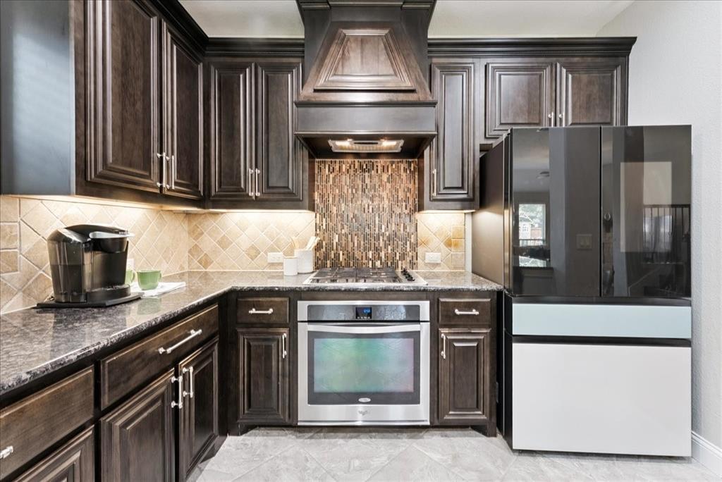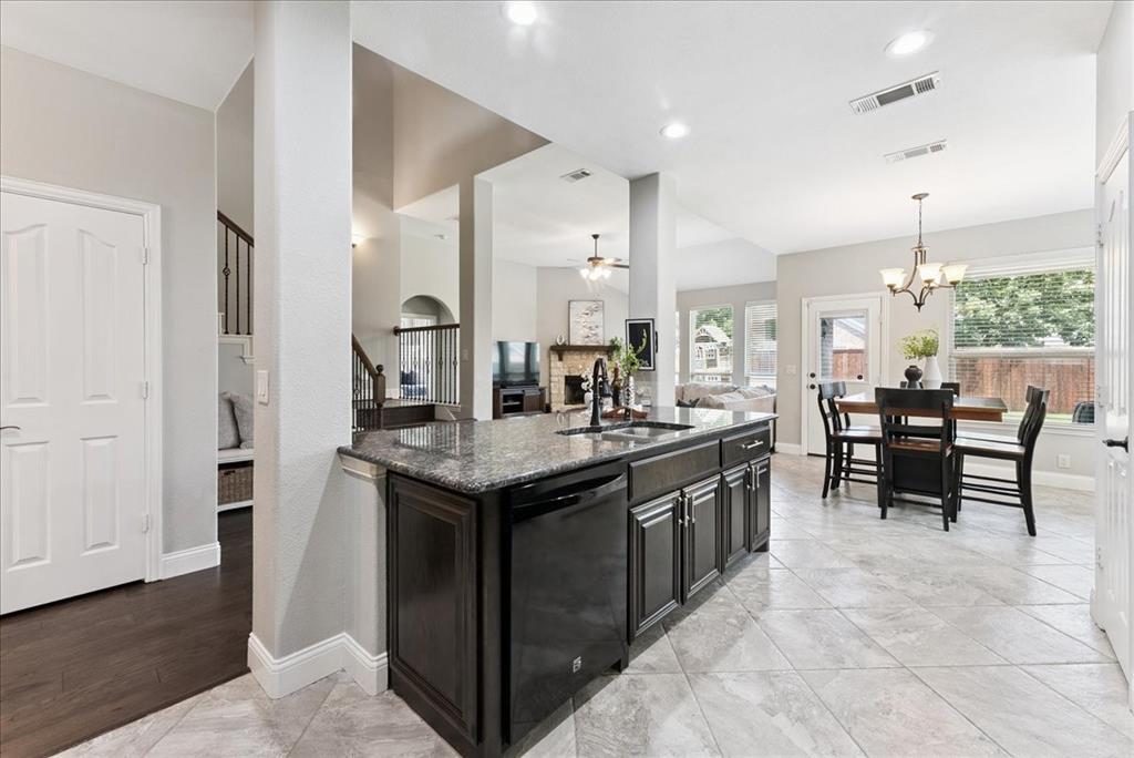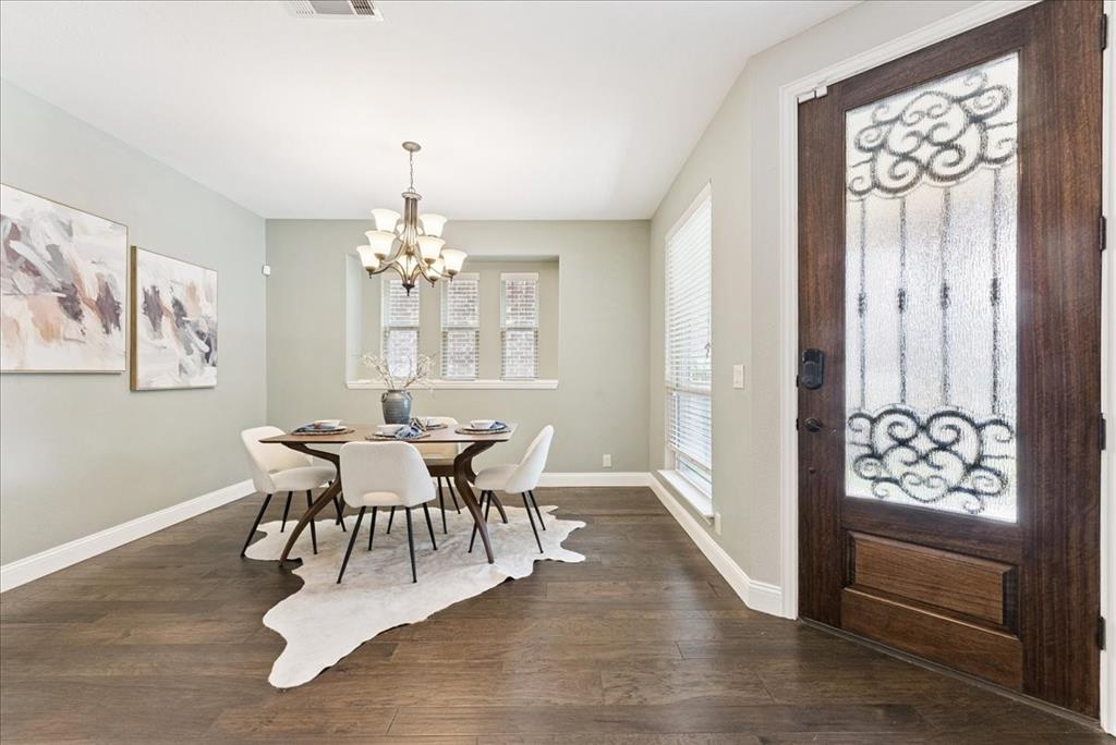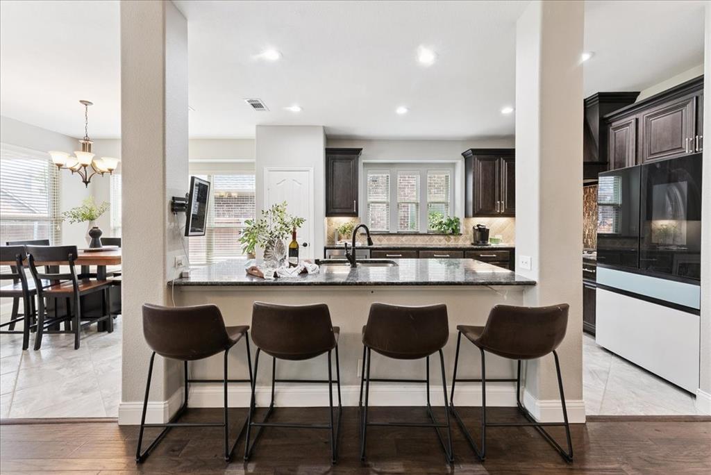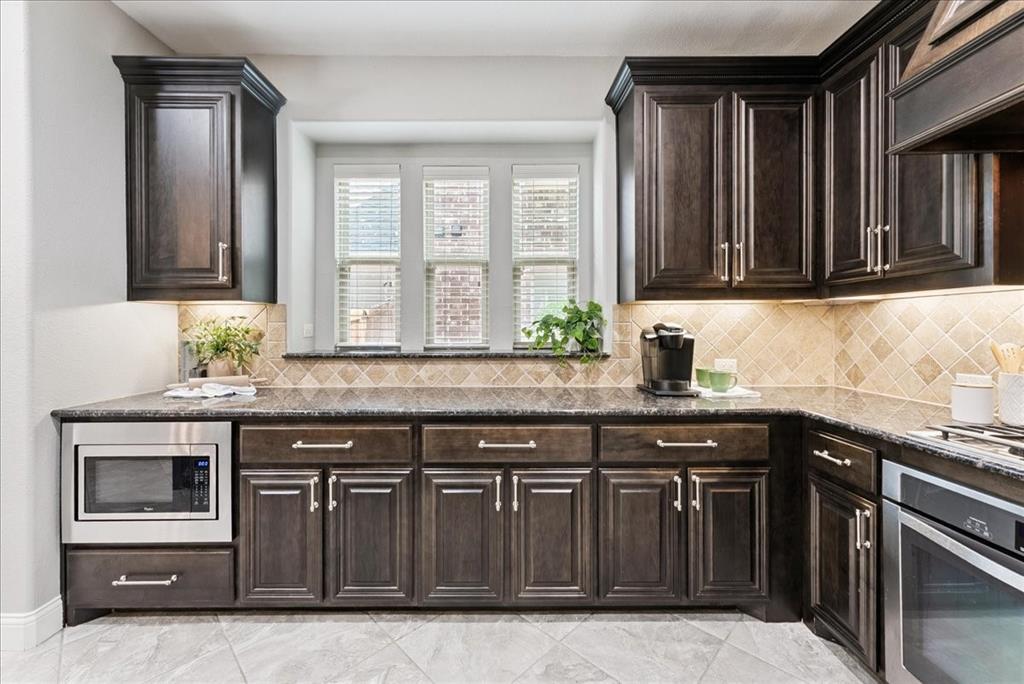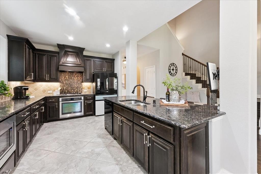 This home is loaded with upgrades: brand-new roof (less than 2 months old) and two new AC units ('23), NEW HVAC system ('24) and UPDATED flooring ('20) for worry-free living. The gourmet kitchen boasts custom wood cabinetry, granite countertops, and a spacious island. Perfect for cooking and entertaining. Elegant touches include rounded corners, archways, and a hard-to-find 5th bedroom that can double as a home office. Primary suite is downstairs with an upstairs game room for extra space. Relax on the covered front porch or covered back patio. A golf cart ride to Costco, a 5 minute drive to HEB. Year round family entertainment is 10 minutes from PGA Frisco and future Universal Studios park. Plus, Highway 380 expansion will be completed end of 2025, making your future home only 1 stop light from DNT.