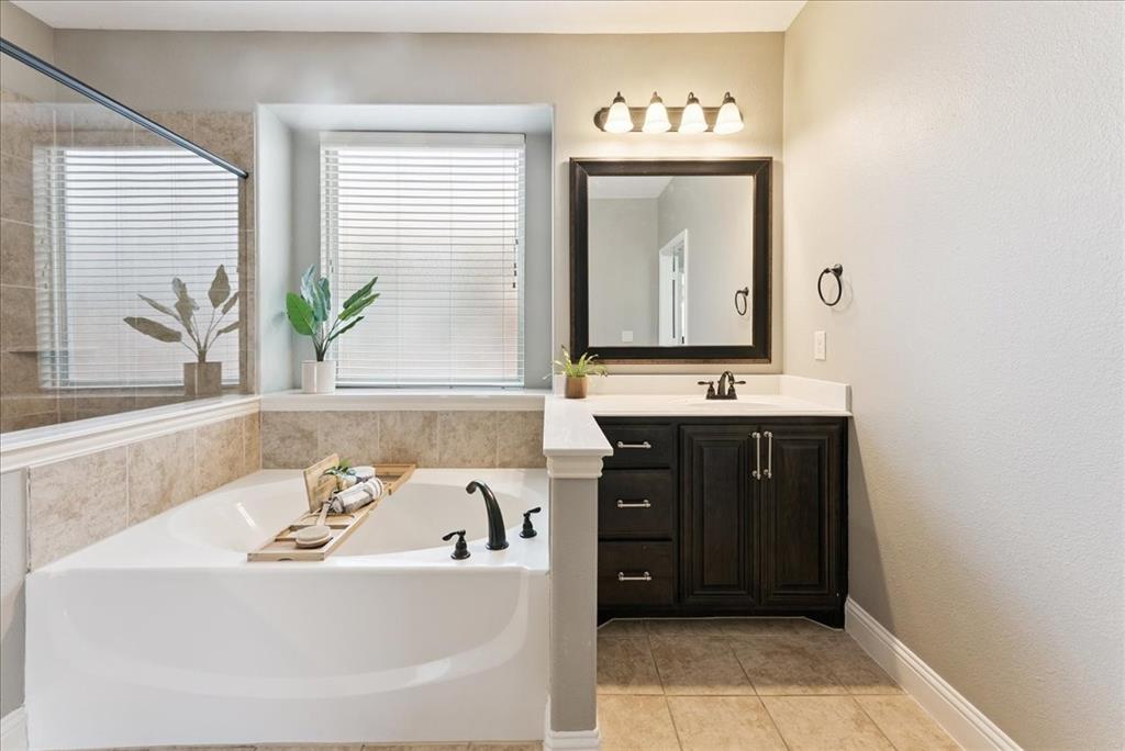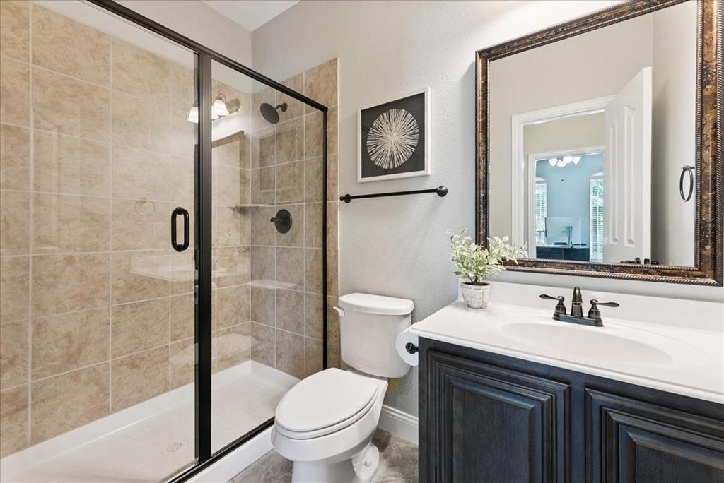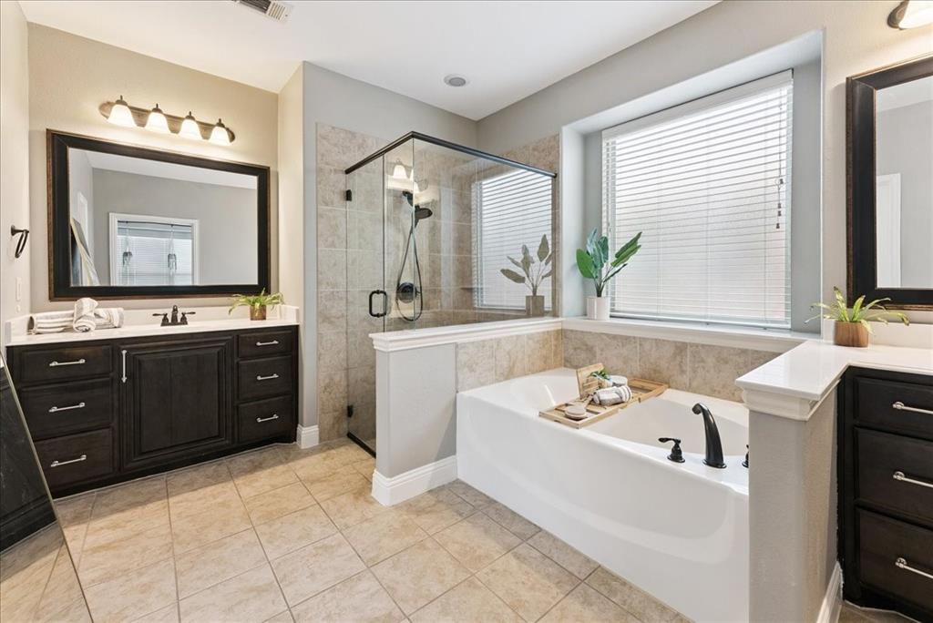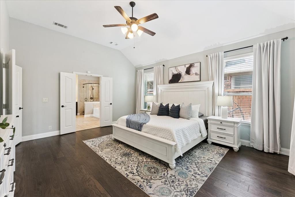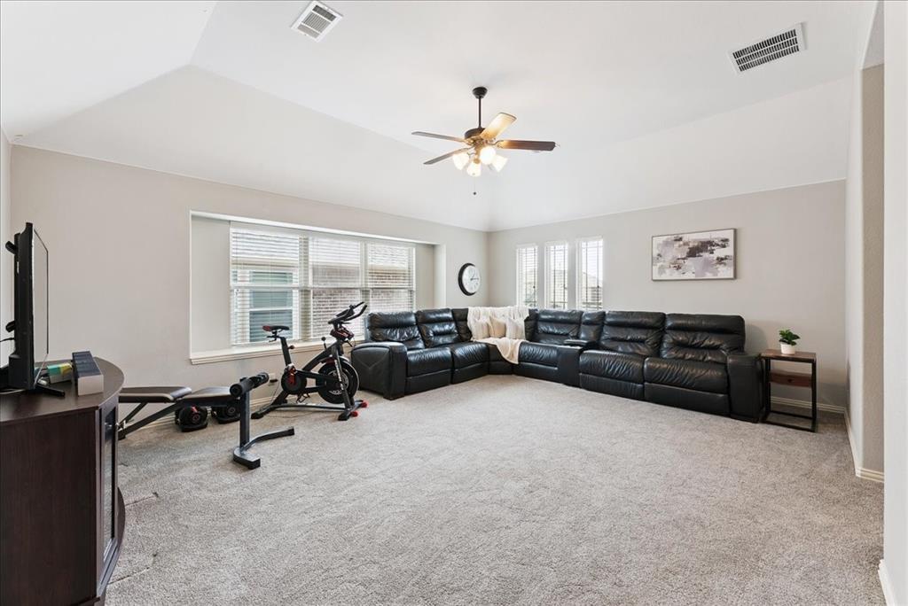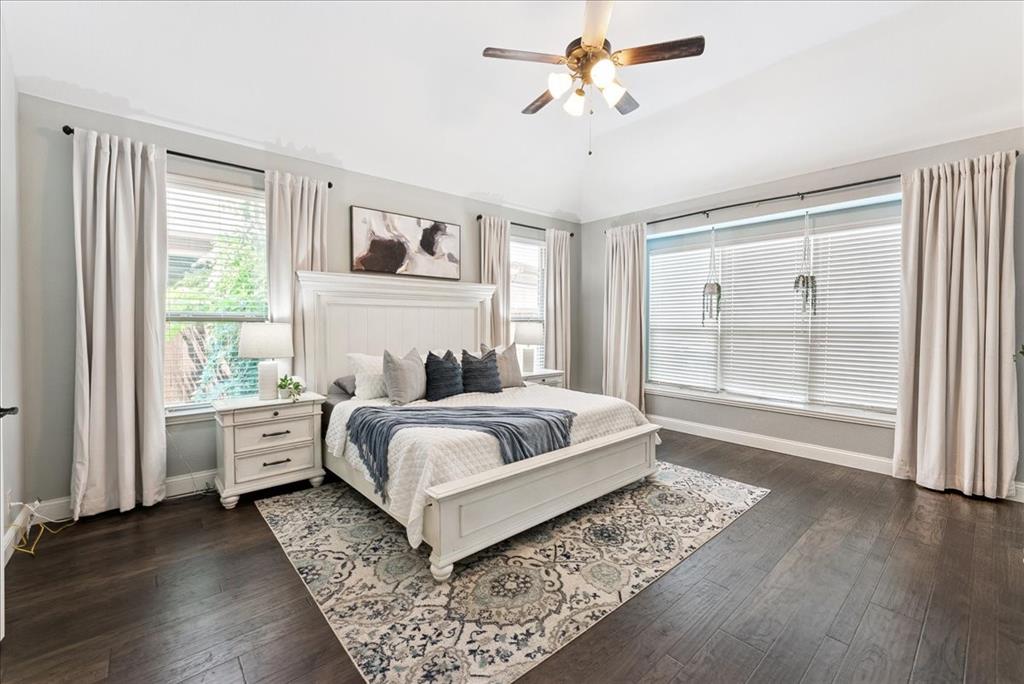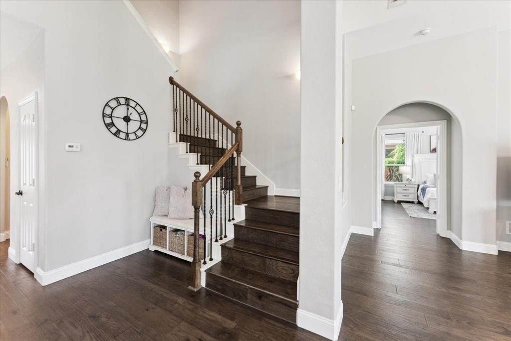 This home is loaded with upgrades: brand-new roof (less than 2 months old) and two new AC units ('23), NEW HVAC system ('24) and UPDATED flooring ('20) for worry-free living. The gourmet kitchen boasts custom wood cabinetry, granite countertops, and a spacious island. Perfect for cooking and entertaining. Elegant touches include rounded corners, archways, and a hard-to-find 5th bedroom that can double as a home office. Primary suite is downstairs with an upstairs game room for extra space. Relax on the covered front porch or covered back patio. A golf cart ride to Costco, a 5 minute drive to HEB. Year round family entertainment is 10 minutes from PGA Frisco and future Universal Studios park. Plus, Highway 380 expansion will be completed end of 2025, making your future home only 1 stop light from DNT.