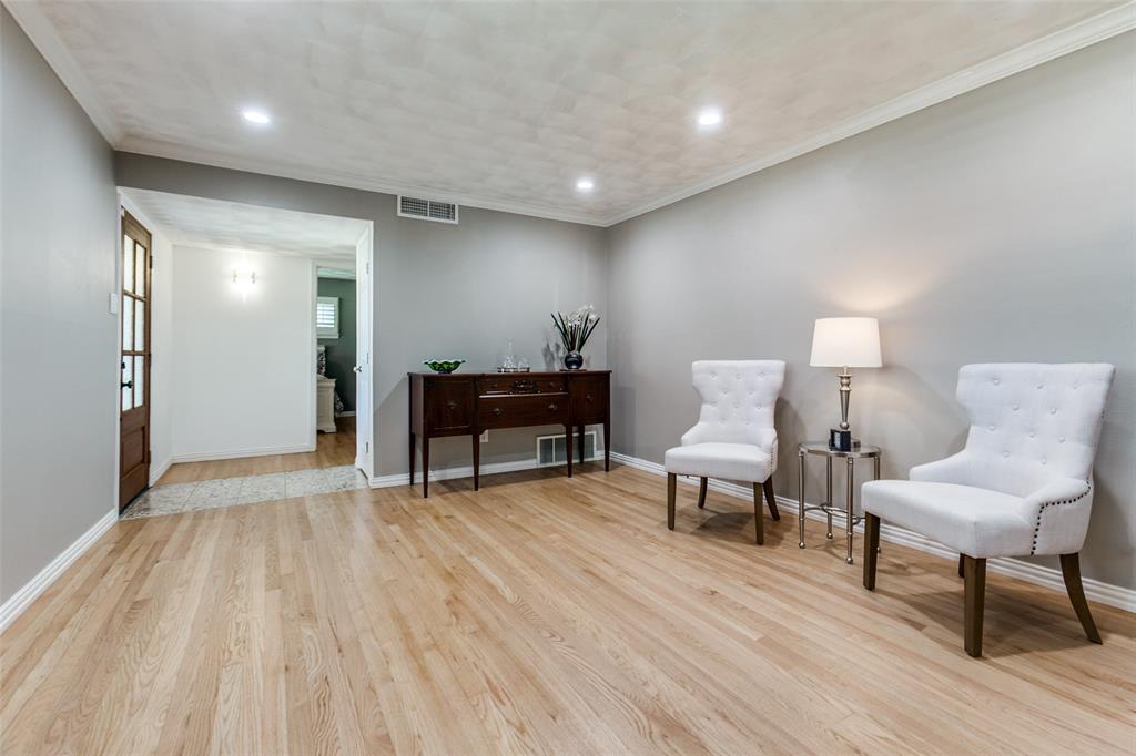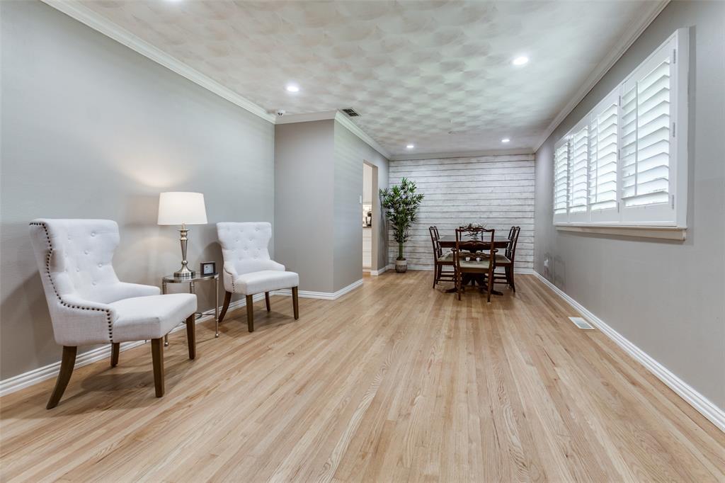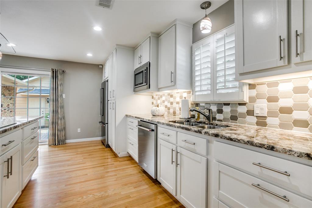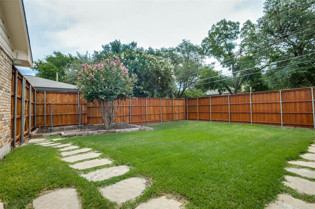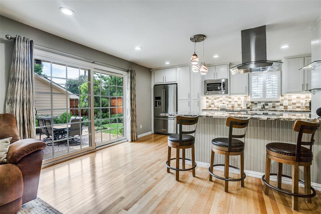 Welcome to a home where beauty, elegance, and comfort come together in perfect harmony. Nestled in the heart of the highly sought-after Lake Highlands community, within the acclaimed Richardson Independent School District and the beloved Wallace Elementary School, this charming 3-bedroom, 2-bathroom sanctuary (with an option for a 4th bedroom) is more than just a house—it's a lifestyle. Step inside and be embraced by the warmth of real hardwood floors that flow seamlessly throughout the home, adding timeless character to every room. The heart of the home, an elegantly designed kitchen, is a dream come true for culinary enthusiasts. Outfitted with gleaming granite countertops, white cabinetry, stainless steel appliances, and a stunning backsplash, it’s both functional and sophisticated. The open breakfast bar island invites a gathering, connecting the kitchen to the sun-drenched family room. Large windows frame a picture-perfect view of your own private courtyard oasis, where lush landscaping creates a tranquil escape just steps from your living space. Entertain, unwind, or simply soak in the serenity of this beautifully manicured outdoor haven. Beyond the patio lies a second backyard—an expansive space full of potential, ideal for a future pool, bountiful garden, or simply more room to play and dream. The home boasts two fully updated bathrooms, each tastefully appointed with designer touches. The primary suite is a peaceful retreat with an updated en-suite bath, providing the perfect balance of privacy and luxury. A cleverly integrated utility closet in the second bathroom maximizes space and convenience. With thoughtful updates throughout and an unbeatable location in one of Dallas’s most cherished neighborhoods, this home offers more than just a place to live—it offers a place to love living. Home also features an over sized (21' x 29') 2 car garage and an office which could be a 4th bedroom. All information, schools and measurements to be verified by the Buyer.