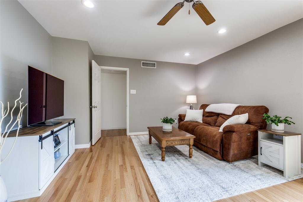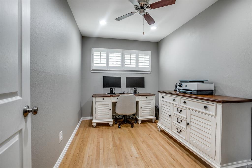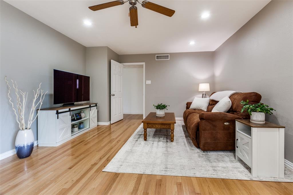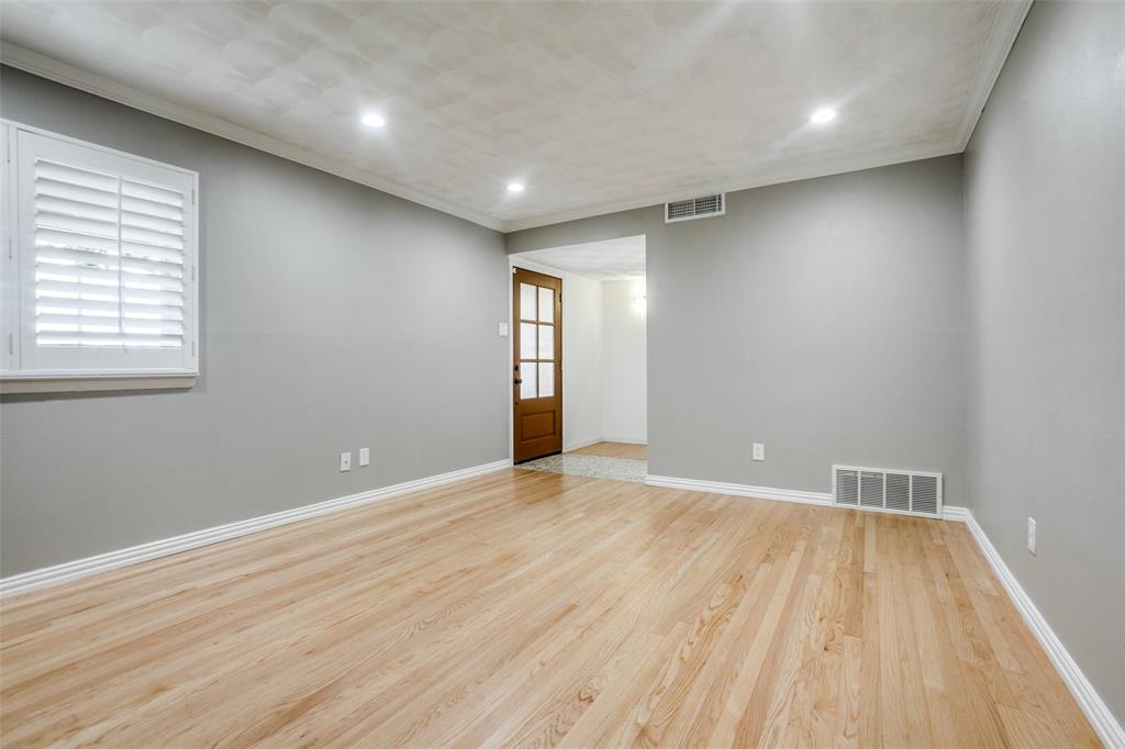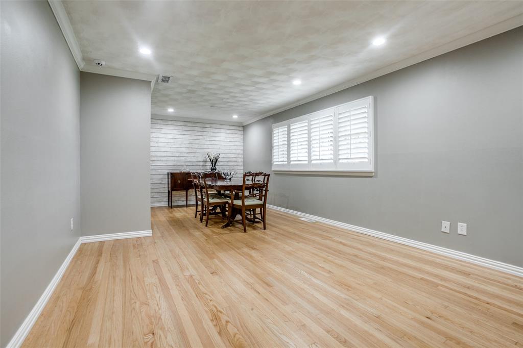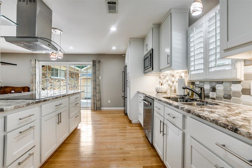 Welcome to a home where beauty, elegance, and comfort come together in perfect harmony. Nestled in the heart of the highly sought-after Lake Highlands community, within the acclaimed Richardson Independent School District and the beloved Wallace Elementary School, this charming 3-bedroom, 2-bathroom sanctuary (with an option for a 4th bedroom) is more than just a house—it's a lifestyle. Step inside and be embraced by the warmth of real hardwood floors that flow seamlessly throughout the home, adding timeless character to every room. The heart of the home, an elegantly designed kitchen, is a dream come true for culinary enthusiasts. Outfitted with gleaming granite countertops, white cabinetry, stainless steel appliances, and a stunning backsplash, it’s both functional and sophisticated. The open breakfast bar island invites a gathering, connecting the kitchen to the sun-drenched family room. Large windows frame a picture-perfect view of your own private courtyard oasis, where lush landscaping creates a tranquil escape just steps from your living space. Entertain, unwind, or simply soak in the serenity of this beautifully manicured outdoor haven. Beyond the patio lies a second backyard—an expansive space full of potential, ideal for a future pool, bountiful garden, or simply more room to play and dream. The home boasts two fully updated bathrooms, each tastefully appointed with designer touches. The primary suite is a peaceful retreat with an updated en-suite bath, providing the perfect balance of privacy and luxury. A cleverly integrated utility closet in the second bathroom maximizes space and convenience. With thoughtful updates throughout and an unbeatable location in one of Dallas’s most cherished neighborhoods, this home offers more than just a place to live—it offers a place to love living. Home also features an over sized (21' x 29') 2 car garage and an office which could be a 4th bedroom. All information, schools and measurements to be verified by the Buyer.