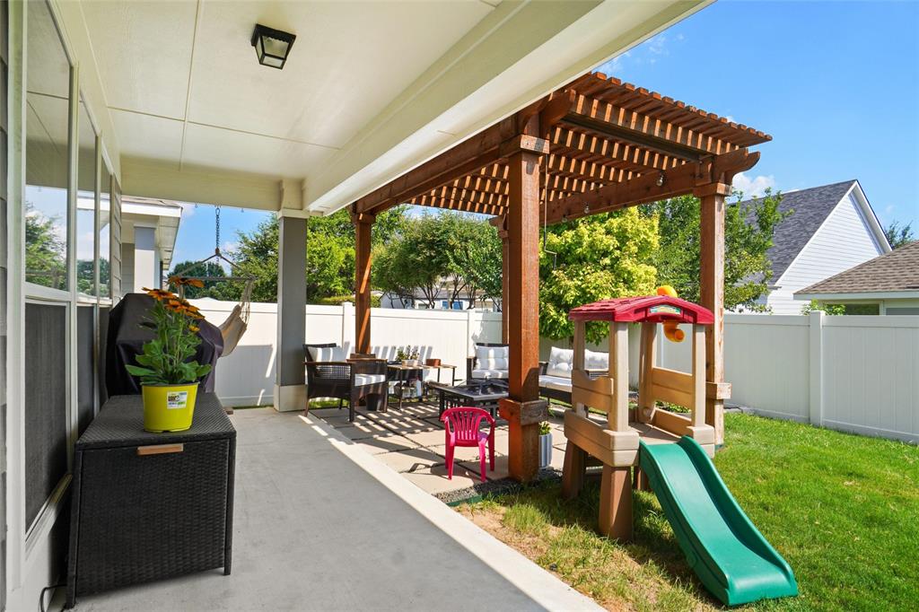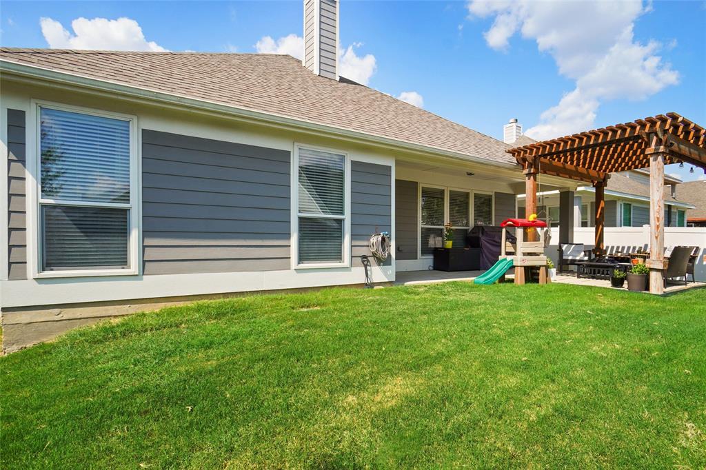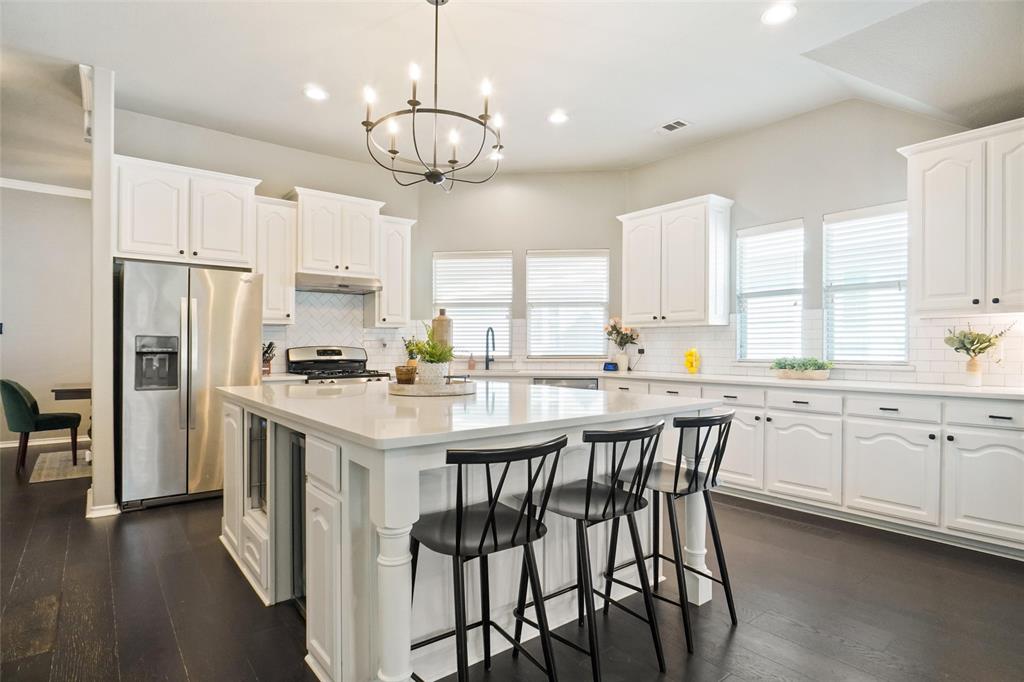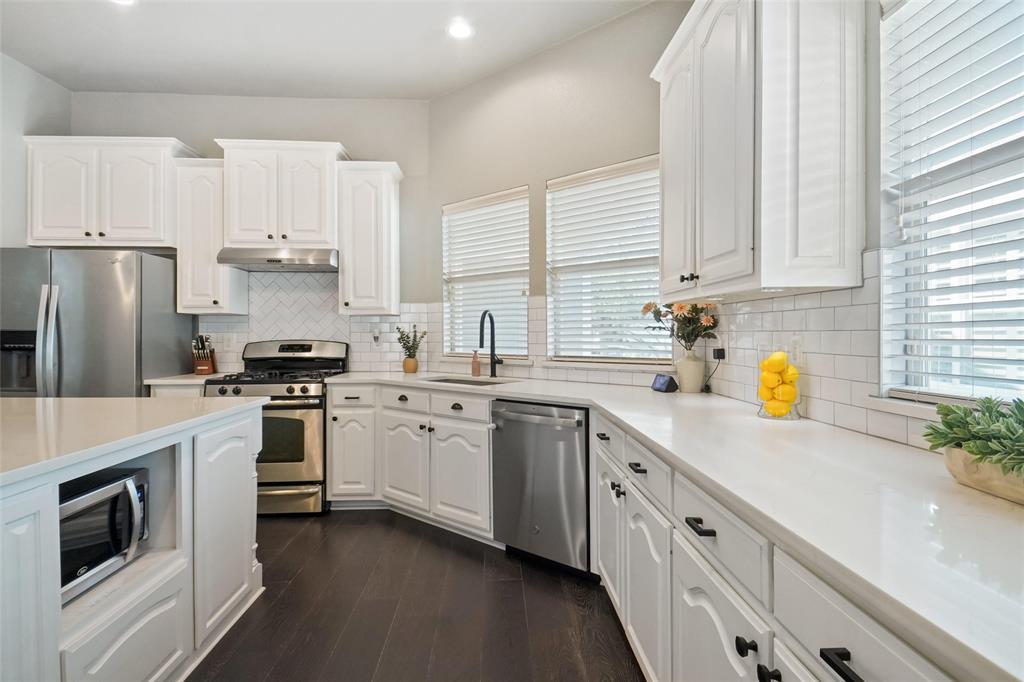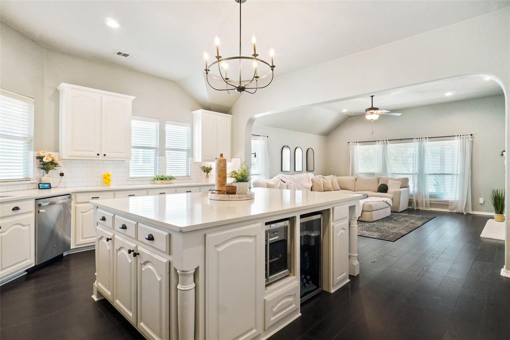 STUNNING is your first impression when you open the door to this PRISTINE home. The impeccable yard and beautiful facade will draw you into the covered front porch. The large open foyer offers great views of the formal dining, the hallway with an art niche, and just a glimpse into the expansive living room and the truly unbelievable kitchen. Rich wood floors and designer paint colors grace the main living areas. The large dining room is to the left and to the right, through a huge arched opening, is a separate wing which has the office or 2nd living and 2 bedrooms and full bath. Going down the enty hall to the left is the kitchen. The seller custom designed with more cabinet, counter, and storage than you could imagine. The extra large center island houses a built-in wine fridge, mini fridge, microwave hutch, trash bin, and ample sit-down bar area. Gas cooking and Quartz counters. Through another large archway, open to the kitchen, is one of the most comfortable living areas with room for a big fluffy sectional, wall of windows to the yard, panned ceilings, and a gas start WBFP with a cast-crete style wrap around mantle. The sellers, with impeccable taste, also designed a built in bookcase with storage below which just makes this room. The large Primary Ensuite is to the rear of the home for privacy and has raised panned ceilings, ceiling fan, and views to the yard. It offers a luxurious bath and is well appointed with separate shower, soaking tub, linen closet, and large clothes closet .The backyard is just perfet and offers a covered porch plus a pergola with extra seating. All this in HERITAGE ADDITION in the coveted Cape Cod enclave... and KELLER ISD! This is a vibrant amenity rich community with Parks, waterpark, lakes, sports courts, tennis courts,clubhouse, walking trails and more! Located near H-E-B, Alliance, and Presideo Junction. Over the top SHOPPING, DINING, and SCHOOLS are just MINUTES AWAY! Easy access to major freeways. New carpet in bedrooms!
