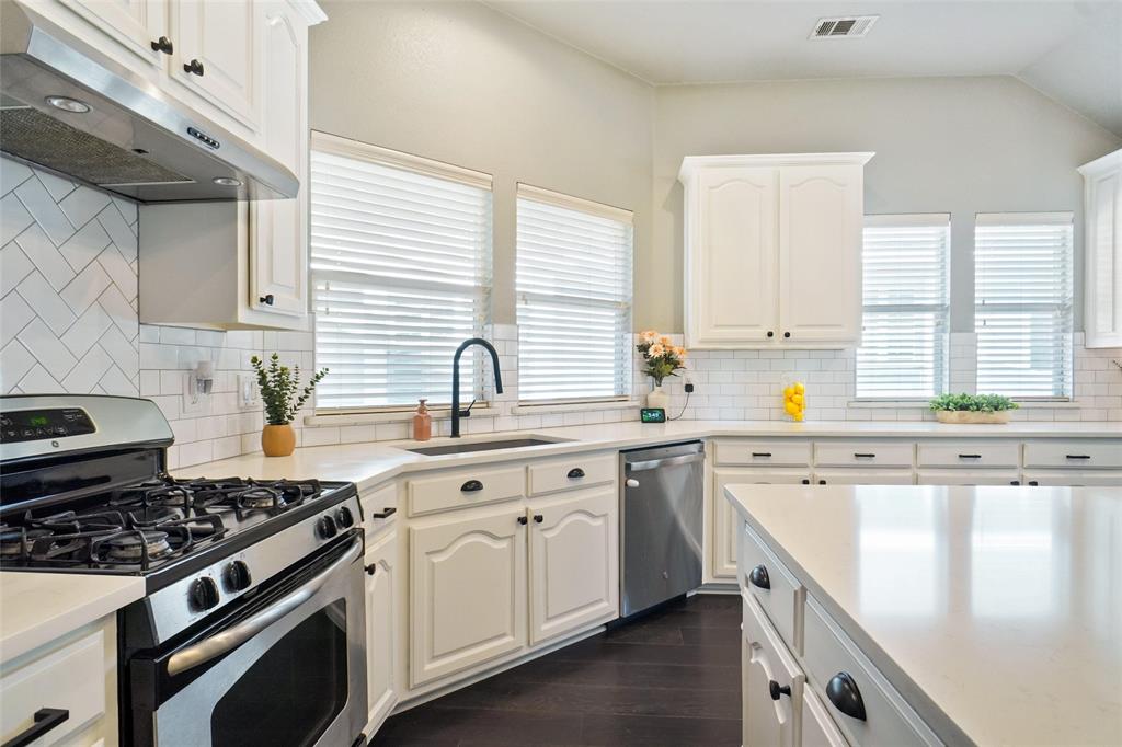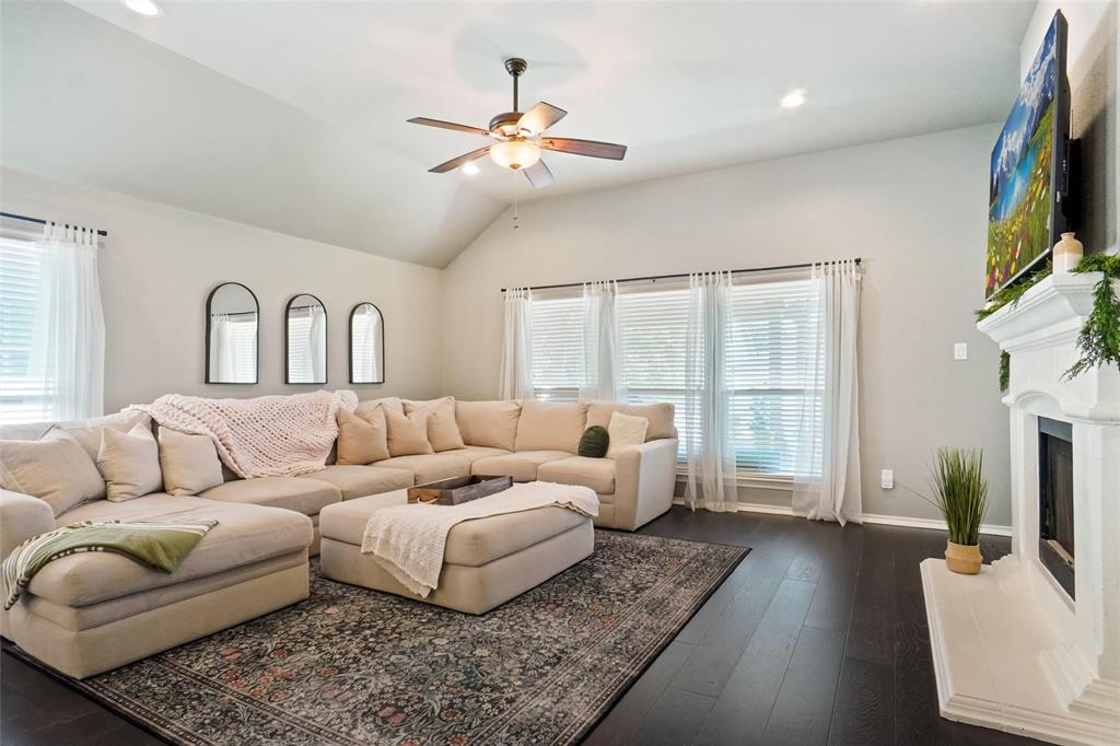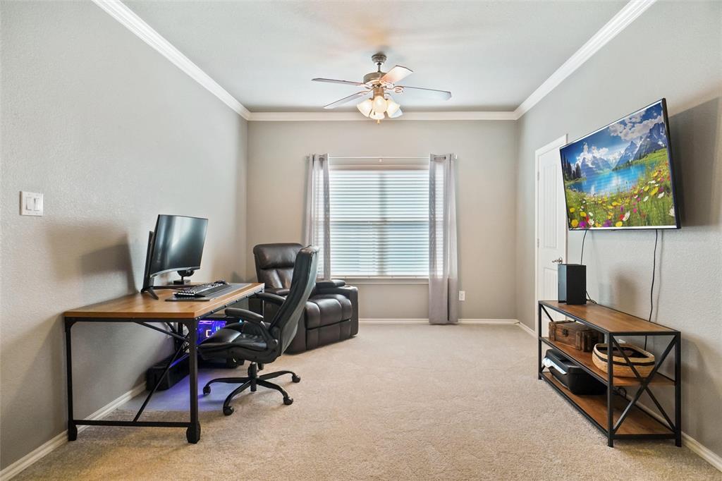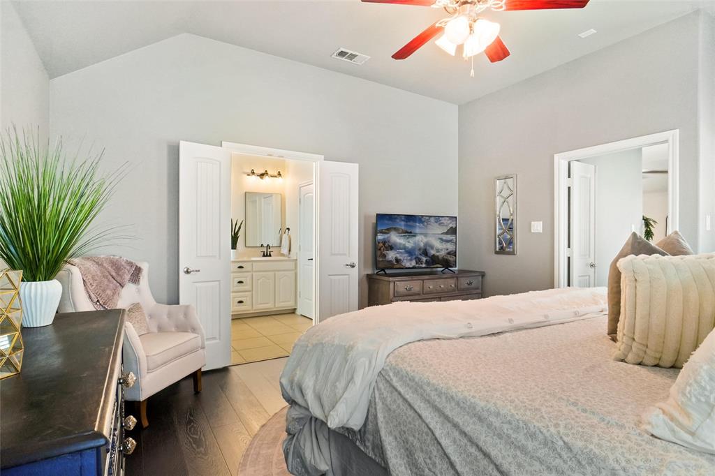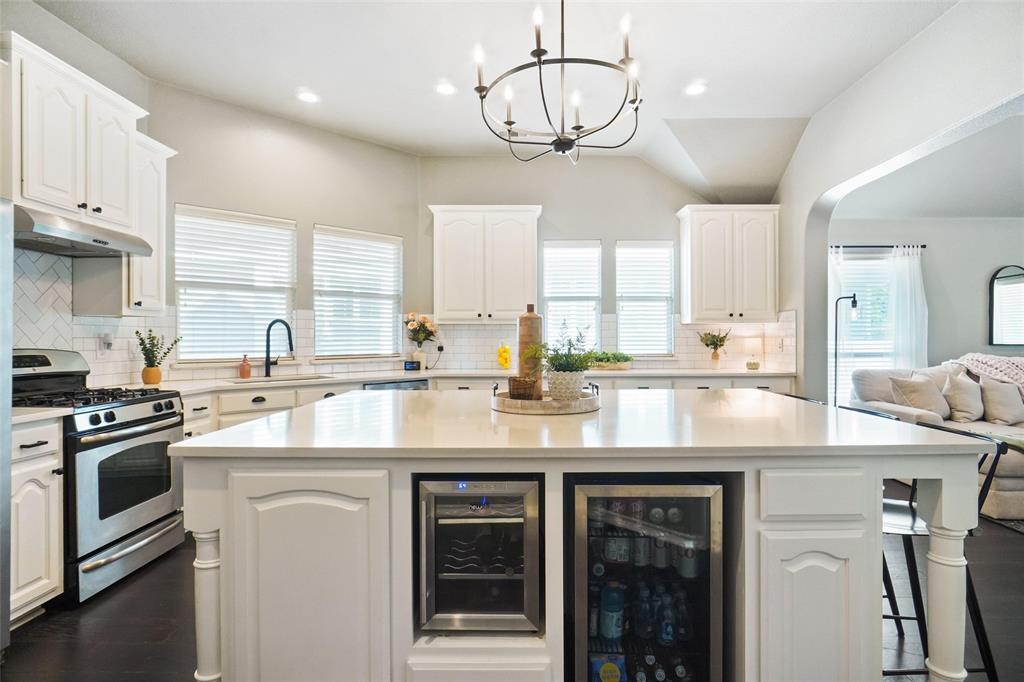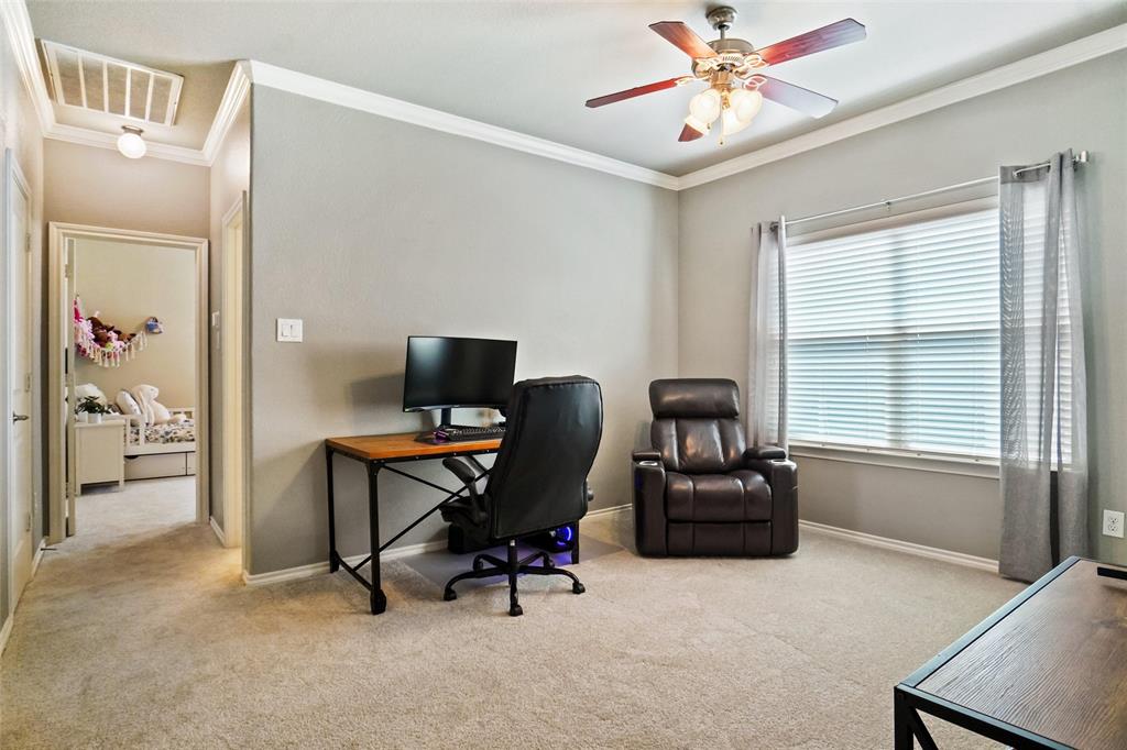 STUNNING is your first impression when you open the door to this PRISTINE home. The impeccable yard and beautiful facade will draw you into the covered front porch. The large open foyer offers great views of the formal dining, the hallway with an art niche, and just a glimpse into the expansive living room and the truly unbelievable kitchen. Rich wood floors and designer paint colors grace the main living areas. The large dining room is to the left and to the right, through a huge arched opening, is a separate wing which has the office or 2nd living and 2 bedrooms and full bath. Going down the enty hall to the left is the kitchen. The seller custom designed with more cabinet, counter, and storage than you could imagine. The extra large center island houses a built-in wine fridge, mini fridge, microwave hutch, trash bin, and ample sit-down bar area. Gas cooking and Quartz counters. Through another large archway, open to the kitchen, is one of the most comfortable living areas with room for a big fluffy sectional, wall of windows to the yard, panned ceilings, and a gas start WBFP with a cast-crete style wrap around mantle. The sellers, with impeccable taste, also designed a built in bookcase with storage below which just makes this room. The large Primary Ensuite is to the rear of the home for privacy and has raised panned ceilings, ceiling fan, and views to the yard. It offers a luxurious bath and is well appointed with separate shower, soaking tub, linen closet, and large clothes closet .The backyard is just perfet and offers a covered porch plus a pergola with extra seating. All this in HERITAGE ADDITION in the coveted Cape Cod enclave... and KELLER ISD! This is a vibrant amenity rich community with Parks, waterpark, lakes, sports courts, tennis courts,clubhouse, walking trails and more! Located near H-E-B, Alliance, and Presideo Junction. Over the top SHOPPING, DINING, and SCHOOLS are just MINUTES AWAY! Easy access to major freeways. New carpet in bedrooms!