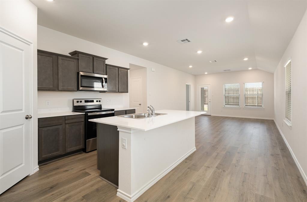 Discover the perfect blend of comfort, style, and community in this beautifully maintained home located in the Magnolia community. This move-in ready residence boasts an open-concept floor plan with abundant natural light, neutral tones, and modern finishes throughout. The kitchen features stainless steel appliances, a spacious island with seating, and ample cabinetry – ideal for family meals or entertaining friends. The inviting living room, offers the perfect gathering space with gorgeous vinyl plank flooring throughout! Retreat to the private primary suite with a spa-like ensuite bath with a huge a walk-in shower. Two additional bedrooms provide flexibility for family, guests, or a home office. Step outside to a covered patio and a generously sized backyard – perfect for BBQs, gardening, or simply relaxing. Enjoy the resort-style pools, splash pads, playgrounds, parks, walking trails, and a scenic lake. The neighborhood is designed for an active lifestyle while fostering a close-knit community feel. Conveniently located with easy access to I-30, shopping, dining, and top-rated schools, this home is an incredible opportunity to enjoy the best of suburban living. MLS info is reliable but not guaranteed. Buyer to verify.