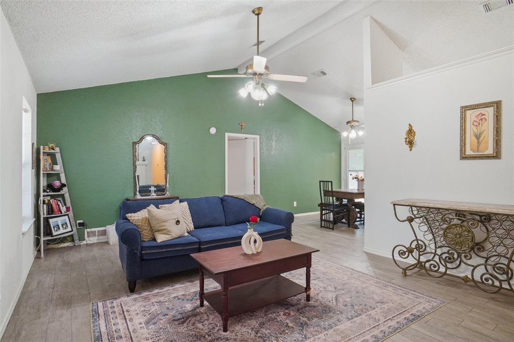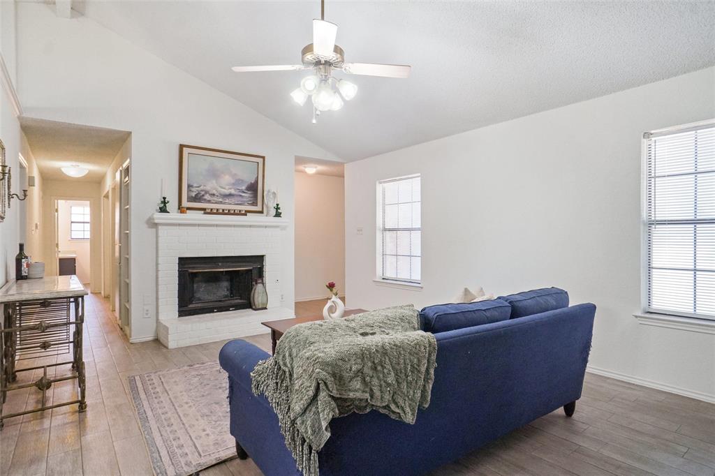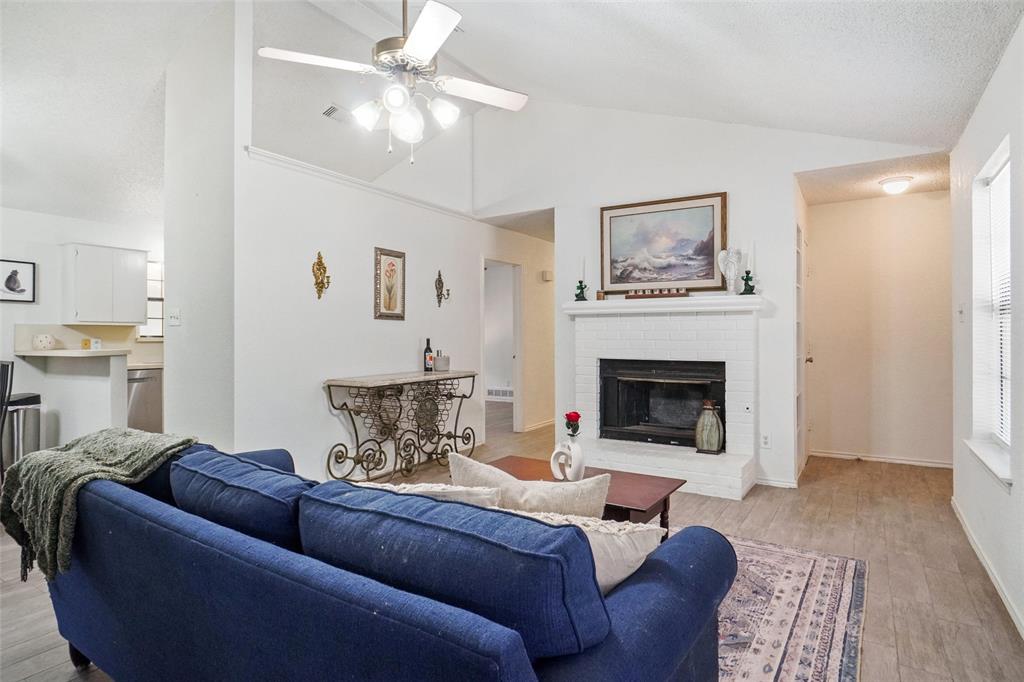 Situated on a massive .238-acre lot, this cozy single-story home offers comfort, convenience, and style. Inside, wood-look tile floors flow throughout, complementing the open and inviting layout. The spacious living room features vaulted ceilings and a gas fireplace, seamlessly connecting to the breakfast nook and kitchen.