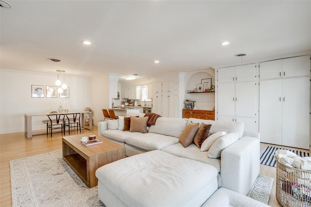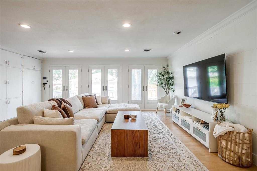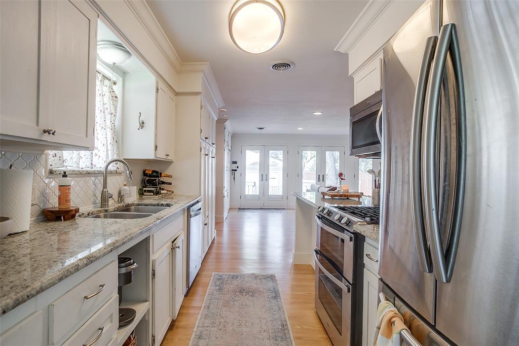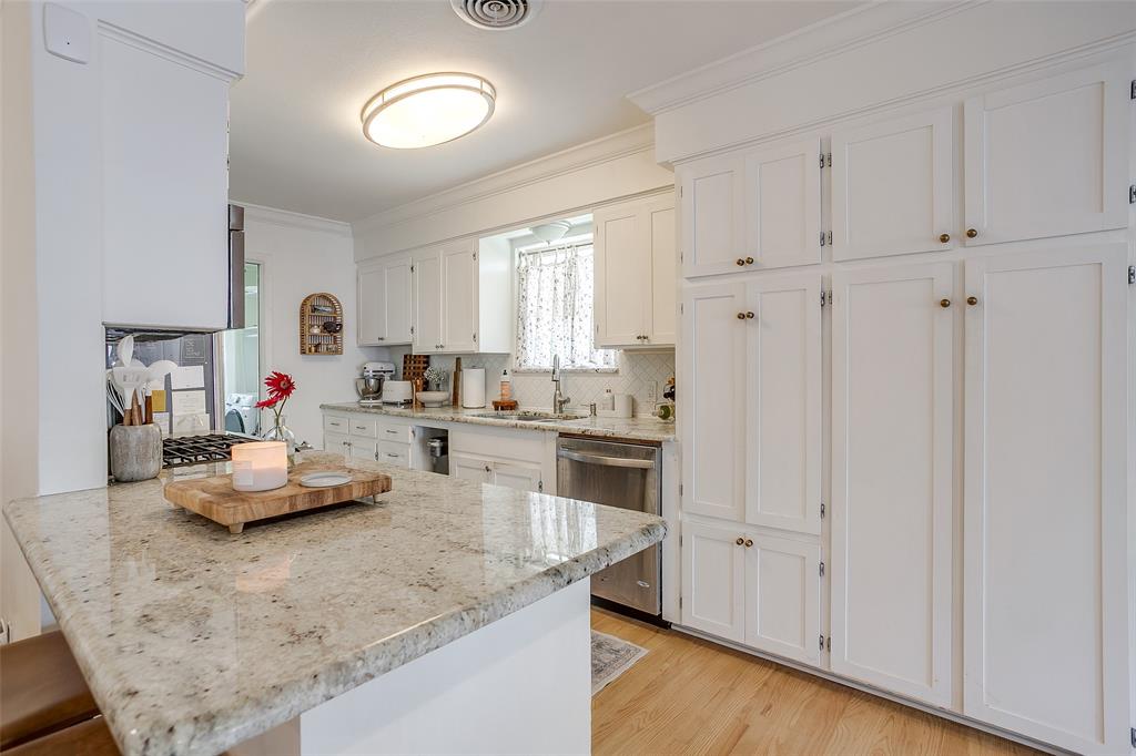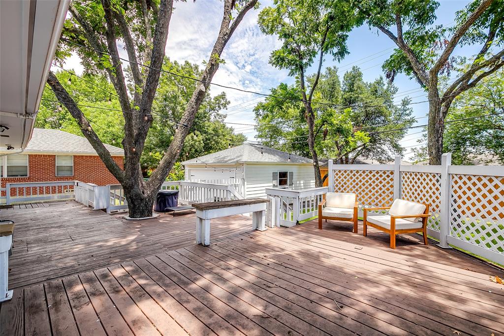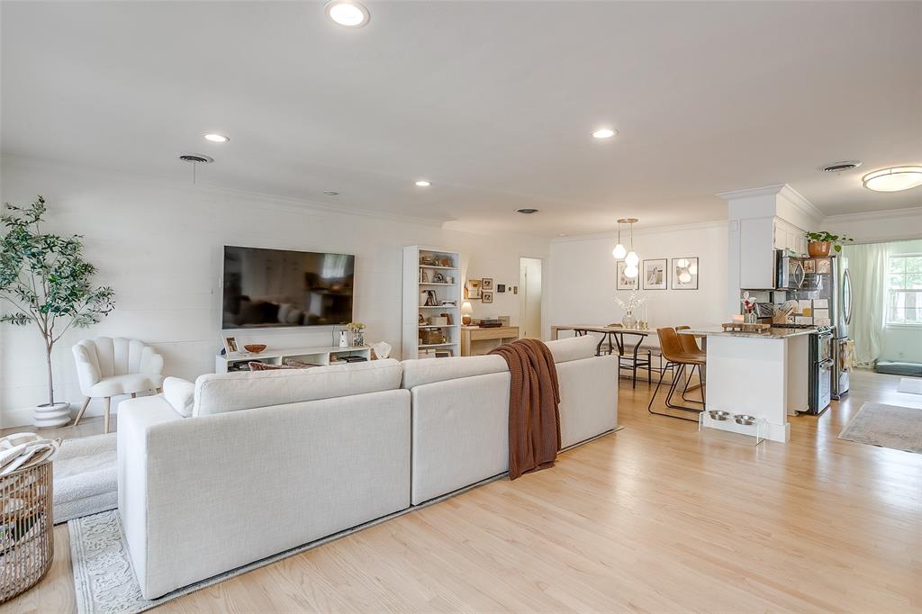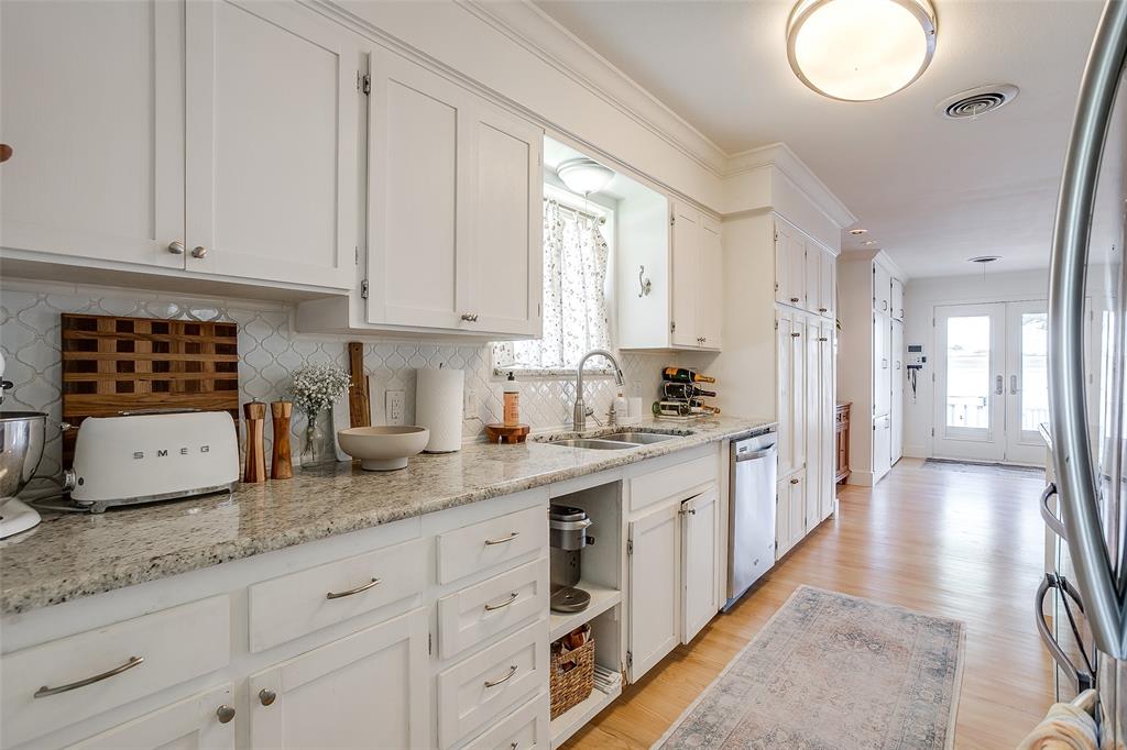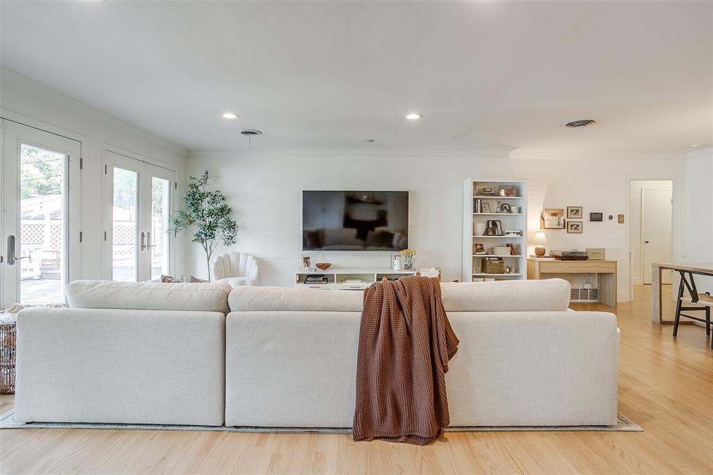 This beautifully updated and trendy home, located in the highly sought after L-Streets of Lake Highlands, offers an open-concept layout designed for modern living and entertaining. The expansive main living area seamlessly connects to a modern kitchen, both offering views of the stunning outdoor deck and freshly landscaped backyard. Three elegant French doors invite an abundance of natural light, creating a bright and inviting atmosphere throughout. Both bathrooms have been fully remodeled with contemporary finishes that complement the home’s warm hardwood floors, double-pane windows, crown molding, and updated can lights. A massive utility room adds exceptional functionality, while the home’s layout provides versatile living spaces perfect for family life. The home also includes a flexible oversized room with a layout perfect for either a home office, playroom, library, or hobby space. Located on a quiet street within the coveted Lake Highlands Elementary attendance zone, this move-in ready home combines style, comfort, and convenience with proximity to shopping, dining, parks, and community amenities. Don’t miss your chance to own a stylish, turnkey home in one of Dallas’s most desirable neighborhoods—schedule your private tour today! **List of updates to the home are attached in documents