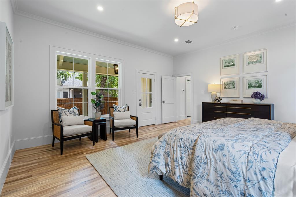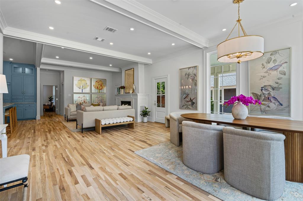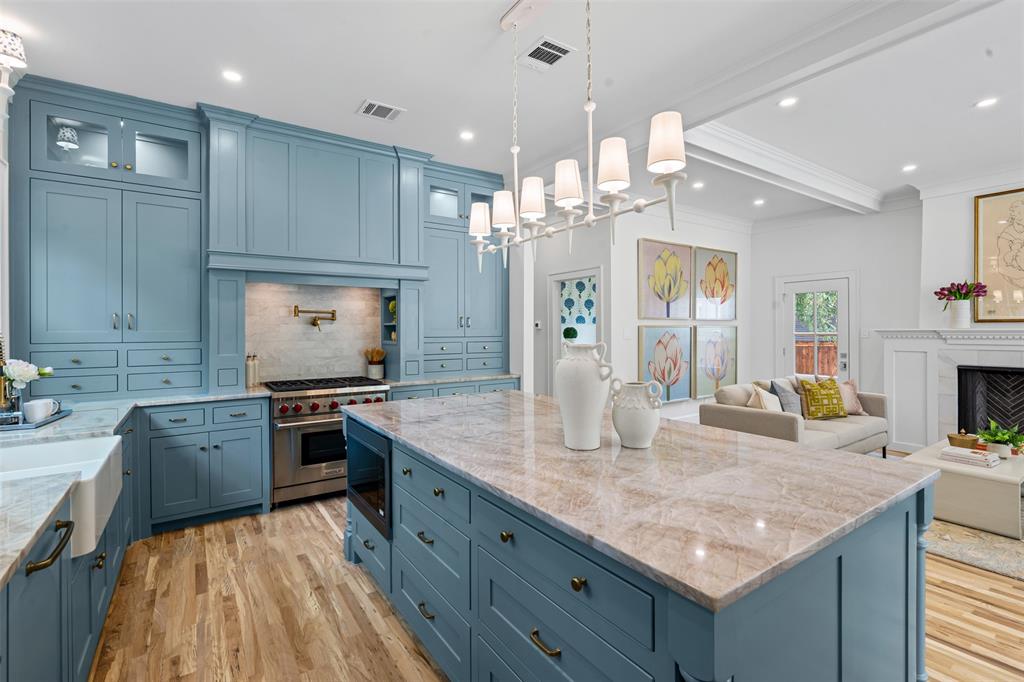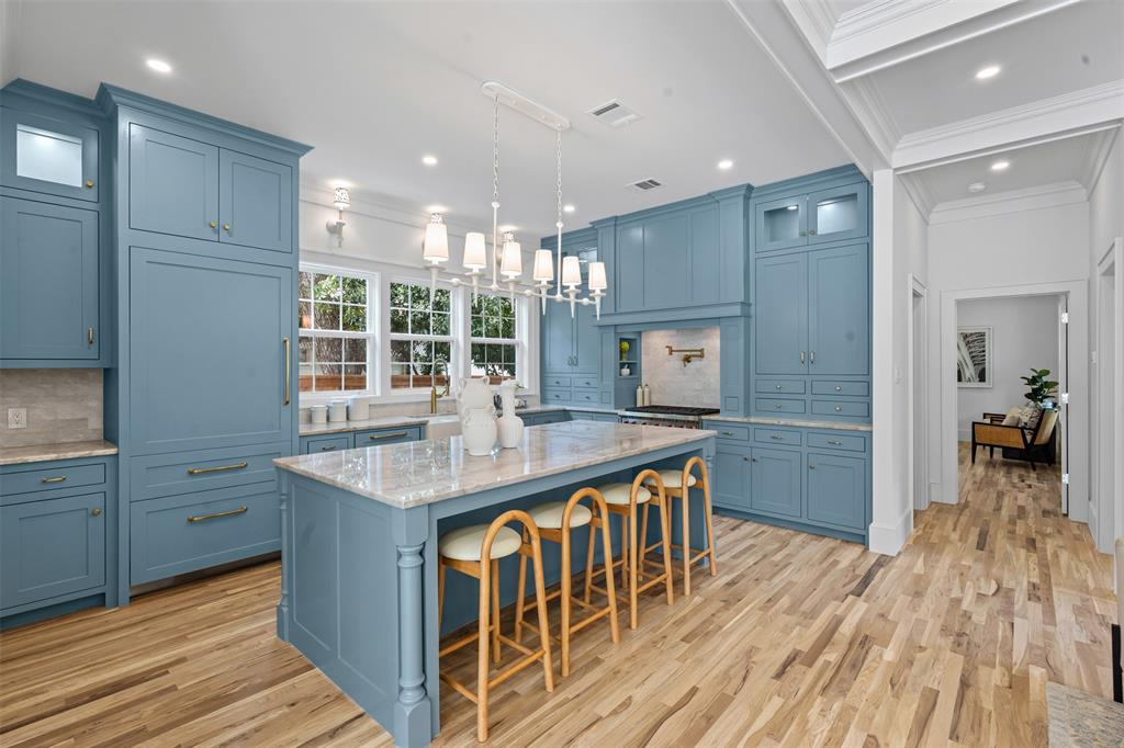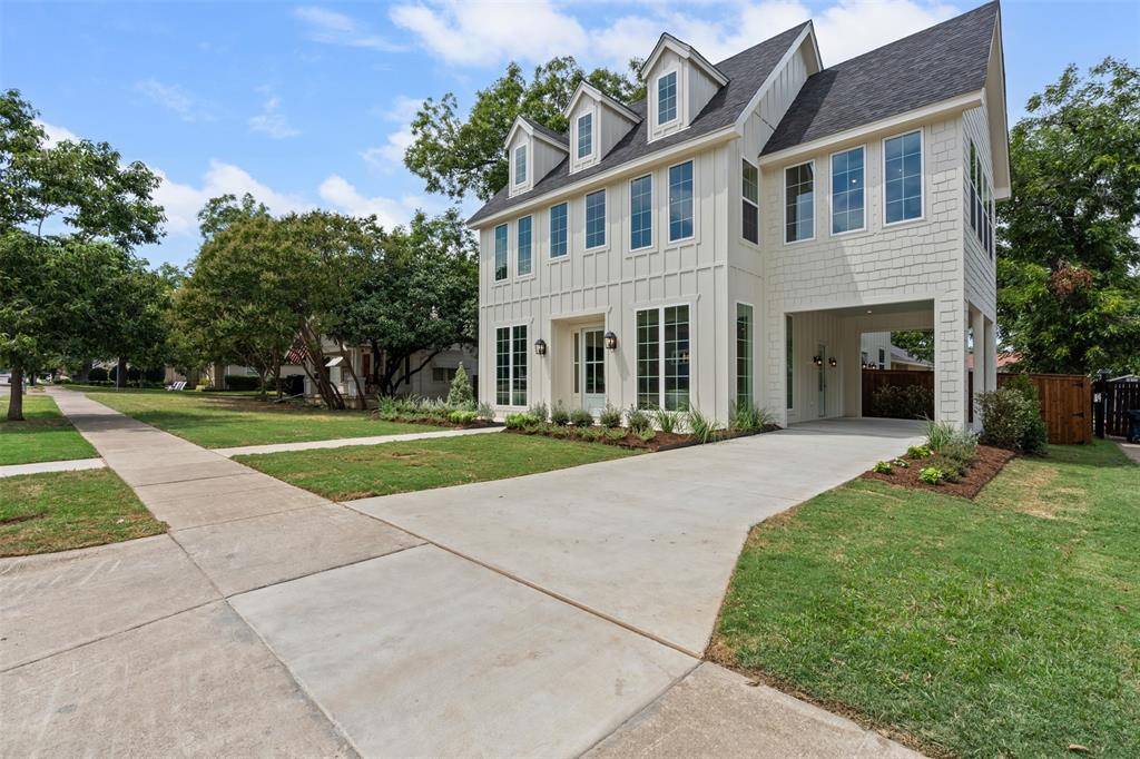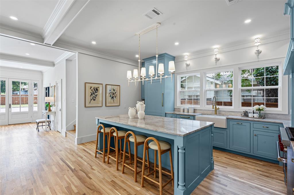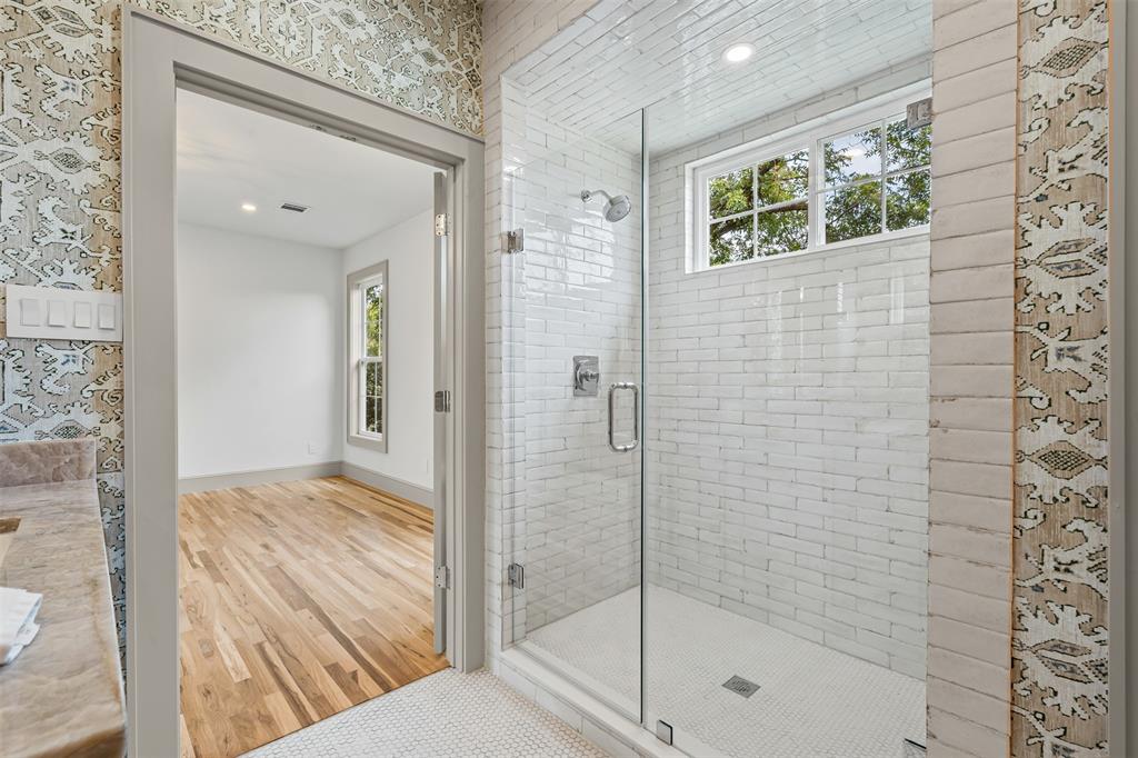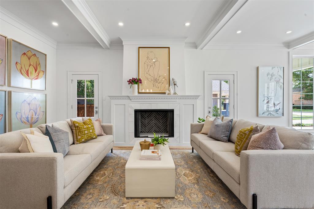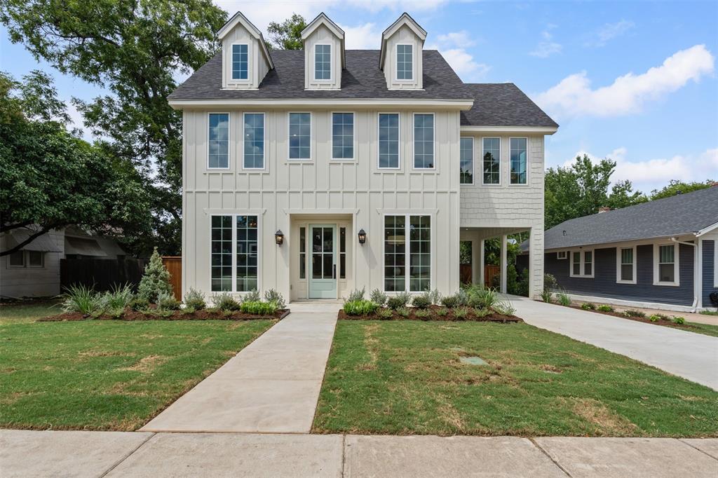 This Monticello bespoke Provincial-inspired residence by Yellow Door Renovations blends architectural heritage with contemporary artistry, all just a few blocks from River Crest CC. Its crisp white exterior is articulated in classic board-and-batten paneling, lending texture and depth across the façade. Inside, light spills through floor-to-ceiling windows, illuminating coffered ceilings adorned with intricate moldings. Designer light fixtures are dramatic focal points throughout, and Venetian plaster in the den-office creates a jewel box. The kitchen, anchored by an expansive island, is both the heart and masterpiece with custom cabinetry and Taj Mahal quartzite countertops, and warm brass hardware. A Wolf professional-grade gas range, an integrated Thermador refrigerator, and an expansive pantry are ready for preparing memorable meals to share with friends and family. The kitchen is destined to be the gathering space with ample seating and perfect positioning in the open-concept great room. The primary suite is a true retreat, with a spa-like en-suite bath featuring soothing Carrara marble and a luxurious soaking tub, along with double closets. Throughout, gorgeous wallpaper selections define the character of each space. Other conveniences include a second-floor den-flex space with vaulted ceiling, laundry, and extra parking under the porte-cochere. Every detail has been attended to with elegant selections and thoughtful detailing. This is a home where form and function are inseparable, and craftsmanship is celebrated. The neighborhood is a walker’s dream with old growth trees, wide sidewalks, close proximity to the cultural district and ever-expanding culinary options on Historic Camp Bowie.