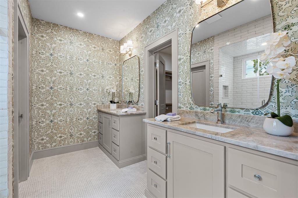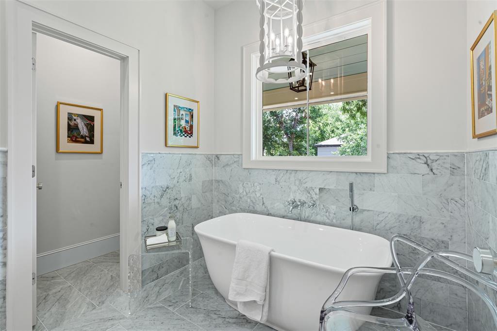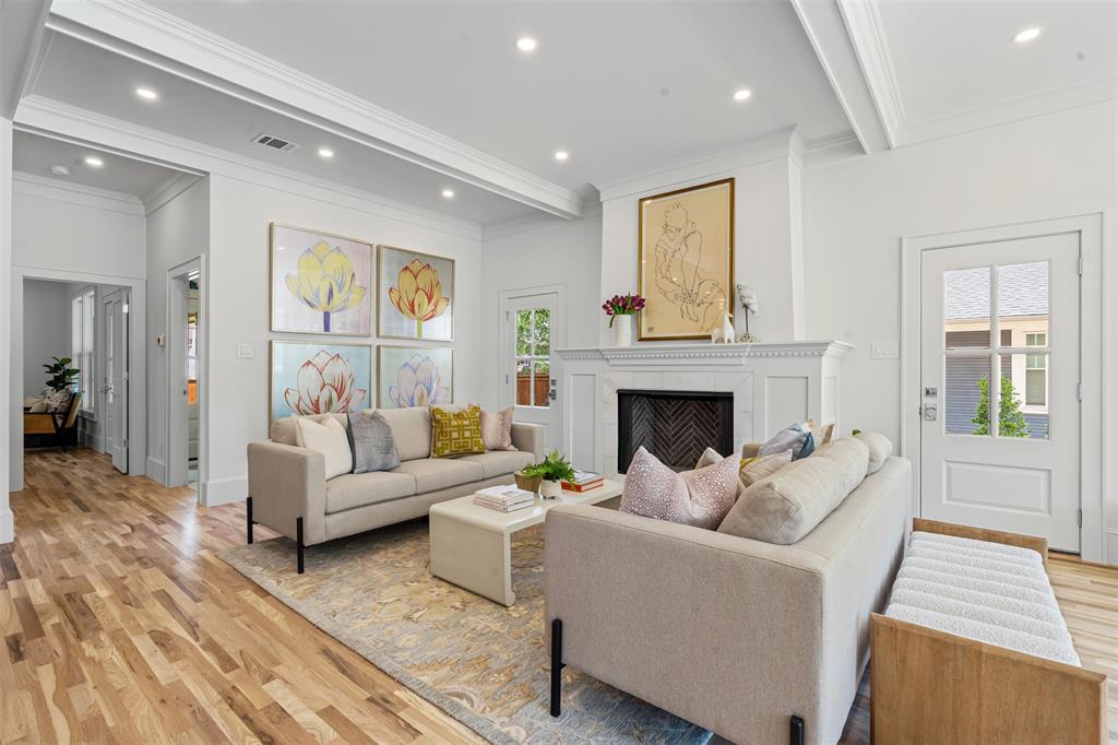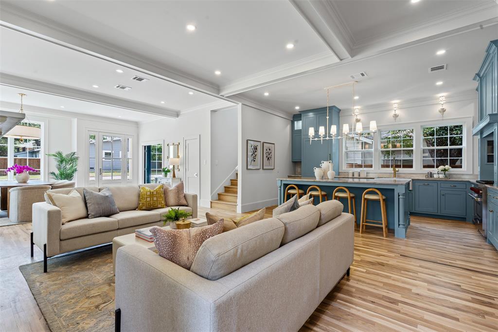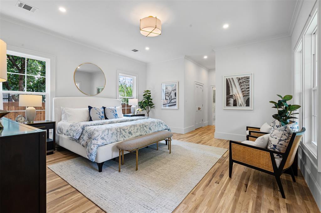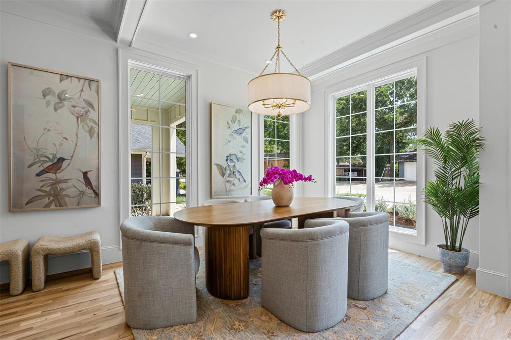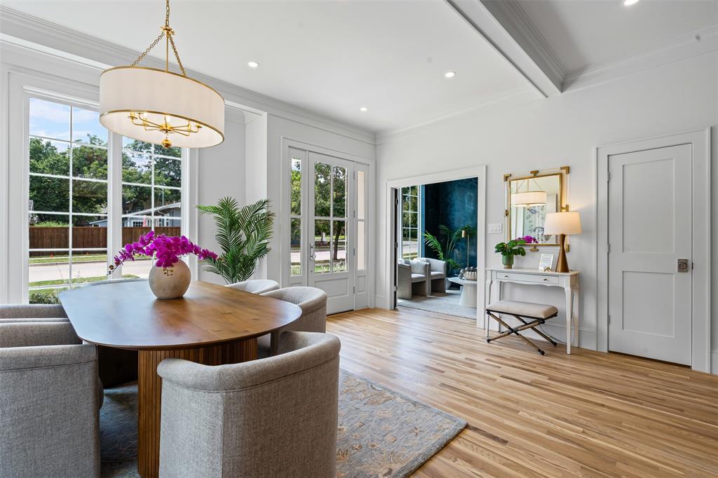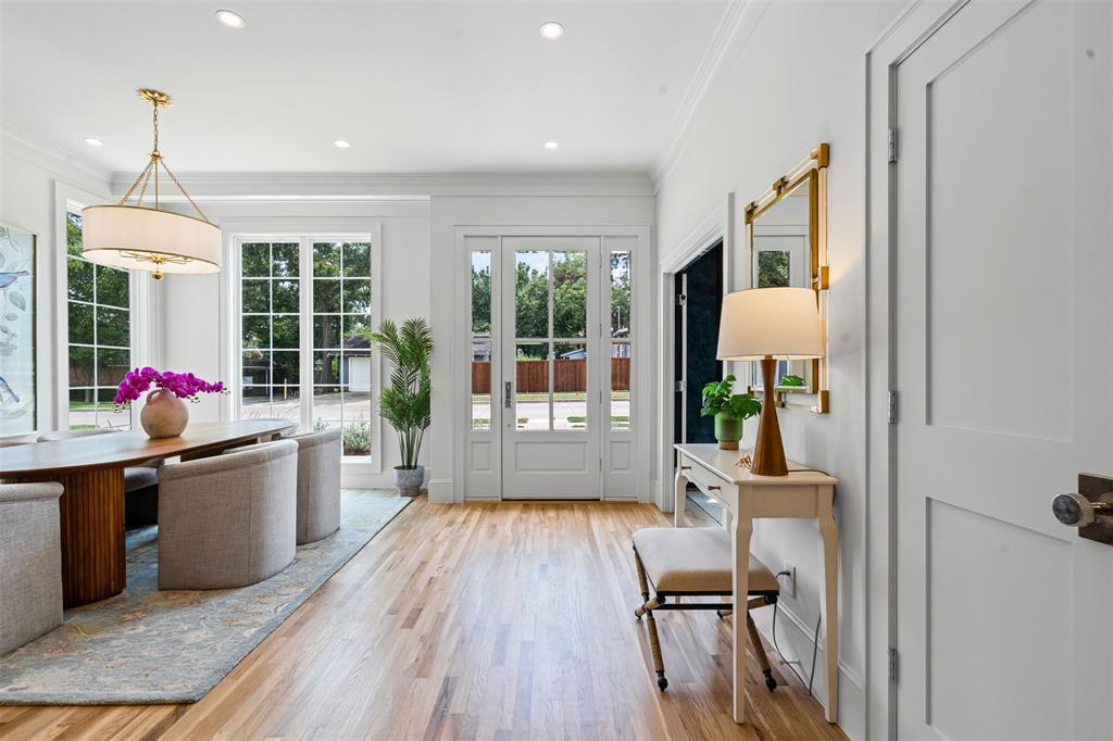 This Monticello bespoke Provincial-inspired residence by Yellow Door Renovations blends architectural heritage with contemporary artistry, all just a few blocks from River Crest CC. Its crisp white exterior is articulated in classic board-and-batten paneling, lending texture and depth across the façade. Inside, light spills through floor-to-ceiling windows, illuminating coffered ceilings adorned with intricate moldings. Designer light fixtures are dramatic focal points throughout, and Venetian plaster in the den-office creates a jewel box. The kitchen, anchored by an expansive island, is both the heart and masterpiece with custom cabinetry and Taj Mahal quartzite countertops, and warm brass hardware. A Wolf professional-grade gas range, an integrated Thermador refrigerator, and an expansive pantry are ready for preparing memorable meals to share with friends and family. The kitchen is destined to be the gathering space with ample seating and perfect positioning in the open-concept great room. The primary suite is a true retreat, with a spa-like en-suite bath featuring soothing Carrara marble and a luxurious soaking tub, along with double closets. Throughout, gorgeous wallpaper selections define the character of each space. Other conveniences include a second-floor den-flex space with vaulted ceiling, laundry, and extra parking under the porte-cochere. Every detail has been attended to with elegant selections and thoughtful detailing. This is a home where form and function are inseparable, and craftsmanship is celebrated. The neighborhood is a walker’s dream with old growth trees, wide sidewalks, close proximity to the cultural district and ever-expanding culinary options on Historic Camp Bowie.