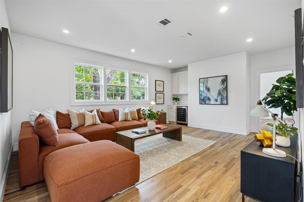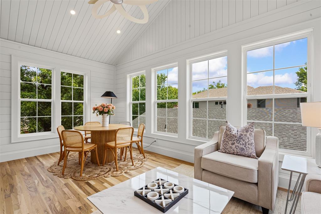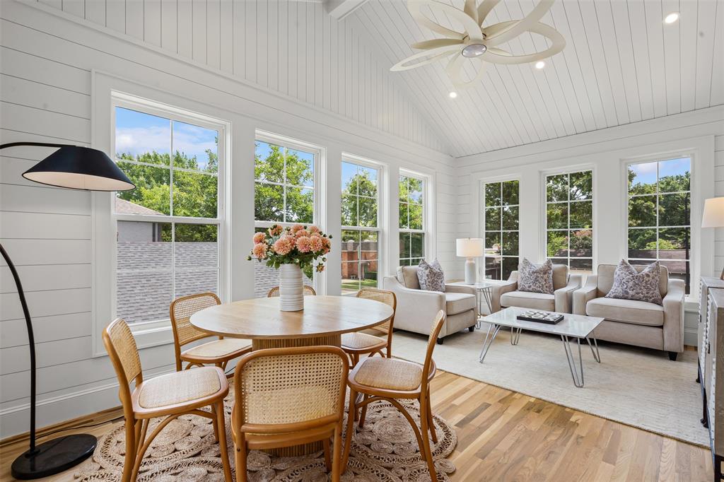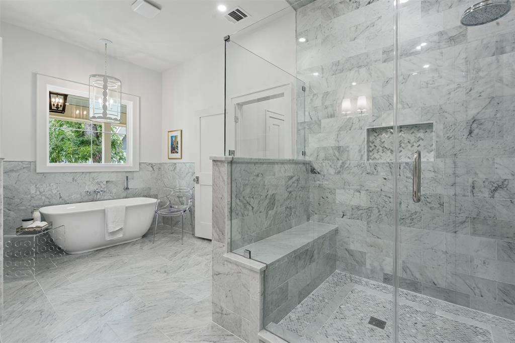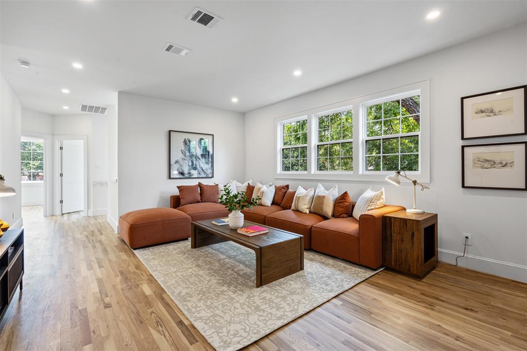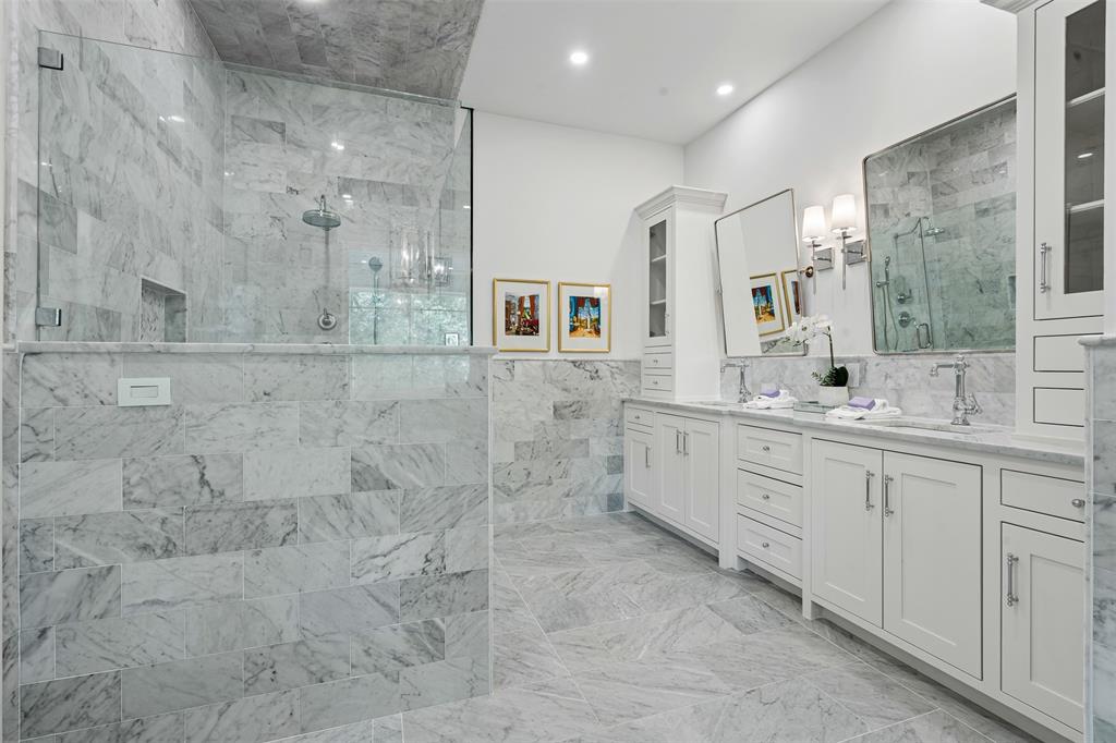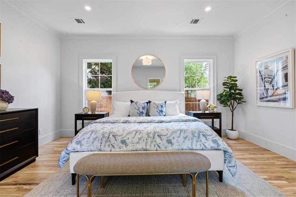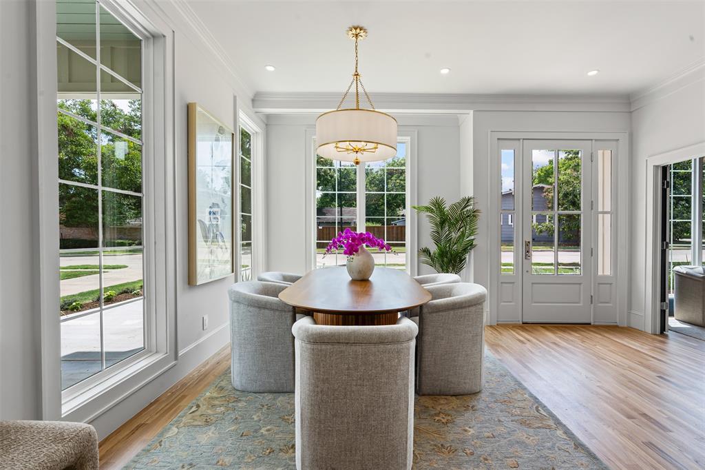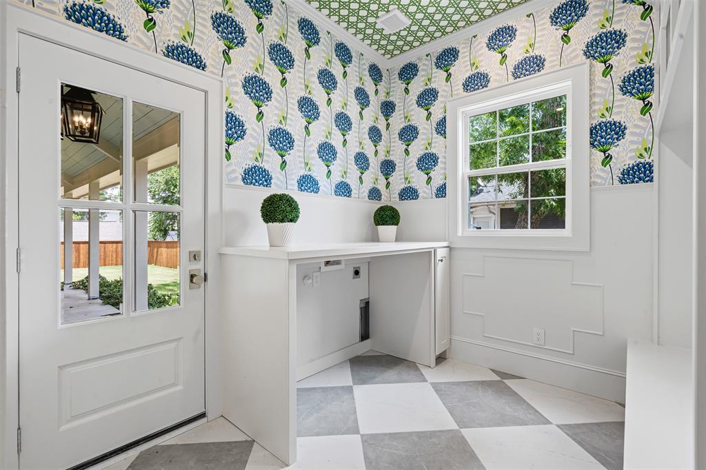 This Monticello bespoke Provincial-inspired residence by Yellow Door Renovations blends architectural heritage with contemporary artistry, all just a few blocks from River Crest CC. Its crisp white exterior is articulated in classic board-and-batten paneling, lending texture and depth across the façade. Inside, light spills through floor-to-ceiling windows, illuminating coffered ceilings adorned with intricate moldings. Designer light fixtures are dramatic focal points throughout, and Venetian plaster in the den-office creates a jewel box. The kitchen, anchored by an expansive island, is both the heart and masterpiece with custom cabinetry and Taj Mahal quartzite countertops, and warm brass hardware. A Wolf professional-grade gas range, an integrated Thermador refrigerator, and an expansive pantry are ready for preparing memorable meals to share with friends and family. The kitchen is destined to be the gathering space with ample seating and perfect positioning in the open-concept great room. The primary suite is a true retreat, with a spa-like en-suite bath featuring soothing Carrara marble and a luxurious soaking tub, along with double closets. Throughout, gorgeous wallpaper selections define the character of each space. Other conveniences include a second-floor den-flex space with vaulted ceiling, laundry, and extra parking under the porte-cochere. Every detail has been attended to with elegant selections and thoughtful detailing. This is a home where form and function are inseparable, and craftsmanship is celebrated. The neighborhood is a walker’s dream with old growth trees, wide sidewalks, close proximity to the cultural district and ever-expanding culinary options on Historic Camp Bowie.