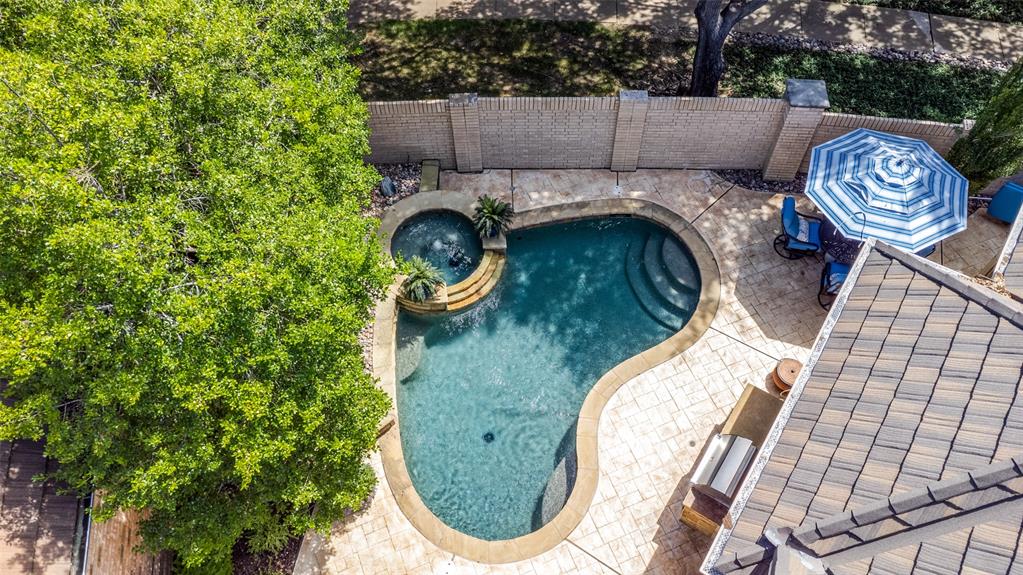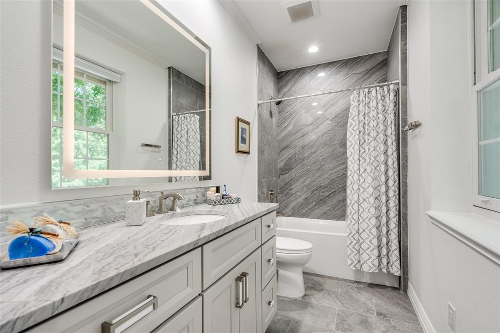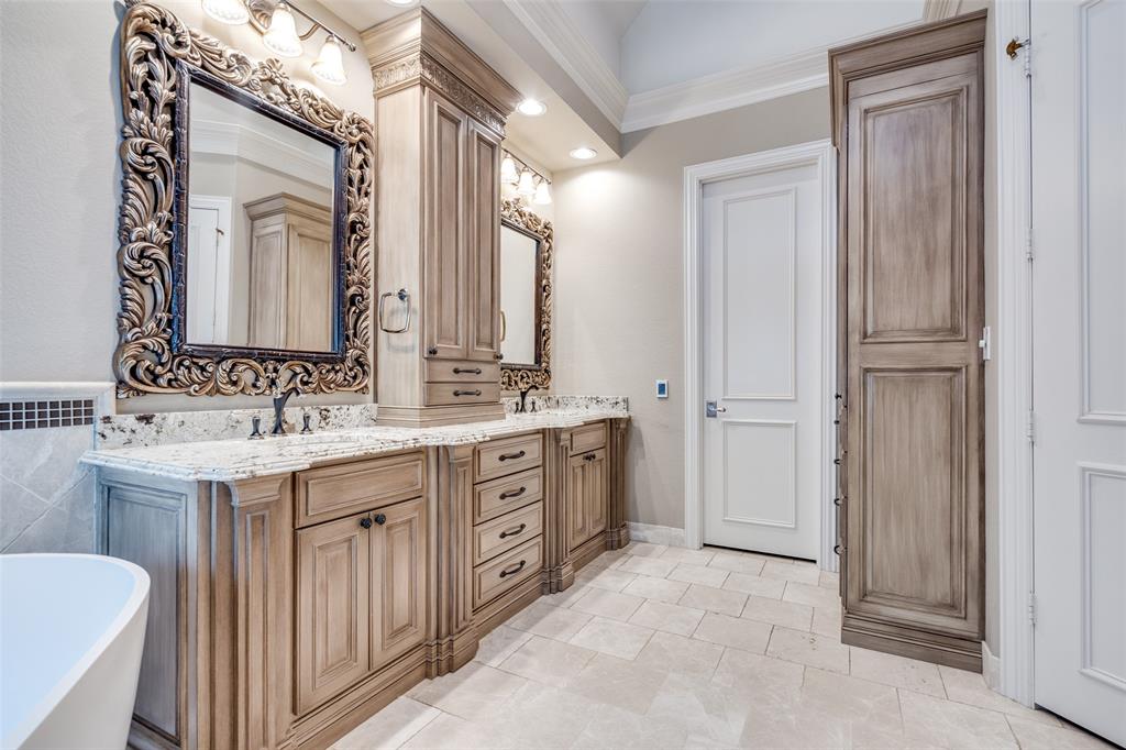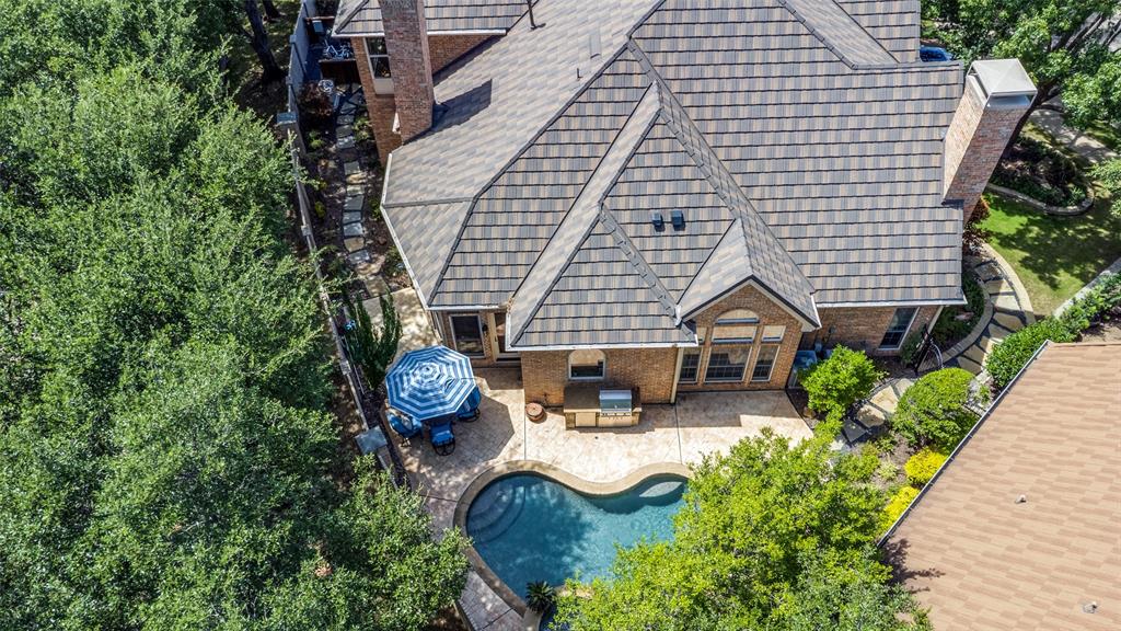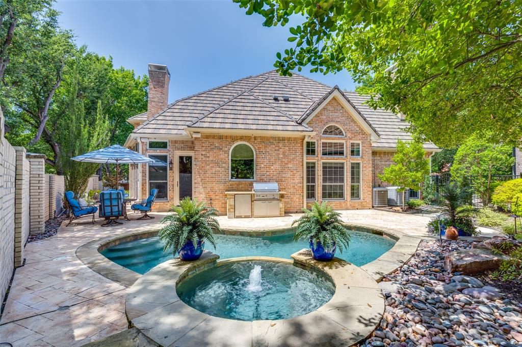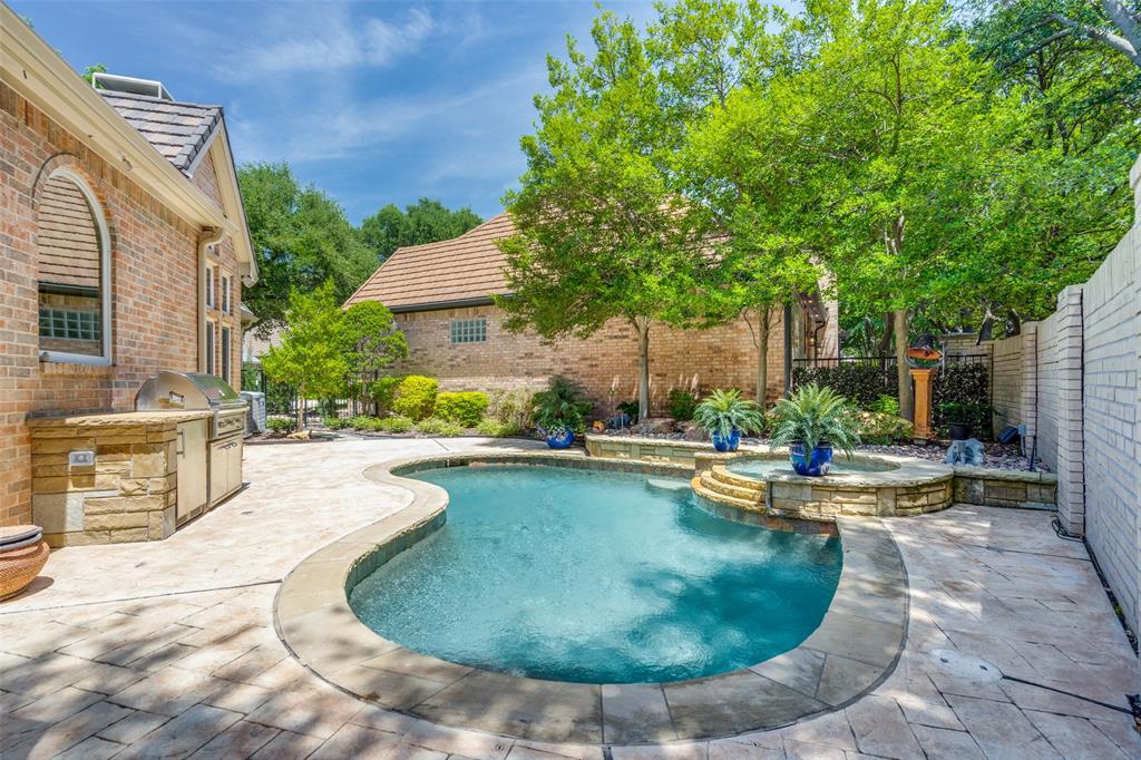 UNIQUE zero lot line in the lovely Stonebriar Village, a gated and guarded community with TWO PRIMARY suites & TWO STUDIES AND MANY HIGH END FINISHES with many added features and udates. Second floor was completely remodeled in 2023. The second story primary bath features quartz countertops, lighted mirrors, cermanic tile flooring, a large walk in shower, garden tub, and a linen closet. This primary suite also includes a huge closet (measures 12 x 10). Additionally the suite has hardwood flooring, a separate office with a wall of builtins and shelves above, and a 155 sq feet of a sunroom that makes a great TV or sitting room with incredible views of tons of trees and creek area. Don't miss upstairs guest room. It has a ensuite bath with lighted mirror and quartz! First floor primary has been remolded in 2019 with granite countertops, a tower, dual sinks, free-standing elegant tub, a custom closet, and a large walk in shower! Heated flooring in both primary baths! Chef's kitchen with extended island, granite countertops, Viking Appliances, double ovens, a built-in subzero refrigerator, a large walk in pantry, and a reverse osmosis water filtration system. The wrap around breakfast bar seats up to 5 people. Large breakfast room that views the resort style outdoor living area is open to the family room! Formal study (or could be 4th bedroom) with adjacent full bath, french doors, closet, a wall of built ins. No carpet in this great home, hardwood floors and ceramic tile throughout. Great wine storage with wine cooler. Two attics with walk in storage. Security and Sprinkler systems! Double garage has epoxy flooring, and custom cedar door. Extensive landscaping with stone borders. A whole house Generac generator, a Culligan water softener system, and a Moen water safety system stay with the home. Seller prides in taking care of the home. AGENT IS THE SPOUSE OF THE SELLER.