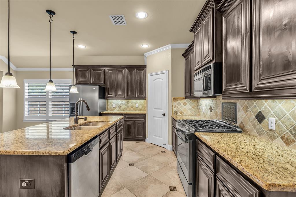 **PRICE IMPROVEMENT** This stunning 4-bedroom, 2-bath home sits on a desirable corner lot and offers exceptional curb appeal with its brick and stone exterior and spacious 3-car garage. Inside, you'll find an open floor plan with soaring ceilings. The 4th bedroom (flexible space) is currently being used as an office. The heart of the home is a dream kitchen featuring a massive island, granite countertops, SS appliances, and gas cooking—perfect for everyday living and entertaining. Enjoy cozy evenings by the stone fireplace in the spacious living area, and host special occasions in the separate formal dining room. Need a home office or an extra bedroom? The private study off the front entry offers flexible space to meet your needs. Throughout the home, you'll find high-end touches like plantation shutters and certified green energy efficiency for comfort and cost savings. Step outside to your covered back patio with a beautiful pergola—ideal for outdoor living. The fully landscaped yard with a sprinkler system includes an 8 ft cedar privacy fence (board on board with steel post) Located in a thoughtfully designed master-planned community, enjoy resort-style amenities including a pool, clubhouse, dog park, pickleball and tennis courts, fitness facility, and more—there’s truly something for everyone! Don’t miss this opportunity to own a home that has it all—schedule your tour today!