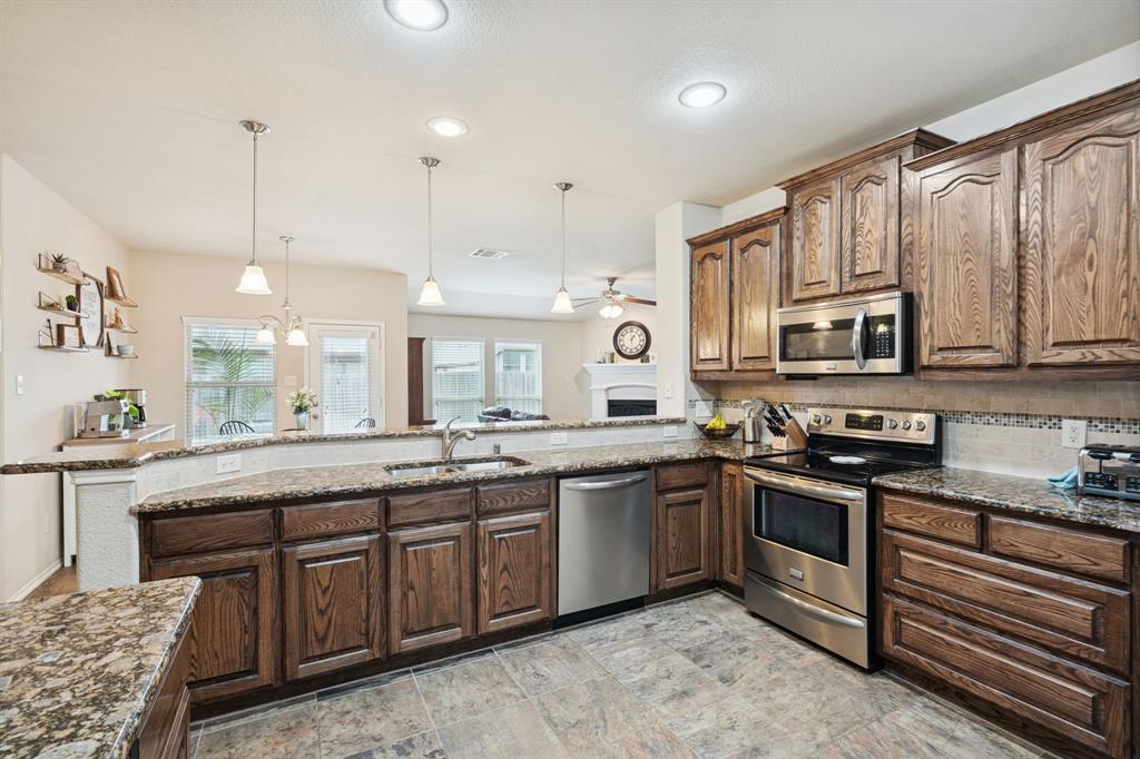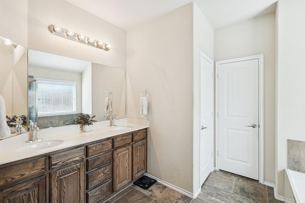 Ask agent about $5000 towards closing cost! This four bedroom, two bath home combines comfort, convenience, and thoughtful updates. Ideally located near Lewis Elementary, scenic trails, neighborhood parks, and the lake, this property makes everyday living easy. Inside, you’ll find a flexible floor plan with plenty of room for family, guests, or a home office. The primary suite offers a private retreat with dual vanities, a soaking tub, walk-in shower, and large walk-in closet. The kitchen includes beautiful oak cabinetry, granite countertops, and a bright breakfast room, while the adjoining living area features a wood-burning fireplace and views of the backyard. A separate formal living room provides additional space to gather. This home has been well cared for with a new roof installed in 2022, a radiant barrier for energy efficiency, a sprinkler system with a trickle line, and fiber optic internet hardwired in both the office and living room. The owners have also added partial attic decking for extra storage and maintained quarterly pest control service. The private backyard is great for relaxing or entertaining, and the location offers easy access to Hwy 80 and a quick drive to shopping, dining, and entertainment in Rockwall.