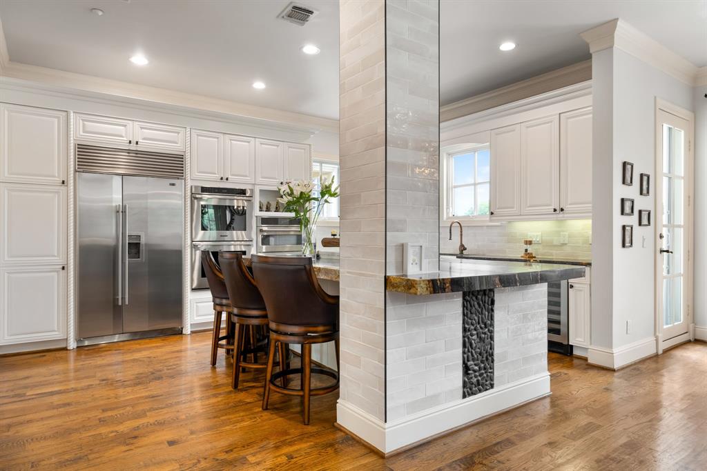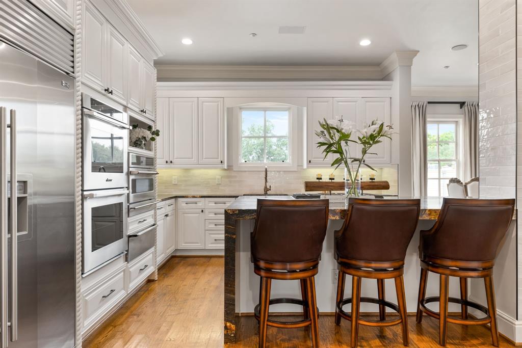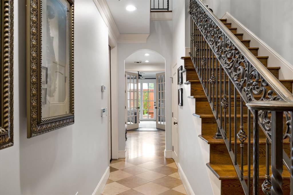 Refined luxury meets effortless living in this elegantly updated corner townhome within the exclusive, gated community of Cascada at Turtle Creek. With only 22 residences and direct, gated access to the Katy Trail, this private enclave offers an unparalleled lock-and-leave lifestyle in the heart of Dallas. Thoughtfully designed across three levels, this home features three spacious bedrooms, two recently renovated spa-like bathrooms, and a beautifully updated chef’s kitchen. The first floor includes a stylish study or 3rd bedroom, and a private guest suite with en-suite bath, walk-in closet, and access to a serene courtyard—perfect for hosting or relaxing. The second floor is an entertainer’s dream with a built in bar, dramatic staircase, expansive formal living and dining areas, and an open kitchen with great natural light that blends function with sophistication. On the third floor, the luxurious primary suite offers a true retreat with dual WC, ample linen storage, and two oversized custom walk-in closets as well as a large laundry room with built ins and a sink. Enjoy hand-scraped hardwood floors, abundant natural light from corner exposures, and low-maintenance living walkable from the best of Uptown and Highland Park.