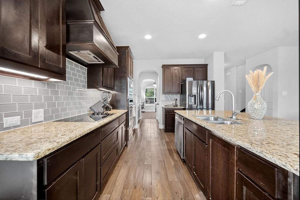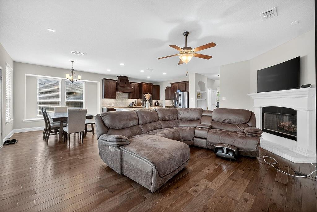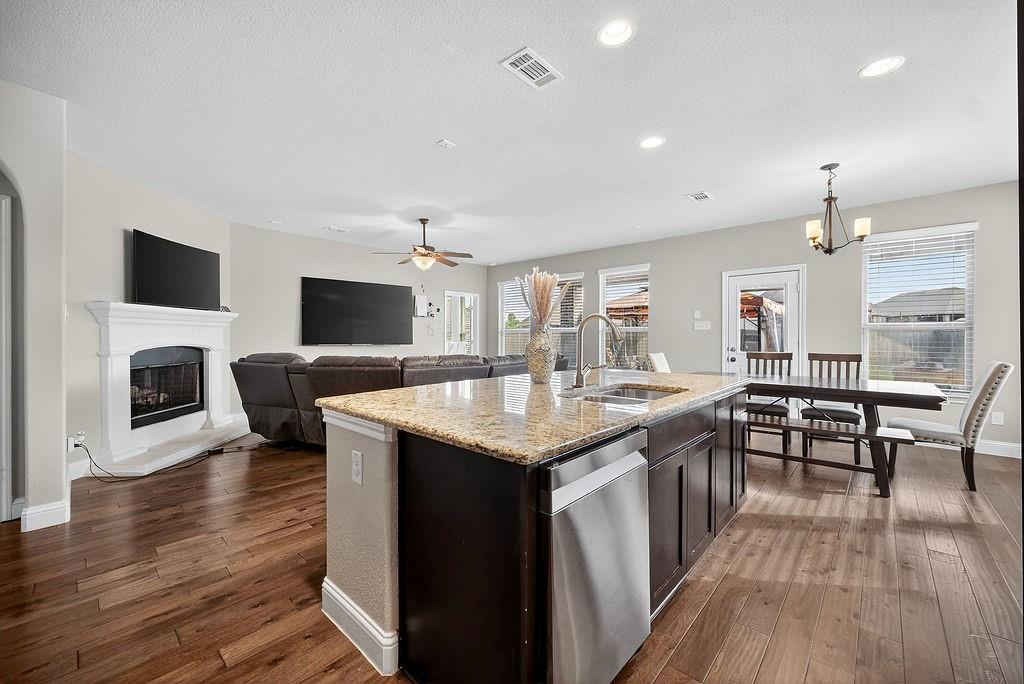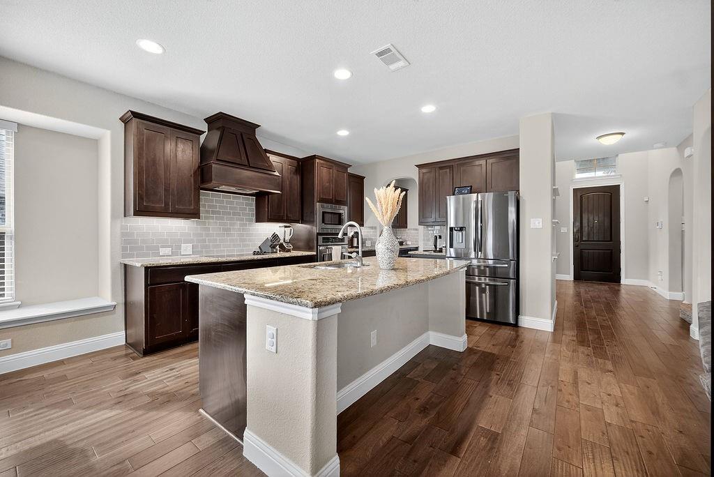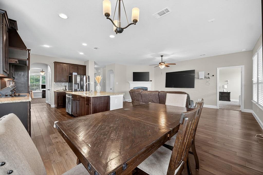 Your next chapter begins here - spacious, stylish, and made for modern living. This stunning home offers a spacious open floor plan designed for comfort and style. The bright and functional kitchen is the heart of the home, featuring a large island, granite countertops, and a butler’s pantry that seamlessly connects to the formal dining area. Hardwood floors flow gracefully throughout the entry, kitchen, living room, and breakfast room, creating a warm and cohesive feel.
