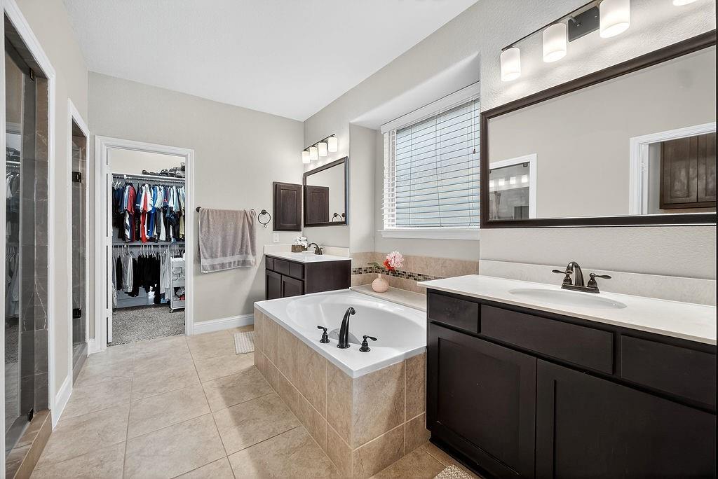 The spacious primary suite boasts an en-suite bath with an oversized shower and a relaxing garden tub. Upstairs, you’ll find a media room, game room, four generously sized bedrooms, and two beautifully updated bathrooms, perfect for family or guests.
