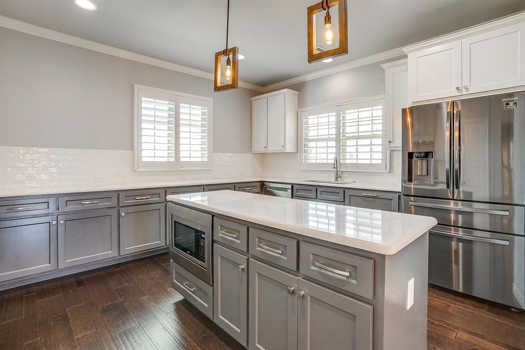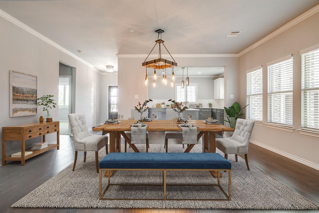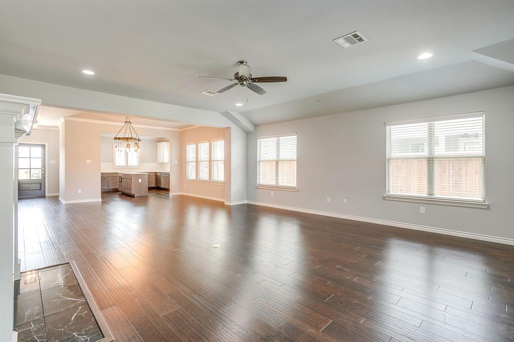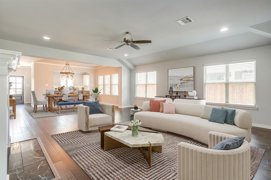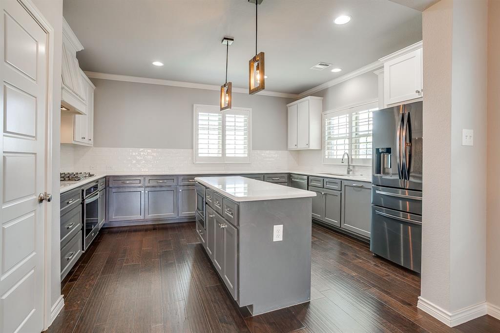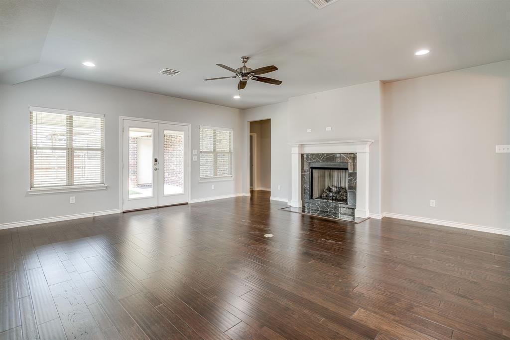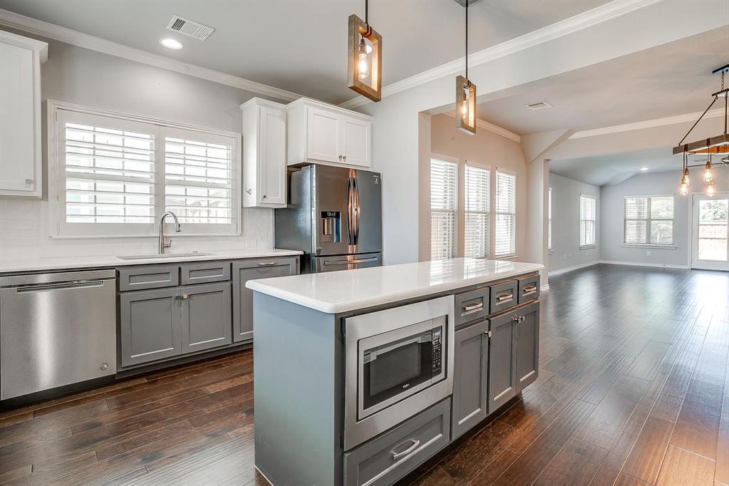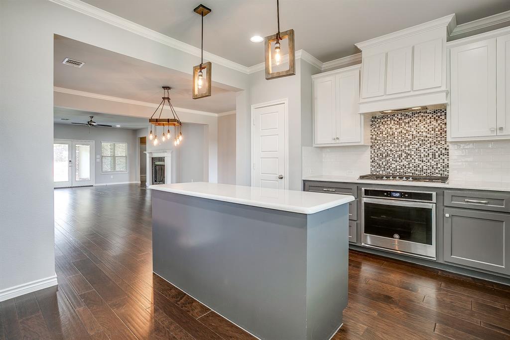 Beautiful single-story in sought-after Walsh Ranch, Aledo ISD! This home charms with a brick-and-stone exterior, inviting front porch, and peaceful greenbelt views. Open-concept living features hardwood floors, a gas fireplace, and walls of windows for natural light. Chef’s kitchen offers an island, quartz counters, two-tone cabinetry, gas cooktop, stainless appliances, and plantation shutters. Private owner’s suite boasts a vaulted ceiling, dual sinks, soaking tub, glass shower, and walk-in closet. Enjoy a covered back patio, fenced yard, and alley access. Just steps from Walsh’s unmatched amenities—Village Market, resort-style pools, fitness center, tennis, playgrounds, lake with dock and fishing, dog parks, and miles of trails—offering a vibrant community lifestyle you’ll love coming home to!