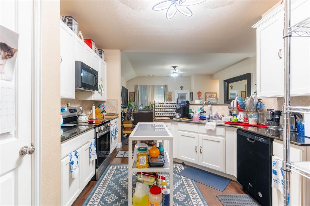 The kitchen is a chef’s delight with granite countertops, ample cabinetry, black appliances including a smooth-top electric range, and a pantry for extra storage. The spacious owner’s retreat is tucked away at the back of the home for privacy and features an ensuite bath with a large walk-in shower and a custom walk-in closet.
