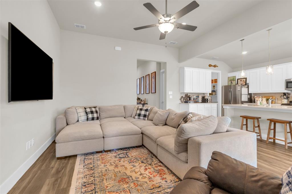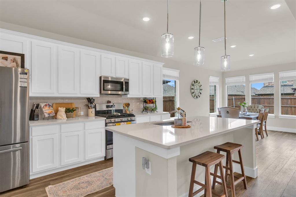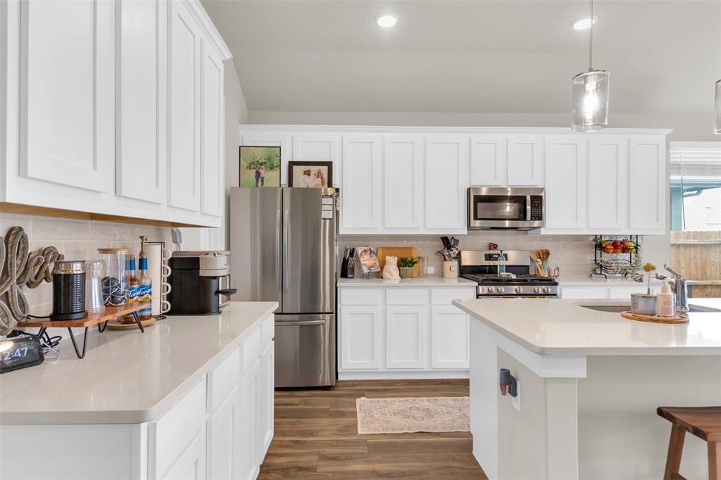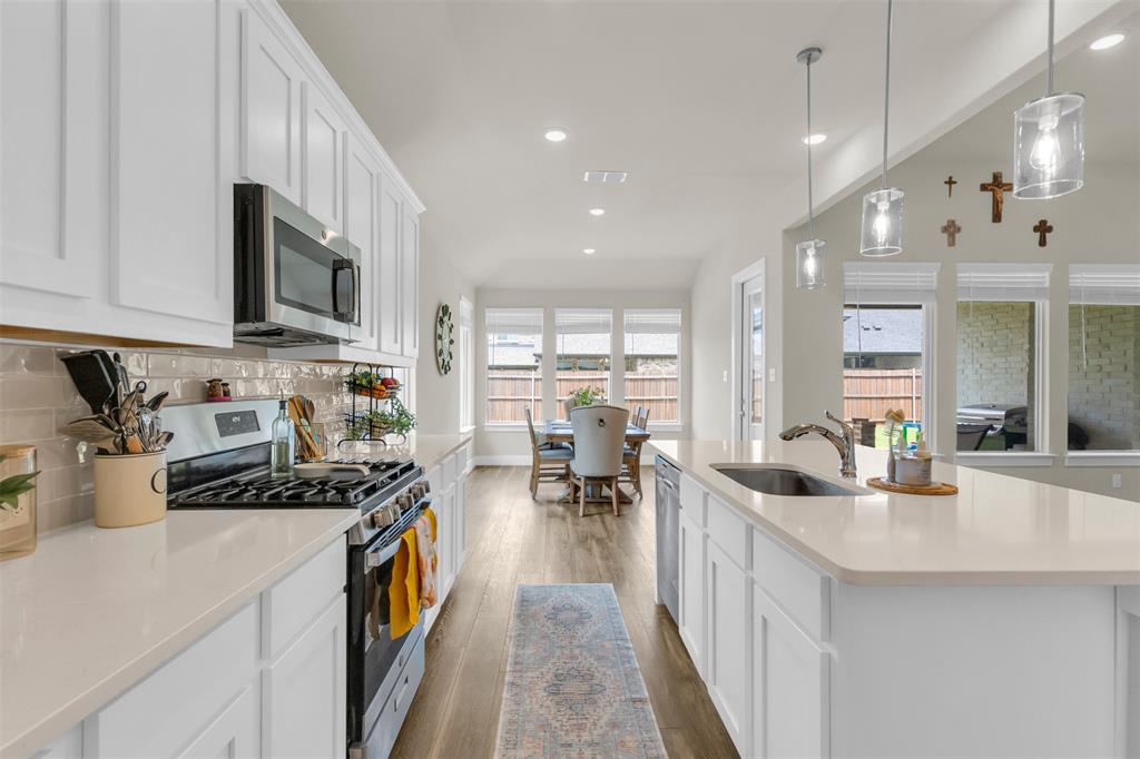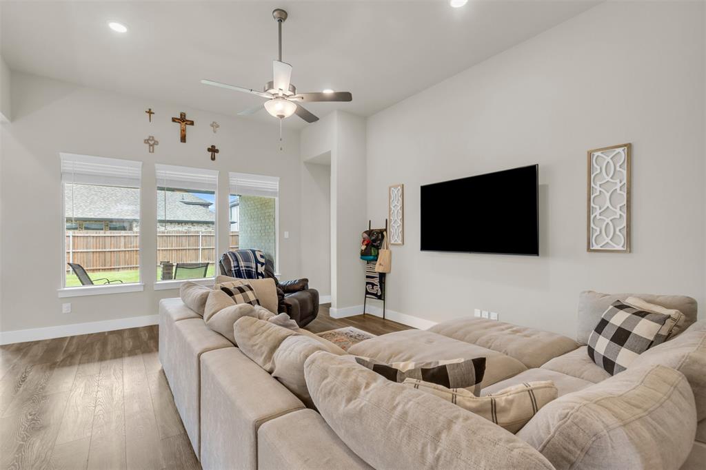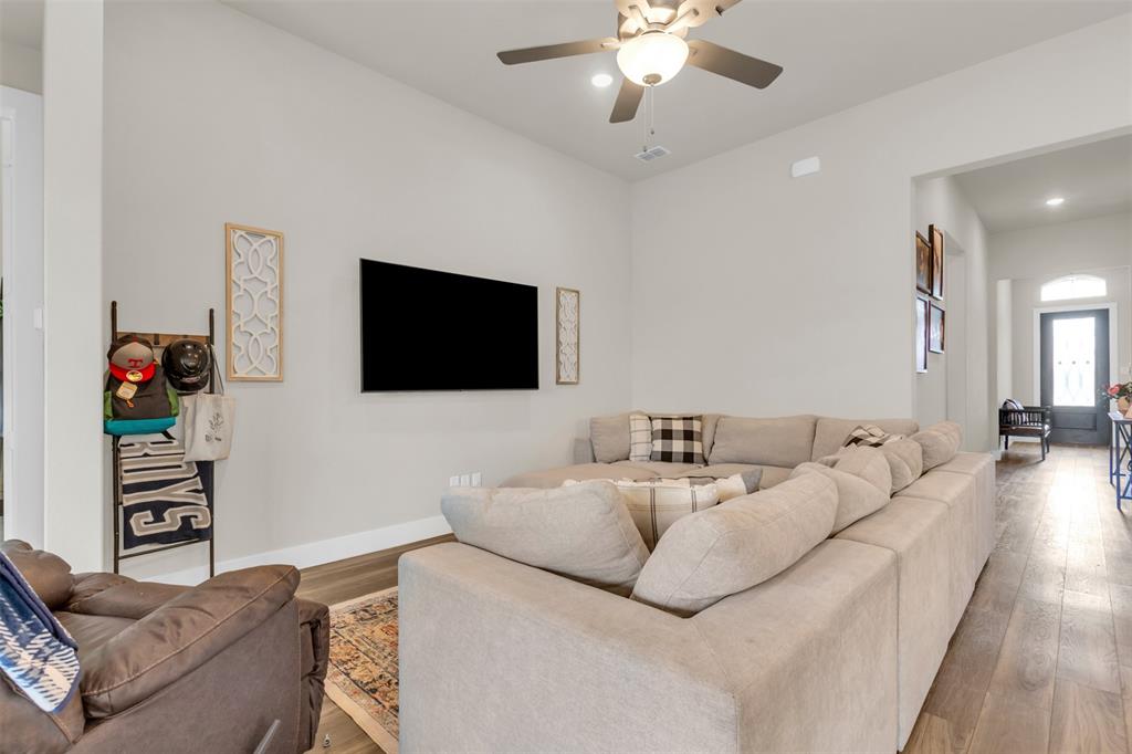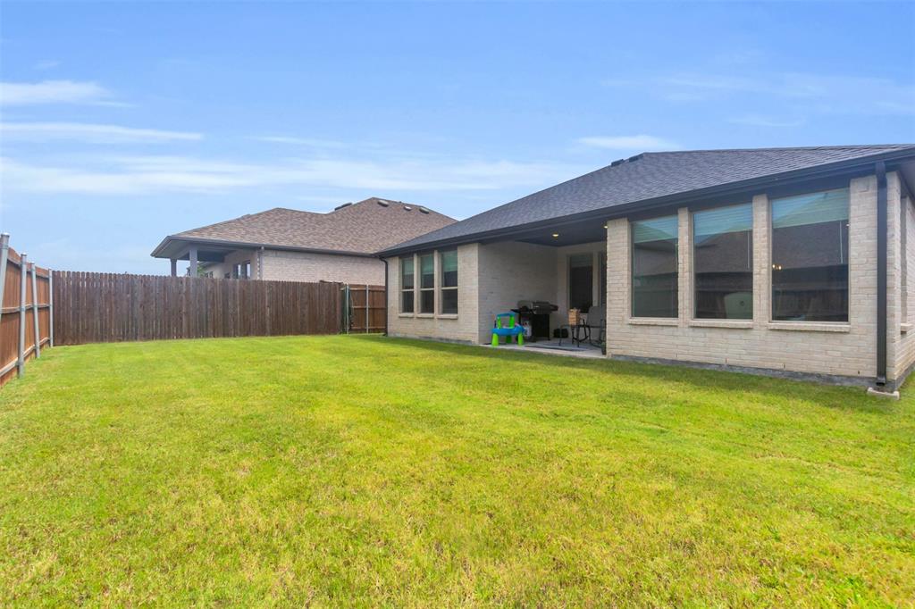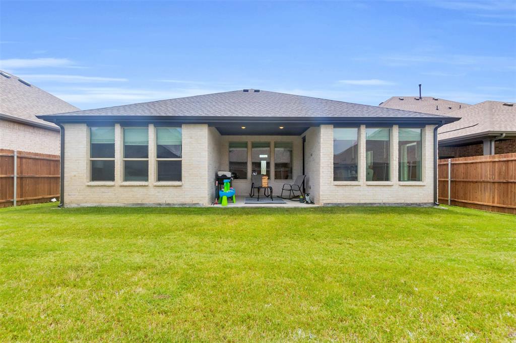 Welcome to this stunning 3-bedroom, 2-bath home built in 2021, where thoughtful design and modern finishes meet everyday comfort. From the moment you arrive, you’ll be wowed by the amazing curb appeal and manicured landscaping. Step inside to soaring 10-foot ceilings throughout, creating a bright, open atmosphere that truly sets this home apart. In addition to the spacious bedrooms, there's a versatile office area—perfect for working from home or, as the current owners use it, a fun and functional playroom for the kids. The covered patio in the backyard is ideal for outdoor dining or simply relaxing after a long day, and the open layout inside is made for both entertaining and everyday living. Located in a vibrant community packed with amenities, you’ll enjoy access to a resort-style pool, splash pad, clubhouse, fitness center, and plenty of open green space for outdoor fun. Commuting is a breeze with easy highway access, putting everything you need within reach. HEB, Target and multiple other shopping centers will soon be open which will be only minutes away! Don't miss your chance to own this beautiful, move-in-ready home in one of the area's most sought-after neighborhoods
