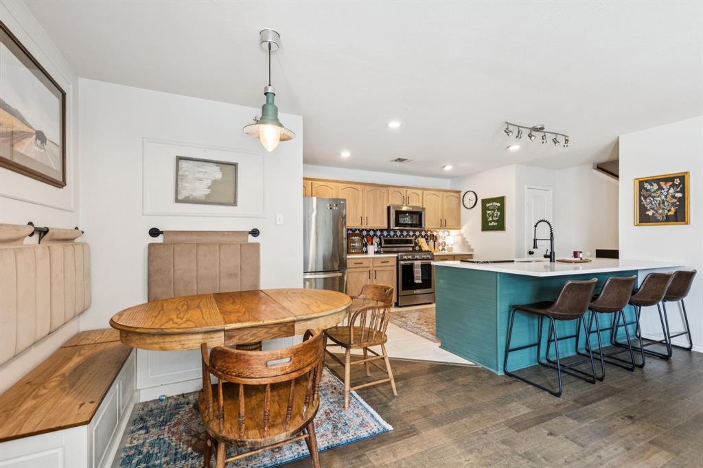Step into this warm and inviting 4-bedroom, 2.5-bath home in the heart of the highly sought-after Savannah community, where resort-style amenities and small-town charm come together perfectly. From the moment you arrive, you’re greeted by a spacious covered front porch—a perfect spot to sip your morning coffee, wave to friendly neighbors, or enjoy a quiet evening. Inside, the home offers a thoughtful layout designed for both relaxation and entertaining. Two spacious living areas provide plenty of room for gatherings, and a convenient downstairs bedroom offers flexibility for guests, multi-generational living, or a private retreat. The bright and airy kitchen is truly the heart of the home, featuring a large center island, ample counter space, and a seamless connection to the family room so you can cook and chat without missing a beat. Decorative touches such as ceramic tiles, custom lighting, and charming wainscoting create a warm, stylish atmosphere throughout. The upstairs primary retreat is a true haven—spacious, private, and serene, complete with a walk-in closet and a luxurious ensuite bath where you can unwind after a long day. Upstairs, you’ll also find a generous loft, perfect for a home library, play area, or cozy reading nook. Out back, the fenced yard is ready for summer barbecues, gardening, or simply soaking up the sunshine. A 2-car garage provides convenience and extra storage. Best of all, you’ll enjoy all the amenities that make Savannah so special—sparkling community pools, lush parks, scenic lakes, playgrounds, and miles of walking trails—just steps from your door. Located in the highly rated Denton ISD and built in 2005, this home blends comfort, community, and character, making it a place you’ll be proud to call your own.