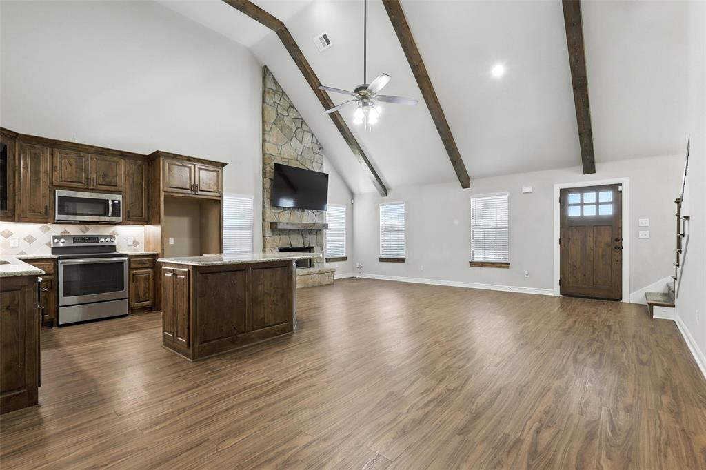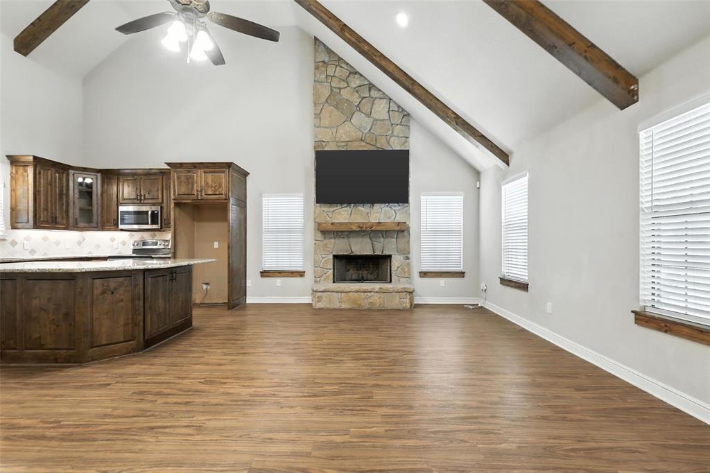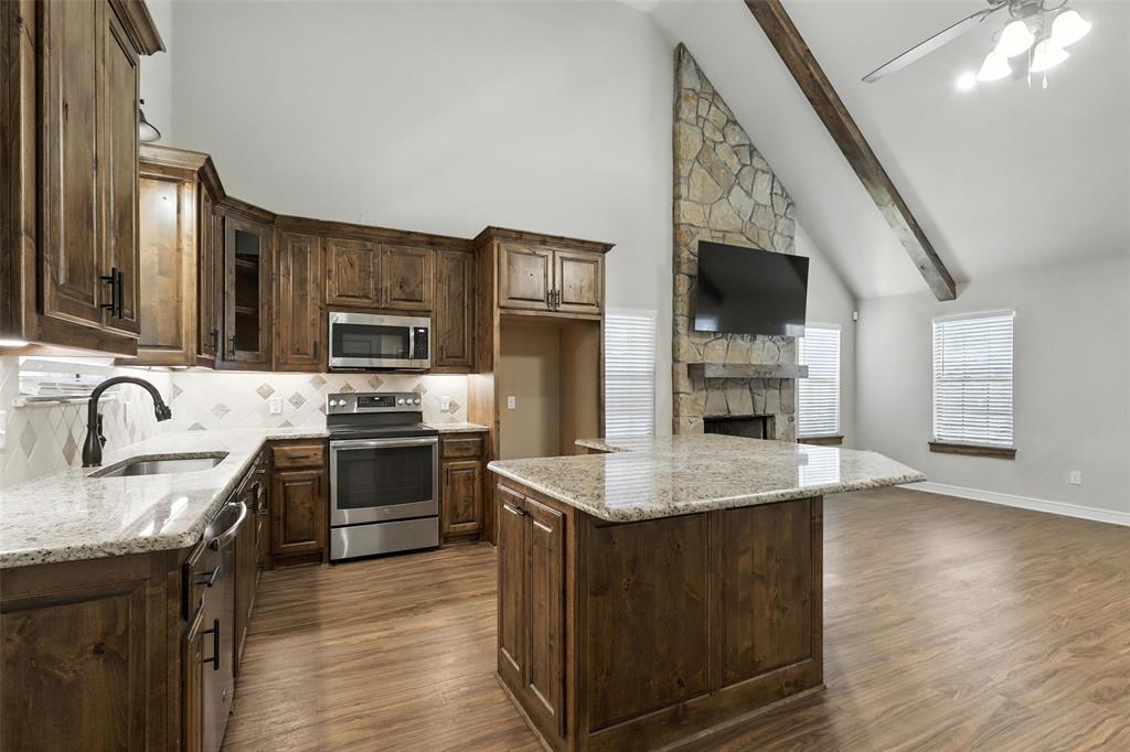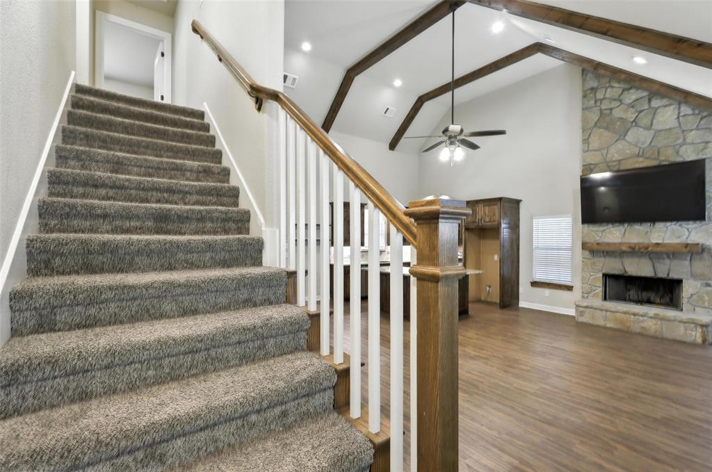 Built in 2019, this well-maintained 4-bedroom, 3-bath home blends style and comfort in a functional layout. The main level offers 2 bedrooms and 2 full baths, while the second floor features 2 more bedrooms and a full bath, giving everyone their own space. The open-concept living area is anchored by a stunning stone, wood-burning fireplace, vaulted ceilings with dark wood beams, and durable luxury vinyl plank flooring. The kitchen is a chef’s delight with a large granite island, custom cabinetry, and gas line at the stove for future upgrades, plus the option to install a tankless gas water heater. Step outside to a fenced backyard ready for pets, play, or entertaining. Recent updates include a brand-new roof and water heater in August 2025. The home also features a convenient carport for covered parking. With its modern finishes, thoughtful upgrades, and inviting spaces, this property is ready for its next chapter.