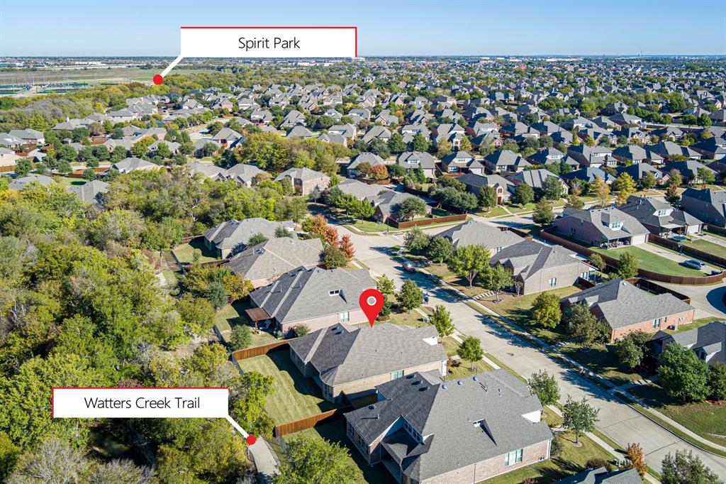Fabulous one-story tucked away in a serene setting, this beautifully maintained home offers the perfect blend of privacy and convenience. Backing to a peaceful creek and lush greenbelt, the home provides scenic views and a tranquil backdrop for everyday living. The thoughtfully designed layout features spacious living areas, an expansive office, mudroom, a well-appointed kitchen, and a split-bedroom floor plan for added privacy. The primary suite boasts an adjoining sitting room or flex space along with a spa-like bath including walk-in shower, soaking tub, dual sinks, linen closet, and large walk-in closet. The home is adorned with shutters throughout. The 3-car garage offers ample space for storage, hobbies, or extra vehicles. Whether you are relaxing on the back patio or enjoying the natural surroundings, this home is a rare find with an unbeatable setting, Waterford Parks offers community pools, trails, parks and walking distance to elementary – Allen ISD. Vibrant community to live, work and enjoy!