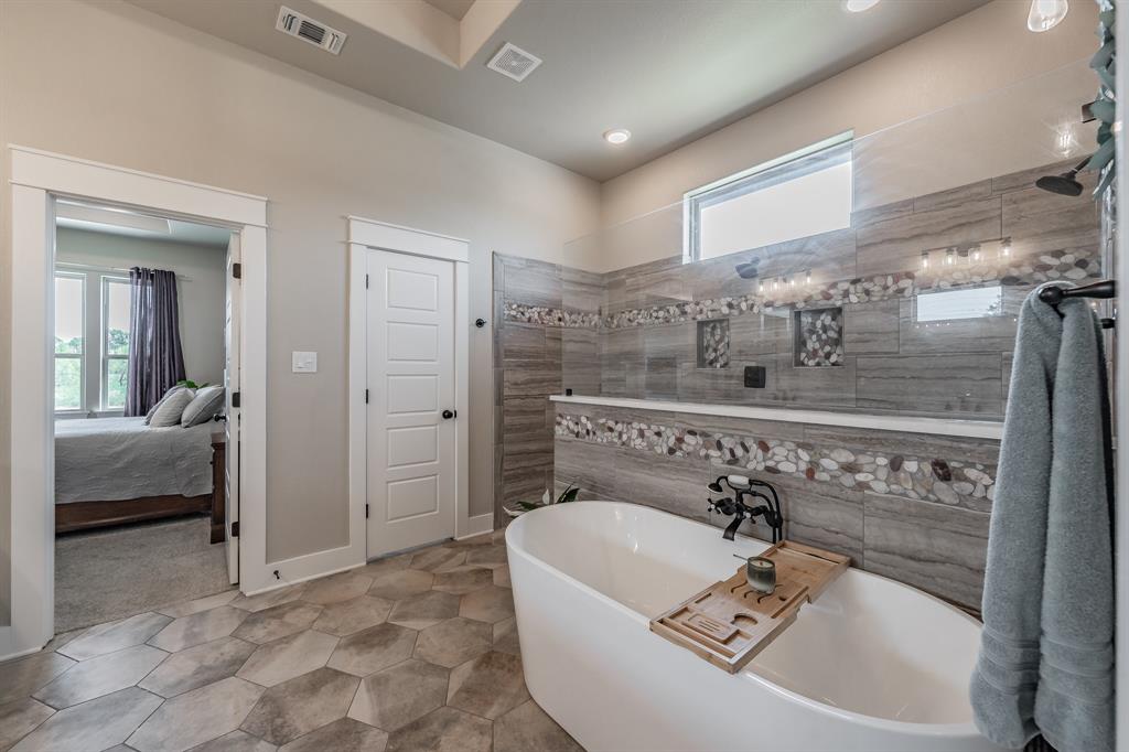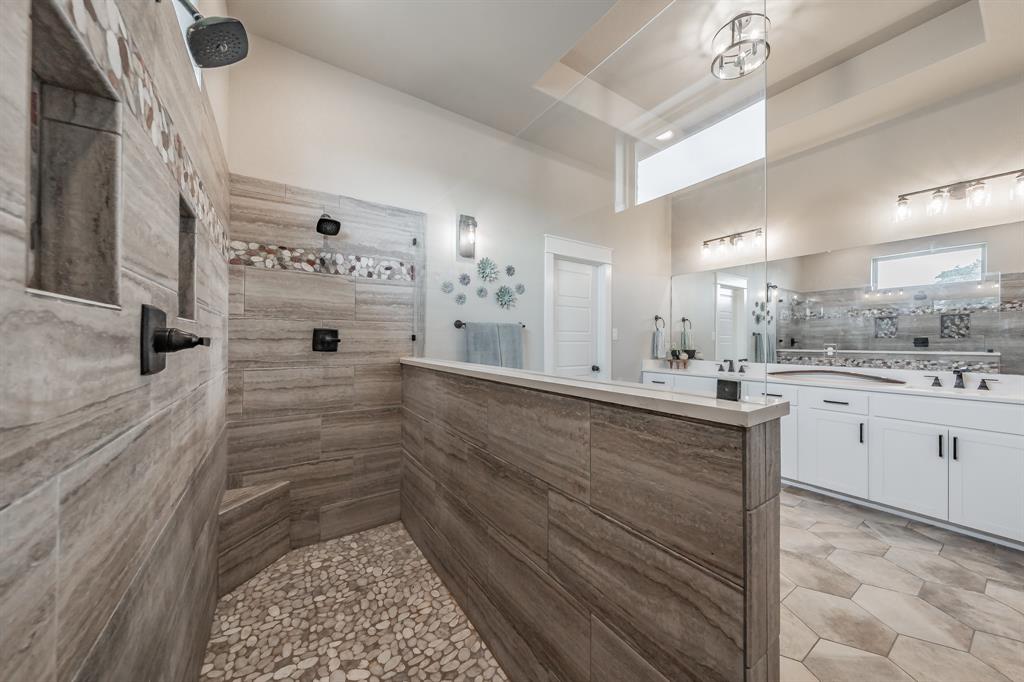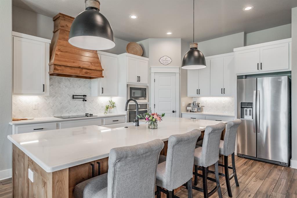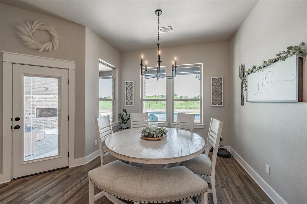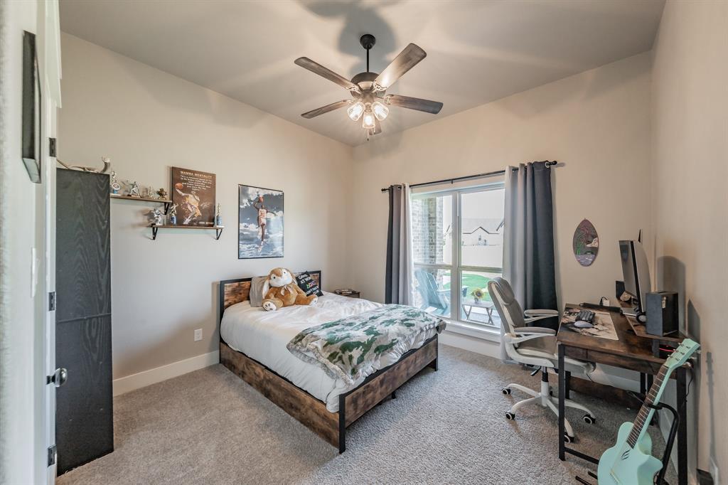 Step outside to a backyard designed for relaxation and entertainment. The sparkling pool with a tranquil water feature and a tanning ledge serves as the focal point, surrounded by generous patio space for lounging or dining al fresco. The fully fenced yard offers privacy and security, while the covered back porch—with its own wood-burning fireplace—sets the stage for cozy evenings under the stars. The sweeping views from the back of the home provide a serene backdrop year-round, making this outdoor space as functional as it is breathtaking. The primary suite is a retreat, boasting a spa-inspired bathroom with a walk-in shower featuring dual spray heads, a soaking tub, and extensive storage. The thoughtfully designed split-bedroom layout places the secondary bedrooms on the opposite side of the home, creating a private retreat for the primary suite. Large utility room with built-in cabinetry and counter space adds convenience, in addition to a drop-zone for backpacks and jackets. Come tour this beautiful home today and experience all it has to offer!