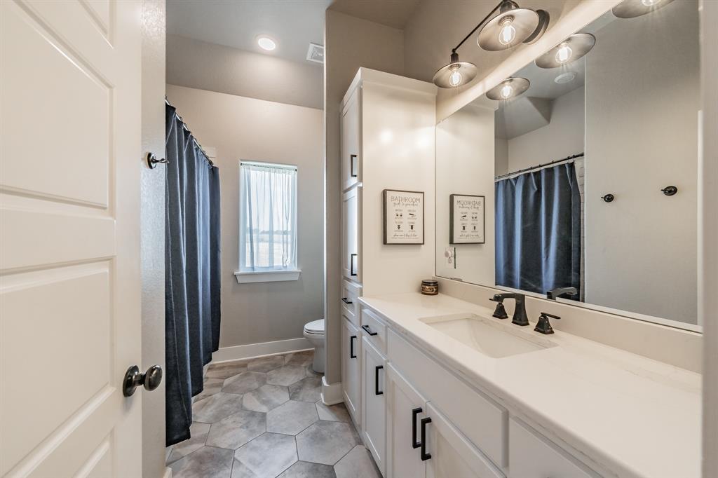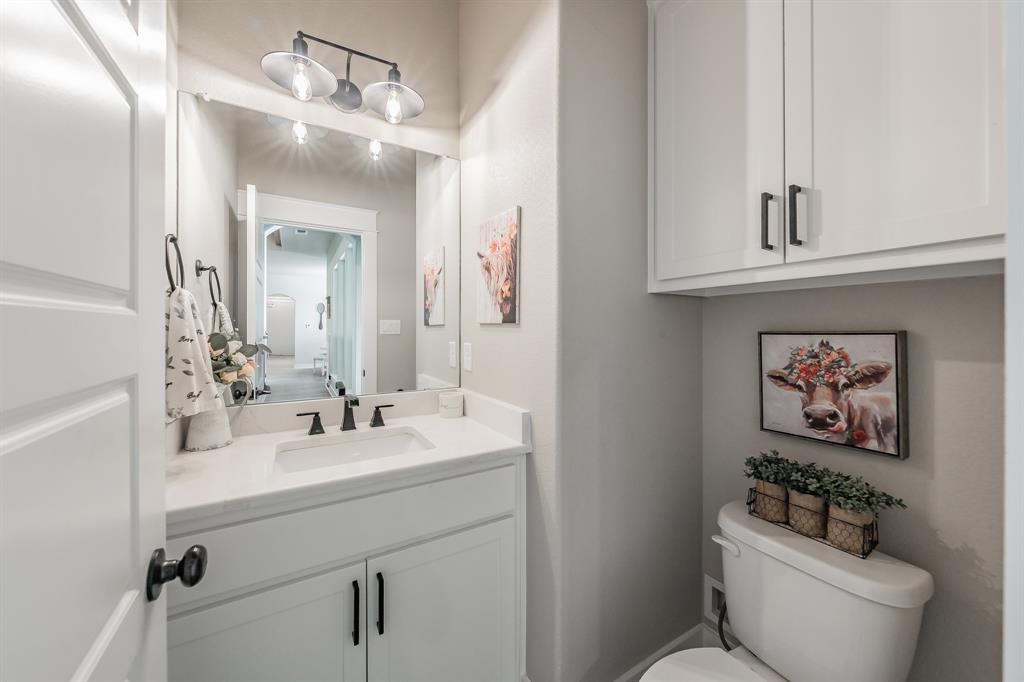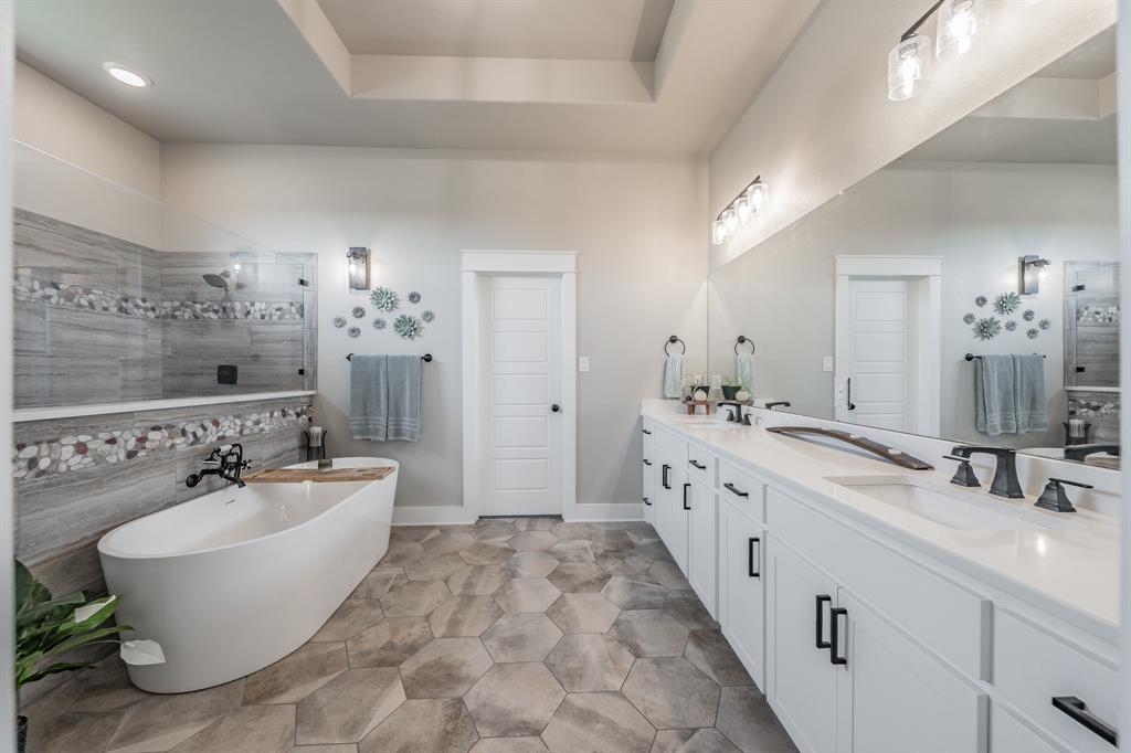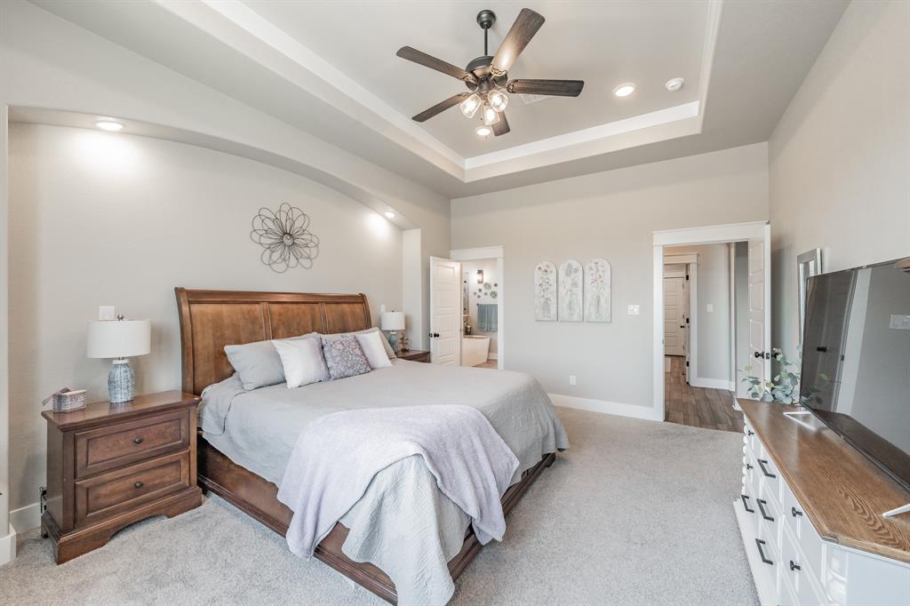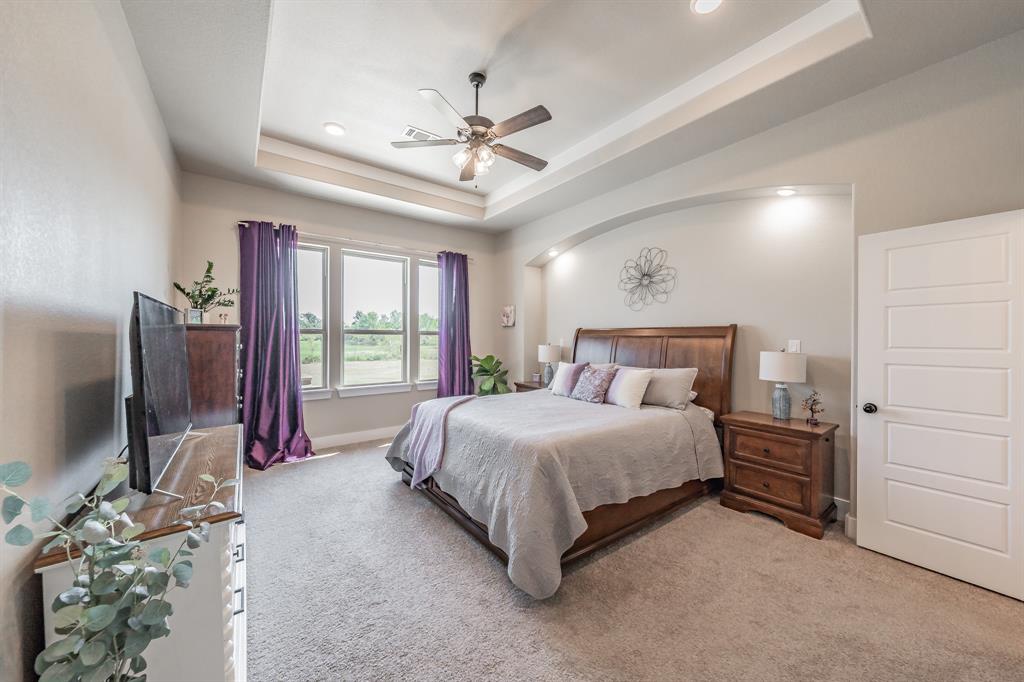 Step outside to a backyard designed for relaxation and entertainment. The sparkling pool with a tranquil water feature and a tanning ledge serves as the focal point, surrounded by generous patio space for lounging or dining al fresco. The fully fenced yard offers privacy and security, while the covered back porch—with its own wood-burning fireplace—sets the stage for cozy evenings under the stars. The sweeping views from the back of the home provide a serene backdrop year-round, making this outdoor space as functional as it is breathtaking. The primary suite is a retreat, boasting a spa-inspired bathroom with a walk-in shower featuring dual spray heads, a soaking tub, and extensive storage. The thoughtfully designed split-bedroom layout places the secondary bedrooms on the opposite side of the home, creating a private retreat for the primary suite. Large utility room with built-in cabinetry and counter space adds convenience, in addition to a drop-zone for backpacks and jackets. Come tour this beautiful home today and experience all it has to offer!