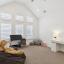 The gourmet kitchen is a chef’s dream—equipped with double ovens, a 6-burner gas cooktop, transom cabinets, a walk-in pantry, and even a built-in trash drawer. The space is pre-wired for surround sound in both the kitchen and patio, perfect for entertaining.