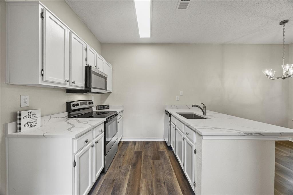 PRICE REDUCED & SELLER IS WILLING TO LOOK AT OFFERS! Beautifully Updated Half Duplex! Perfectly situated near I-30, 635, Hwy 80, and George Bush Turnpike, this beautifully updated two-bedroom, two-bathroom half duplex with a one-car garage offers unmatched convenience for all your commuting needs. The living room features a vaulted ceiling, cozy fireplace, and open-concept design that flows seamlessly into the kitchen that features updated stunning quartz countertops, stainless steel appliances and breakfast bar. Recent updates include luxury vinyl flooring, fresh interior paint, new ceiling fans, stylish light fixtures, and plush carpet. The spacious primary suite boasts dual sinks with quartz countertops and a huge marble walk-in shower. Enjoy the privacy of your outdoor patio and fenced backyard—perfect for relaxing or entertaining. Come make this adorable home your today