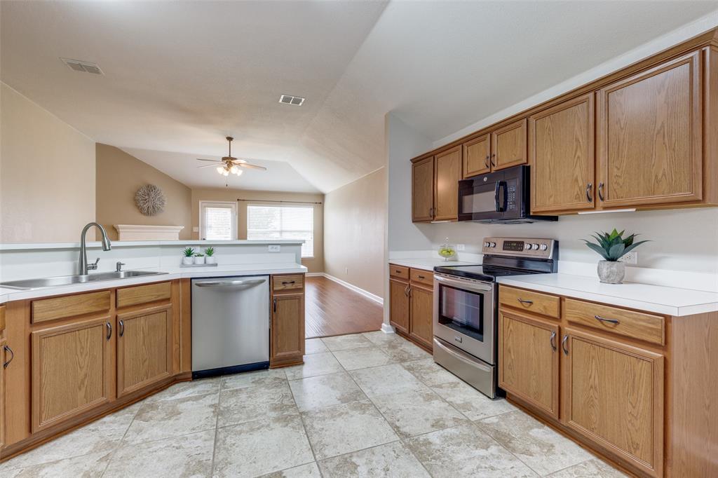 ** DREAM STARTER with NO MUD or PID tax on a LARGE 60 ft Lot!** Nestled in the heart of Celina, TX, this 3-bedroom, 2-bathroom home offers the perfect blend of modern convenience and timeless charm. Enjoy a spacious 60-ft-wide lot featuring a lush grassy backyard shaded by a beautiful mature oak tree. The living room features wood floors and a gas fireplace for cozy evenings. The kitchen boasts a tasteful color scheme, ample storage, and stainless-steel appliances plus a refrigerator. The large dining area seamlessly opens to the kitchen. All bedrooms feature newer Luxury Vinyl Plank flooring and fresh paint, with the primary bedroom having a large walk-in closet and bathroom with updated tile and fixtures. Two secondary bedrooms also have spacious walk-in closets. The bright utility room includes a washer, dryer, and pantry space. Beautifully maintained, this home offers low-maintenance landscaping, a grassy backyard and a patio for enjoying the huge Texas sunsets. Located in the desirable Carter Ranch neighborhood with community pool, playground and fishing lake. You’re just a few blocks from Celina ISD O'Dell Elementary plus enjoy family-friendly parks and vibrant community events like Cajun Fest and Christmas on the Square. With its prime location, INCREDIBLE VALUE, and inviting features, this property is ready to welcome you home!