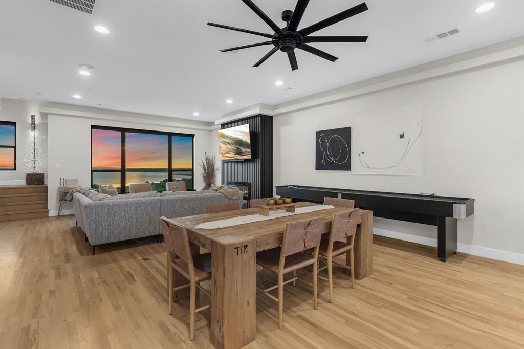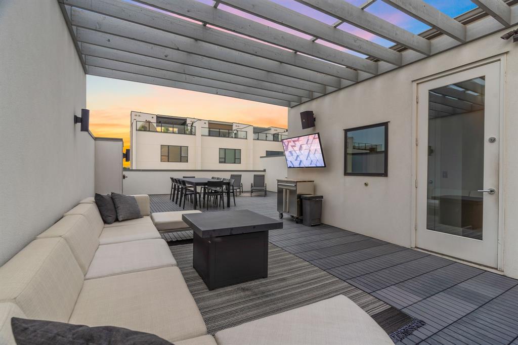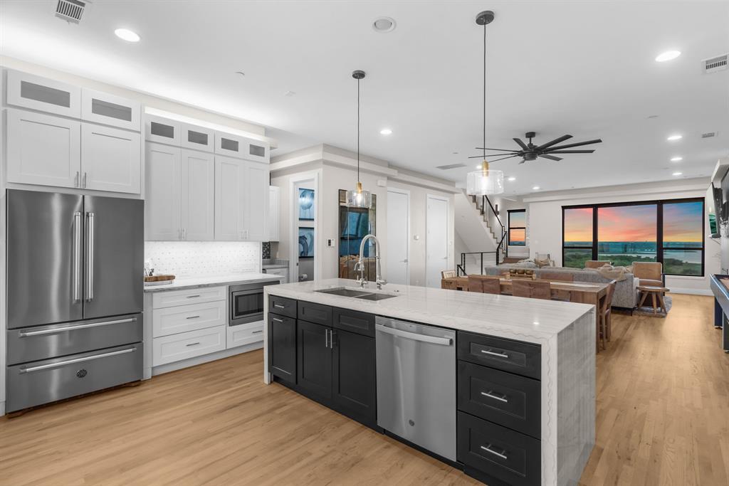 UNOBSTRUCTED BREATHTAKING VIEWS OF LAKE LEWISVILLE from all levels! STUNNING SUNSETS atop this low maintenance, lock & go lifestyle with your own ROOFTOP PATIO! This modern, 3 story townhome is designed for those who love clean lines, natural light, & effortless indoor-outdoor flow. Every level of this home has purpose. The ground floor greets you with sleek concrete flooring, tall ceilings, & leads to a flexible space that can serve as a guest suite, office, or studio—complete with its own full bath & direct access to the private garage. The 2nd floor is for rest & retreat. The primary suite offers lake views & a spa-inspired ensuite bathroom, featuring a walk-in shower, free standing tub, double sinks, lots of storage & a custom closet. A 2nd bedroom with an ensuite bath & walk in closet complete the level, along with a laundry space tucked neatly away. Upstairs, opens up to a spacious kitchen that anchors the heart of the home with custom cabinetry, quartz countertops, & high-end appliances—all within easy reach of the open dining & living areas. Natural light floods in through large picture windows, framing glimpses of the lake and beyond. But the crown jewel is above. Up one more flight, the rooftop patio is your own private escape. Outfitted for lounging, dining, or simply watching the world turn golden, this space offers panoramic lake views and sunsets that are truly magical. Glass railing keeps the view clear, & there's a tastefully designed outdoor kitchen complete with a grill, fridge & sink along with a fireplace, lounging area with a TV & room for a spa, prewired. Whether you're entertaining or unwinding, this townhome delivers modern living with nature & picturesque views from every window. Nothing between you & the lake but COE land with meandering trails & beautiful foliage. SMART HOME features & an ELEVATOR provide added convenience. 2 miles to 121, 17 miles to DFW Airport, 5.5 miles to The Star, 3 miles to Grandscape, 9 miles to PGA.