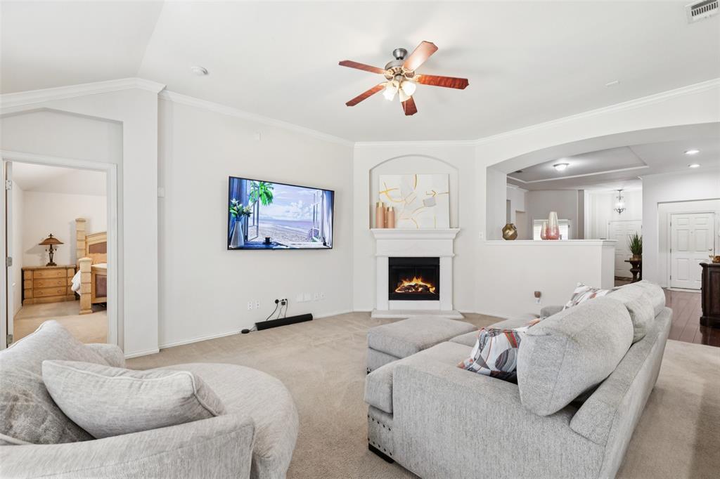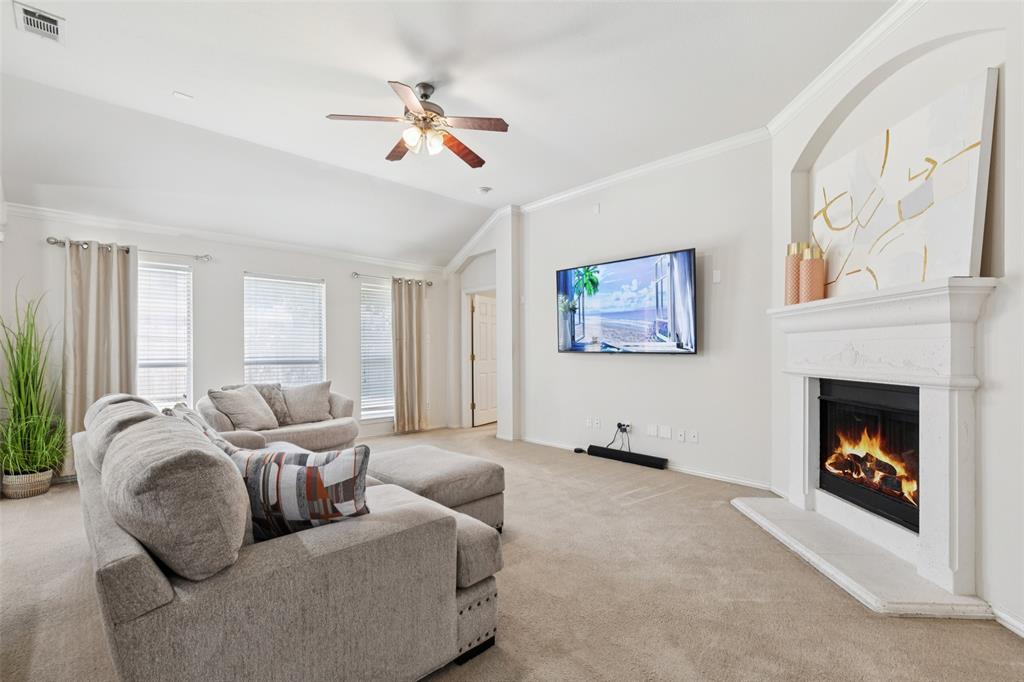 Curb appeal abounds with this lovingly cared-for 4-bedroom, 2-bath home—ready for you to make your own! From the moment you enter, you’re welcomed by abundant natural light, beautiful flooring, and a sense of modern elegance. The inviting living room, anchored by a cozy fireplace, flows effortlessly into the stylish eat-in kitchen. This enviable kitchen features a large island, built-in appliances, rich cabinetry, designer lighting, and a bright breakfast nook perfect for casual dining. The serene primary suite is a true retreat, complete with a spa-like ensuite bath offering dual sinks, separate vanities, a soaking tub, a separate shower, and a spacious walk-in closet. Generously sized secondary bedrooms and a well-appointed bath provide comfort for everyone, while a dedicated home office offers the perfect space for work or study. You will appreciate the private backyard oasis with a covered patio, ideal for relaxing or entertaining year-round. Situated in a great location close to parks, shopping, and dining, this home perfectly blends style, comfort, and convenience. 3D tour available online!