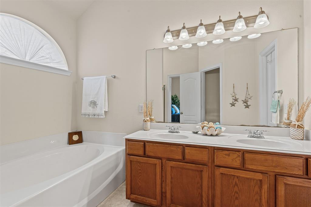 Enjoy the privacy of a split-bedroom layout, with the generous primary suite tucked at the back of the home. The en-suite bathroom includes a garden tub, separate shower, dual sinks, water closet, and a spacious walk-in closet.