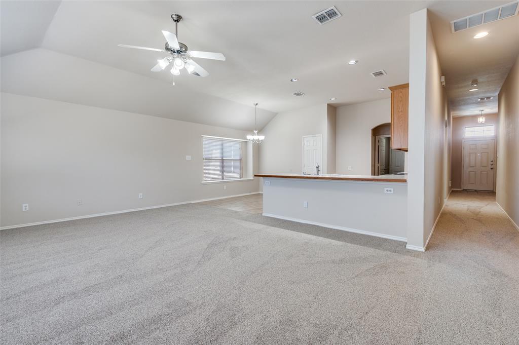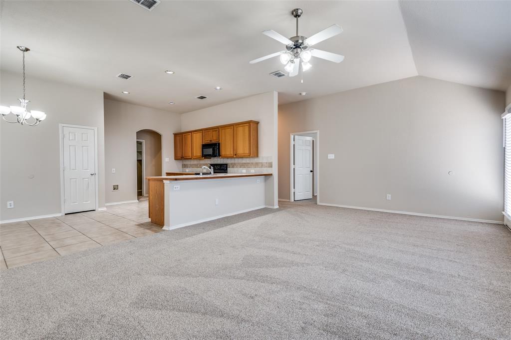 You will love the generous sized bedrooms in this one level home! Beautiful archways in kitchen, breakfast bar will fit 5 barstools, built in microwave, dishwasher, disposal, range oven, Walk-in pantry, Island & MORE!! TRUE four bedroom featuring newly installed carpet, fresh paint and new electric range. Window coverings already in place so you can move in, sink your toes into the new carpet and plan your day at the pool! Kiddos can walk to Comanche Elementary or Prairie Vista Middle school. Master Planned community with park, playground sparkling community pool and clubhouse! Near BNSF, Amazon, and Alliance Corridor with easy highway access. Better bring your measuring tape because you'll start planning where to place your furniture when you see this beauty!