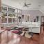 From the moment you walk in, you're greeted by soaring ceilings, designer light fixtures, and an abundance of natural light pouring in from oversized windows that frame the lush, private backyard. The open floor plan features modern touches throughout, with elegant chandeliers hanging from above and a seamless flow from room to room, ideal for both entertaining and everyday living.