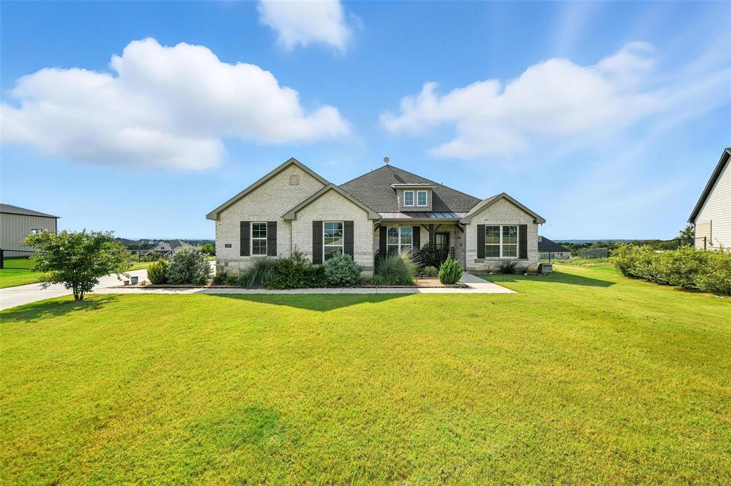 Imagine enjoying the breathtaking sunsets from this expansive backyard! This stunning home offers an inviting open floor plan, perfect for both everyday living and entertaining. The spacious living area is centered around a stylish TV wall and fireplace, creating a warm and welcoming focal point. The chef’s kitchen features gorgeous granite countertops, abundant cabinetry, and a convenient butler’s pantry as well as large pantry. The luxurious primary suite boasts a spa-like en suite bath and a generous walk-in closet. Well-sized secondary bedrooms are filled with natural light and are split from the primary bedroom, while a large dedicated office provides the ideal space for working from home. Step outside to a beautifully sized backyard with a covered patio — the perfect spot to relax and enjoy the outdoors and the beautiful sunrise and sunsets. This beautiful is situated on a 1 acre lot in a beautiful subdivision!