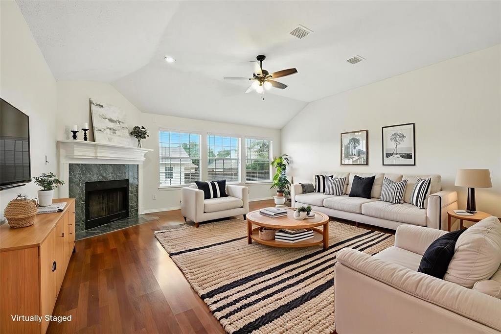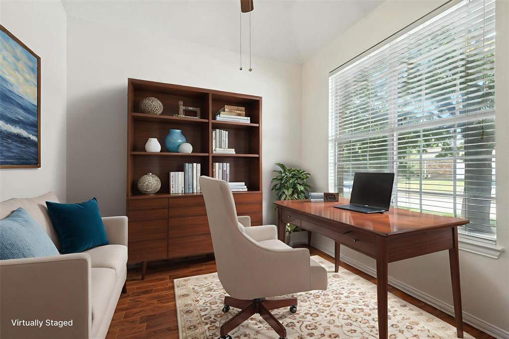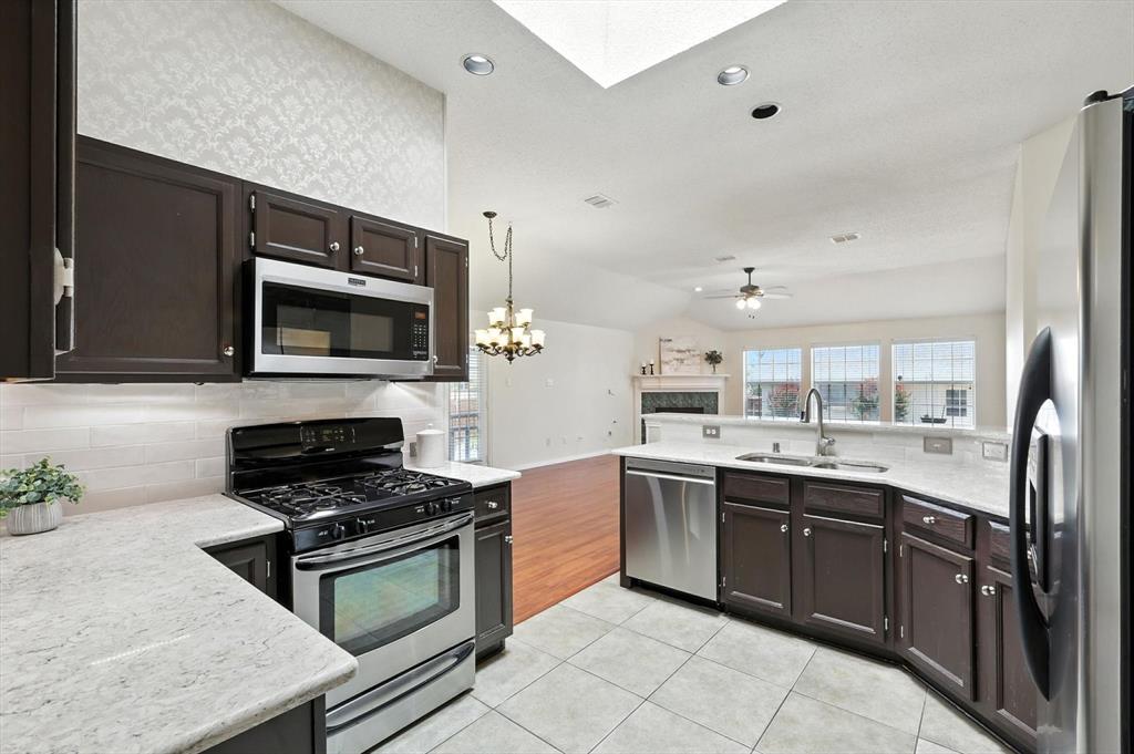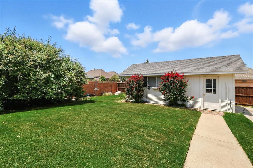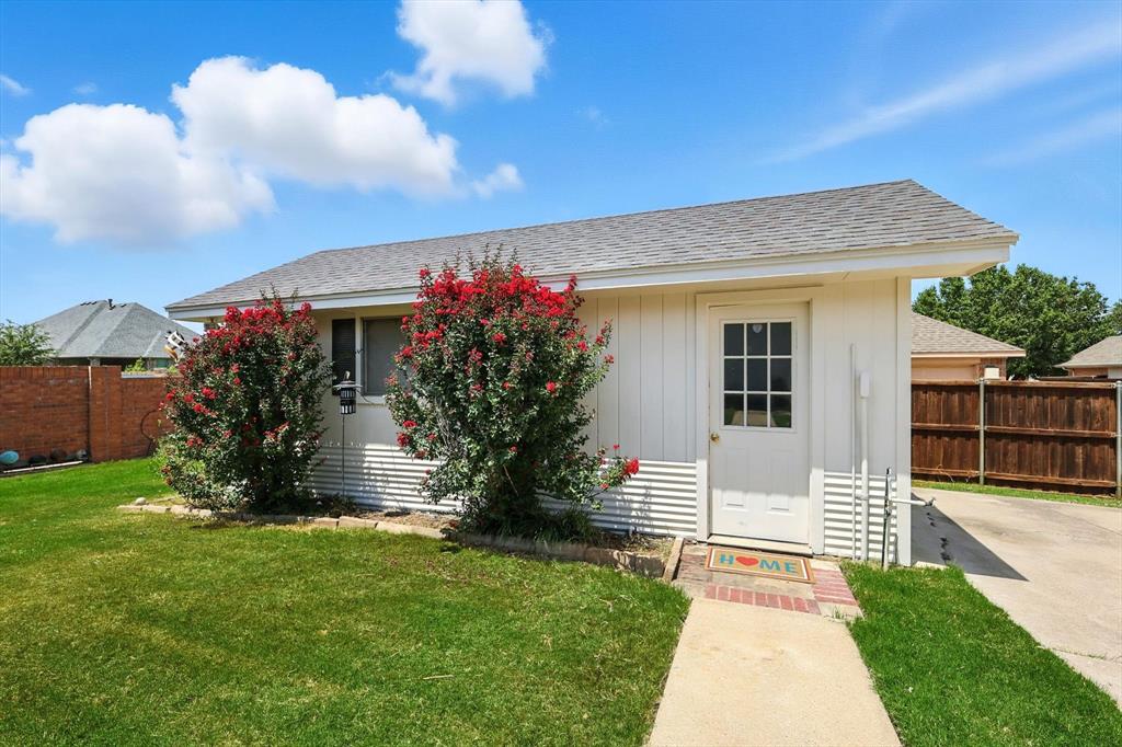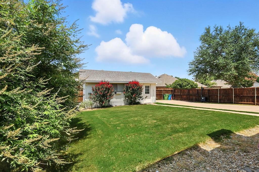 Welcome to 1237 Marina Court on the corner of CONVENIENT LOCATION & I LOVE A 3-CAR GARAGE! Darling single story featuring 3 bedrooms, 2 baths & a separate study. The desirable, open layout is functional & comfortable with high ceilings & an abundance of natural light. NEW paint on walls & trim throughout. NEW paint on the exterior soffits & facia. NEW carpet in bedrooms. Easy to maintain laminate wood flooring throughout the main areas. The kitchen is at the heart of the home & features stunning quartz countertops, a breakfast bar, stainless steel appliances, a gas cooktop & a pantry. The spacious living room has vaulted ceilings, a gas fireplace, & overlooks the back yard. The primary suite is separate from the 2 secondary bedrooms & features a large window seat, high ceilings, separate shower, jetted tub, dual sinks & a WIC. French doors lead to the private study. Relax outdoors on the covered deck & cozy up on the charming hanging daybed. Attached 2-car garage... PLUS a 1-car detached garage with built-in AC unit & 220 electrical outlet. This extra space is great for parking your prized wheels or for use as a workshop, mancave or she-shed! Fully fenced back yard with electric-gated driveway entrance. Excellent location close to shopping, dining, & all the conveniences. Easy access to DFW airport & amazing schools!