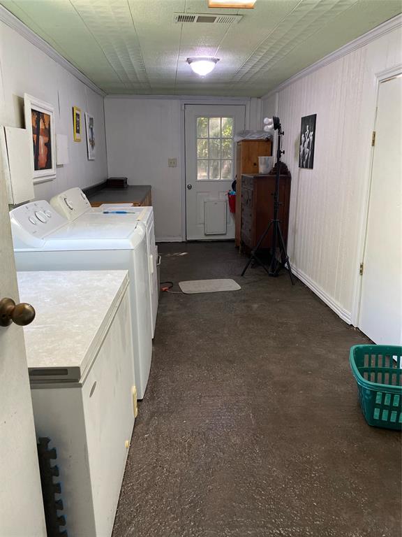 Escape the hustle and bustle and enjoy peaceful country living on this 1.39-acre fully fenced property with a gated entrance. Outside of the City Limits, this spacious 2,524 sq. ft. farm house offers 3 bedrooms, 2 bathrooms, and a large unfinished bonus room upstairs 20 x 15 —perfect for a 4th bedroom, game room, or home office. House has lots of built in cabinets in dining and living area and most rooms have ceiling fans. The 60 inch Flat Screen TV with Roku in the Living Room is Included. The farm house kitchen has two expansive walls filled with cabinets, lots of counter space and an island with a beautiful wood ceiling accent and ceiling fan. Kitchen, master bedroom and bathroom have beautiful new floors. Plenty of room for an eat in kitchen and a huge laundry room with room for a freezer or extra refrigerator. There is also a door going outside off of the laundry room.