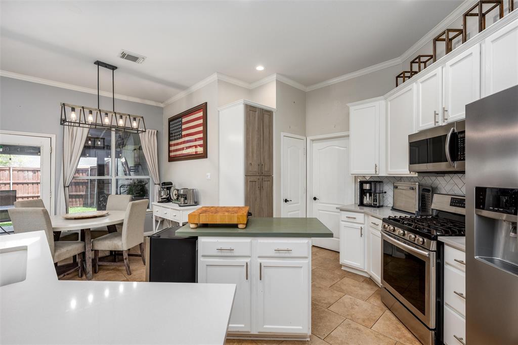 This is your opportunity to own a beautiful home in the popular Lost Creek Ranch neighborhood in Allen! This 4-bedroom, 2-bathroom home offers wood flooring with tile in the wet areas. The open floor plan features an updated kitchen with quartz countertops, decorative herringbone backsplash and stainless steel appliances that overlook the living room with a wood-burning fireplace. There's a separate hallway featuring 3 bedrooms and a full bathroom. Step outside to an extended covered patio for complete privacy with a board-on-board fence, perfect for relaxing or entertaining. Enjoy the community pool, parks, ponds, and scenic walking trails. Marion Elementary is nearby, and the home is just minutes from Eagle Stadium, Allen Premium Outlets, Village of Allen, and Fairview Town Center, offering so many dining and shopping options.