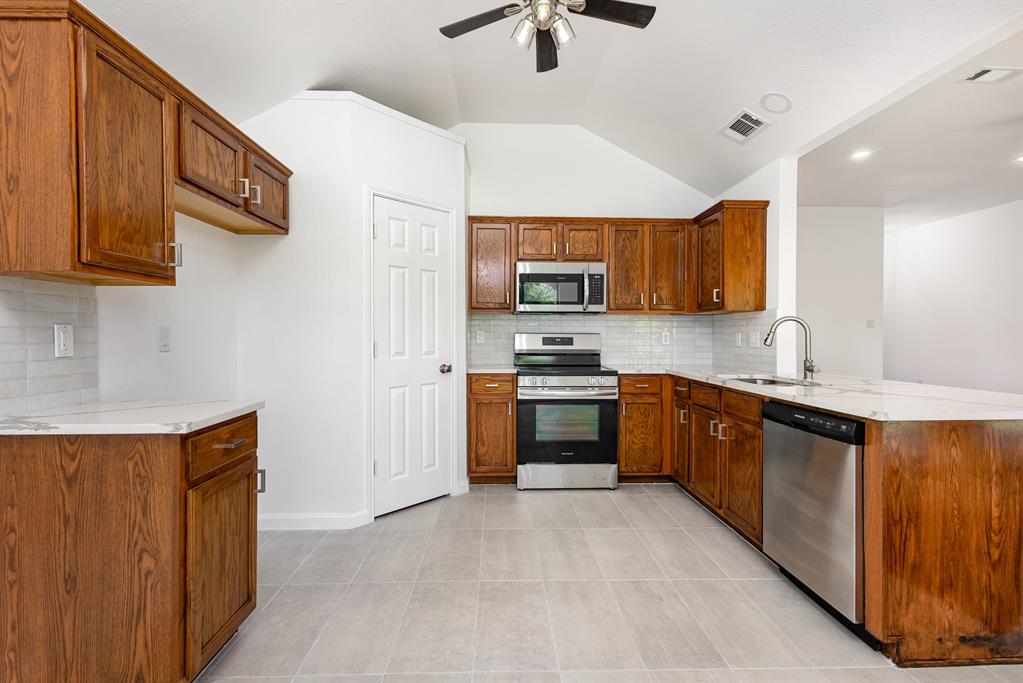 This meticulously cared for single story residence combines classic design with modern upgrades. The spacious interior features a bright, open-concept layout, split bedroom plan, and thoughtful touches like wide-plank wood floors and chic custom lighting. The kitchen shines with stainless appliances and a breakfast bar, perfect for casual dining.