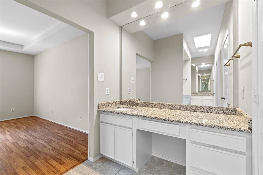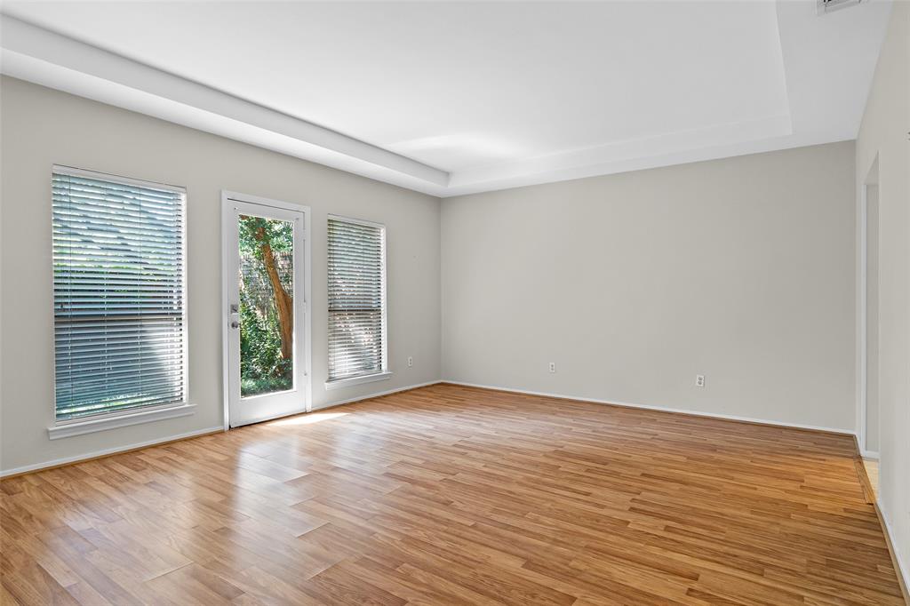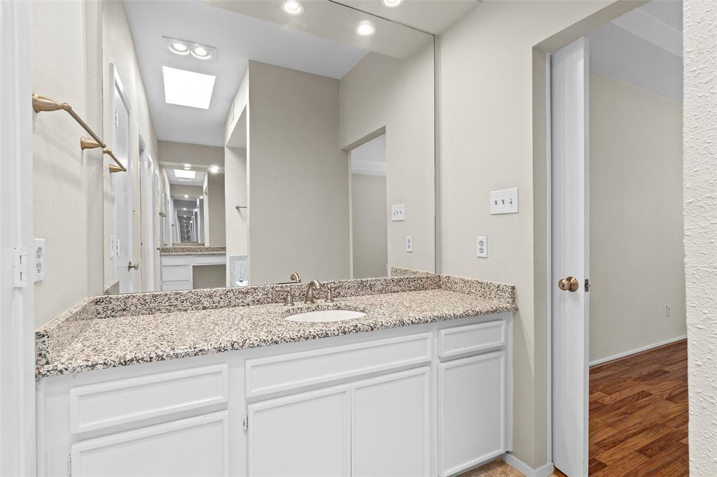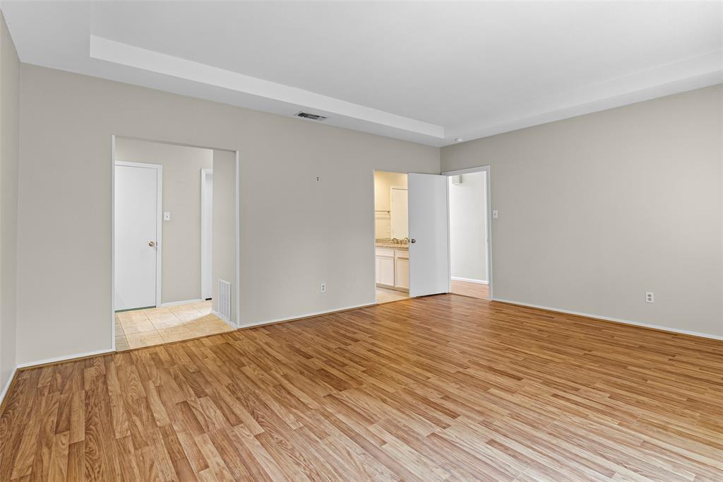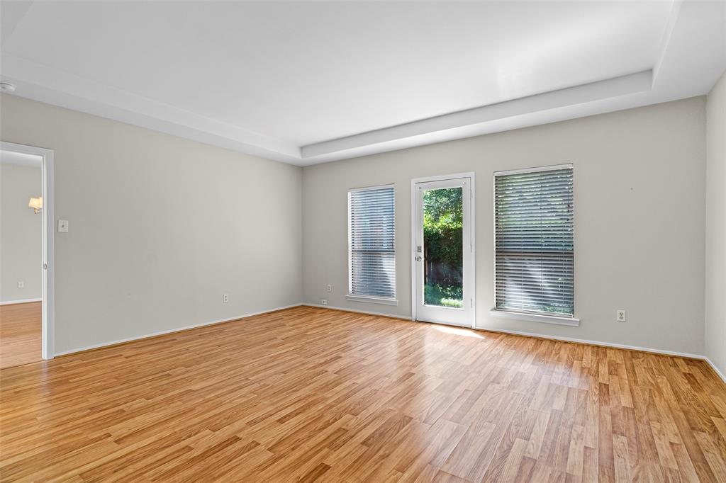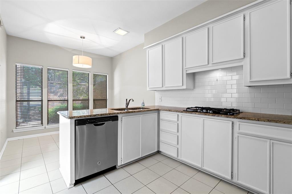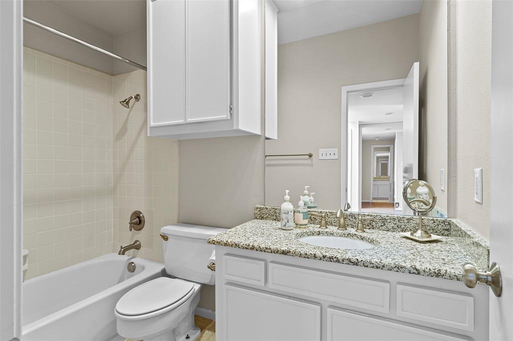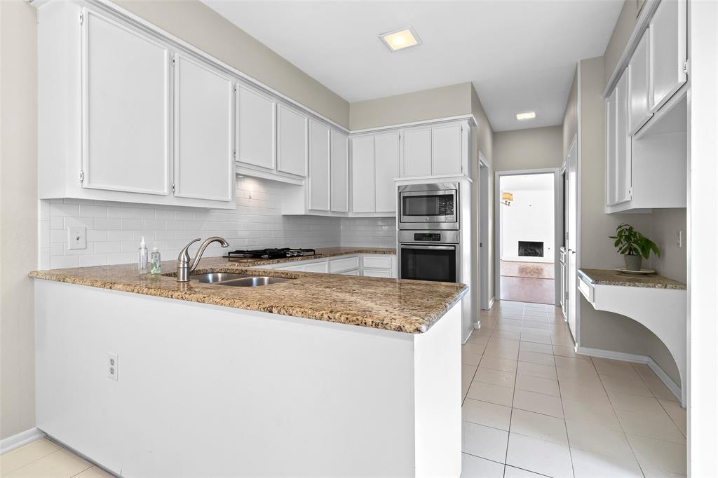 Wonderful one story home. Beautiful views to front court yard from kitchen and breakfast area. Kitchen features gas cook top, built in oven and micorwave, granite surfacees, planning desk and spacious pantry. Wood floors throughout except tile in baths and kitchen. Separate utility room with storage cabinets. High ceiling in living room opening to relaxing patio. The primary suite spacious enough to accomodate king size furniture plus sitting area, Primary bathroom features split seprate dressing areas each with it's own granite topped vanity and walk-in closet. Utilty rooom with storage is large enough for full size washer. 2 car garage with extra storage space. Communitie amenities includes swimming pools, tennis courts, clubhouse and multiple greenbelt areas. Roof December 2023. This one won't last.