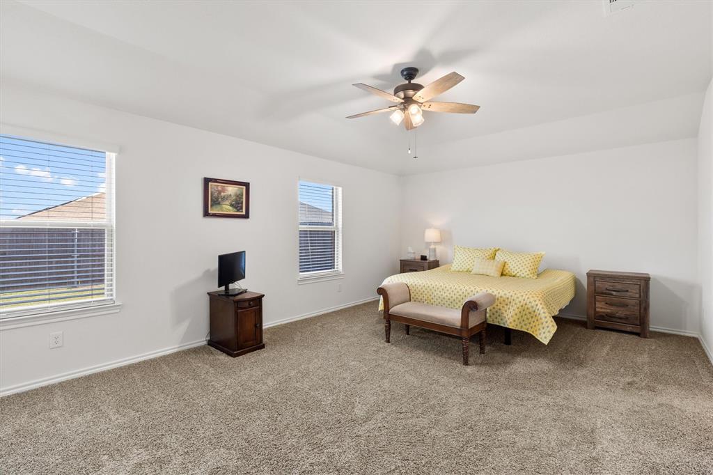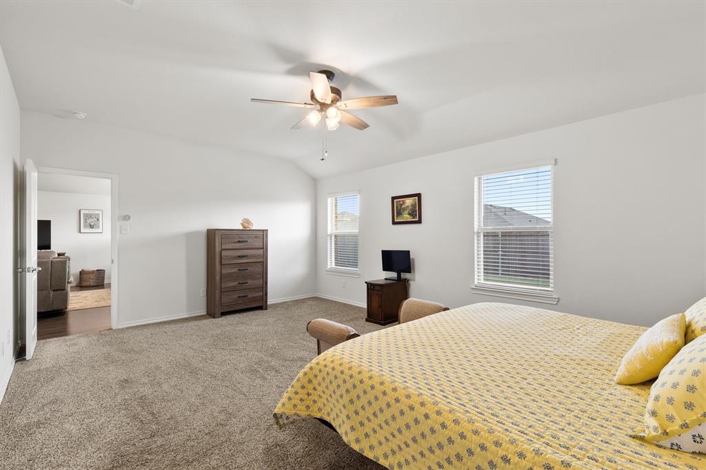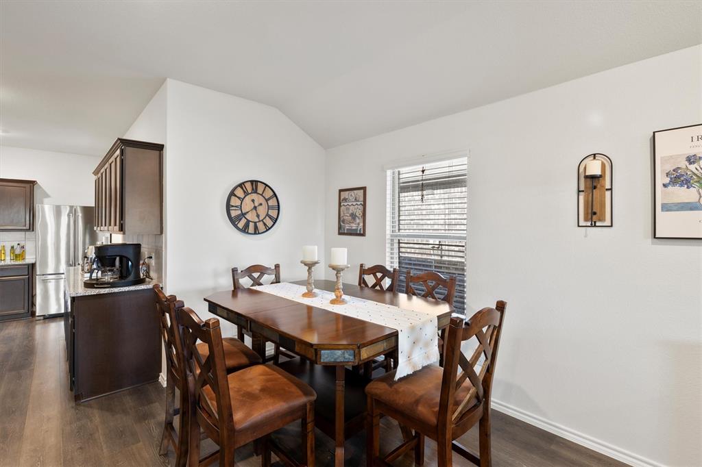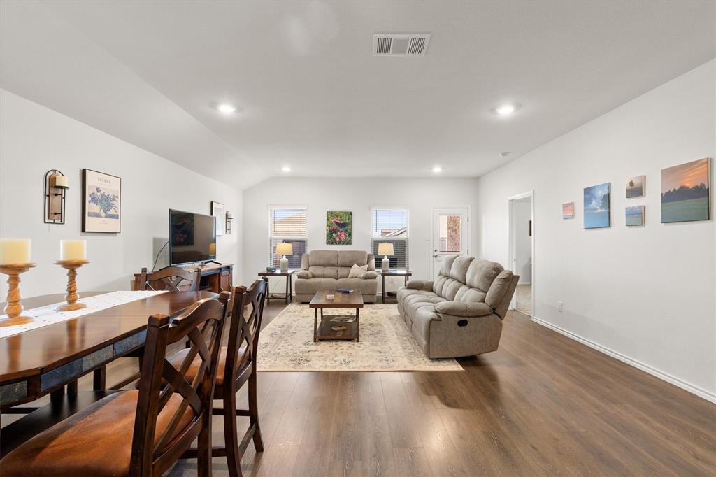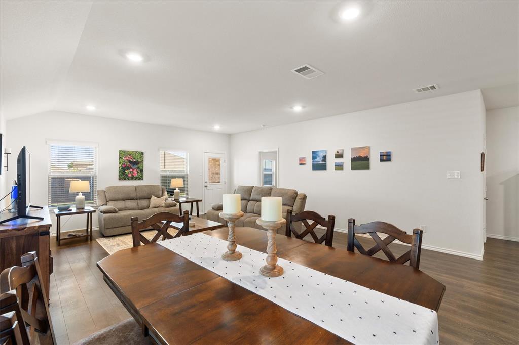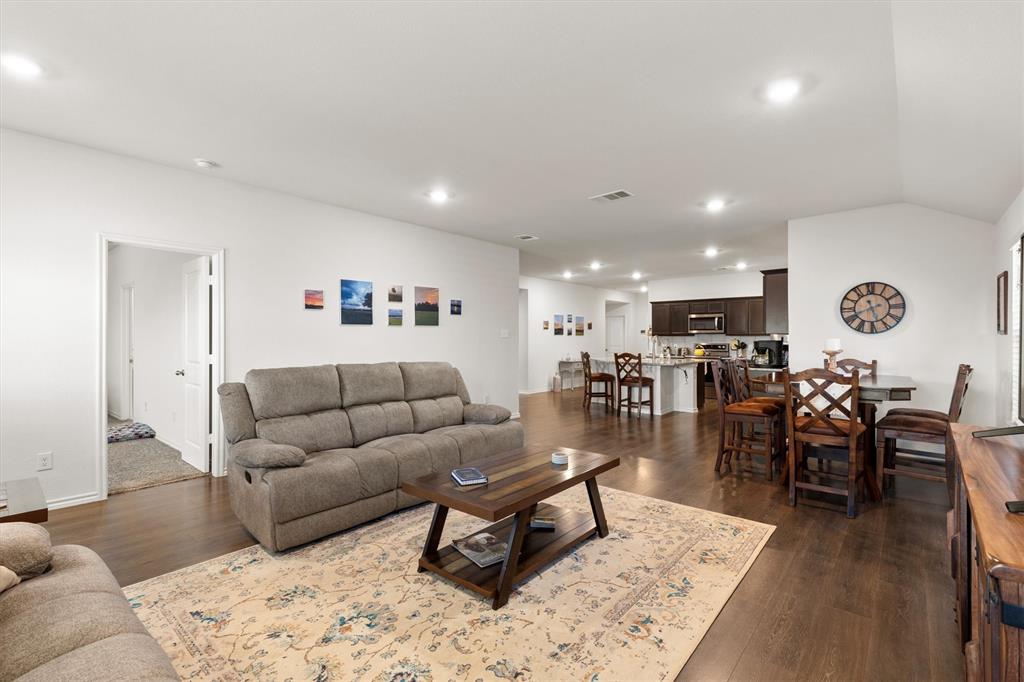 **OPEN HOUSE 081725 FROM 11:45-1:45PM**Charming One-Owner Home in Sought-After Valor Farms! This beautifully maintained home has striking curb appeal with its rock and stone exterior. Step inside to a bright, open floorplan with extensive laminate wood flooring that flows through the main living spaces. The spacious kitchen is a true centerpiece—offering abundant cabinetry, an upgraded sink, faucet and dishwasher, a generous granite island perfect for casual dining, and a nice sized pantry. There’s even extra counter space that works perfectly as a coffee bar or prep station. The expansive primary suite easily accommodates a sitting area and features a walk-in closet, linen shelving, a vanity, and an oversized shower. Three additional bedrooms and a second full bath provide plenty of space for family, guests, or a home office. Two car front entry garage with a tankless hot water heater and a ring doorbell! Out back, a covered patio overlooks the lush grassy yard—perfect for grilling, entertaining, or simply unwinding. Enjoy community amenities including a refreshing pool, plus the convenience of a brand-new elementary school, Sarah Moss Elementary, nearby and quick access to I-30.