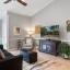 The large kitchen has quartz countertops installed in 2022, a stylish backsplash, and updated under-counter lighting, creating a fresh, modern look and feel. The dishwasher was replaced in 2023.
