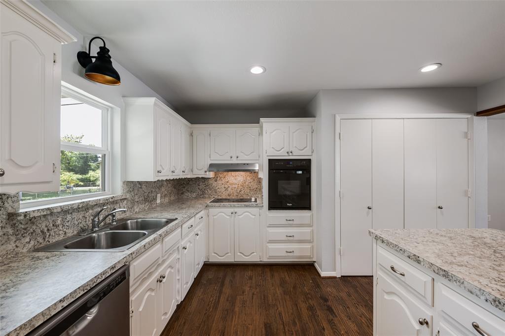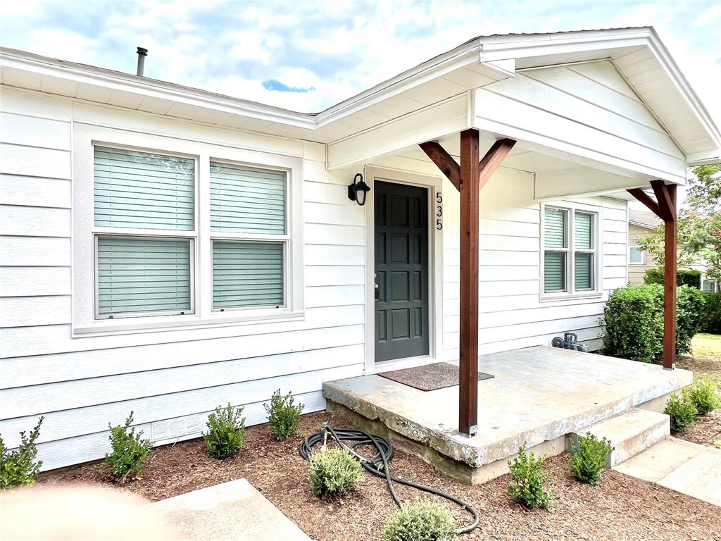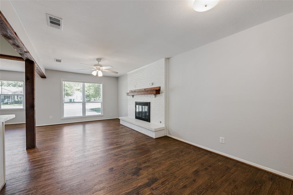 Tucked away on a quiet street you'll find this little charmer*It has all the modern upgrades but still holds onto the vintage character we all love*Wide open spaces is what you'll see as soon as you open the front door*Gorgeous hardwoods throughout this home creates a seamless transition from room to room*The wooden beams provide that extra special custom look*The wood burning fireplace centered in the room offers optimal space for those cozy gatherings*The spacious kitchen boasts a huge island offering tons of storage and a breakfast bar*A full size utility closet sits right off the kitchen for additional storage space*Out back you won't be disappointed with the massive covered patio, a must have during the Texas summers*An oversized storage shed will also convey with the property*Don't forget this property has NEW windows & NEW paint inside and out*