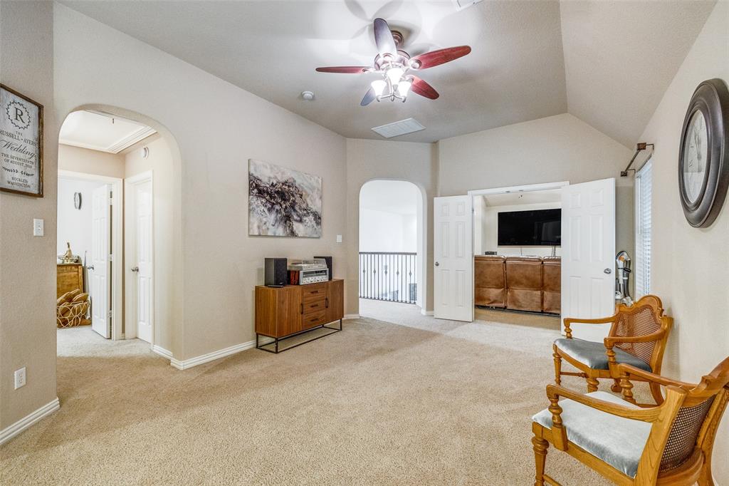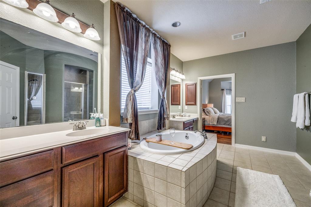 Downstairs, you’ll find the primary suite with separate vanities, an oversized dual shower, soaking tub, and his-and-hers walk-in closets, as well as a private office for working from home. Upstairs, three additional bedrooms surround a media room and living area, providing plenty of space for family or guests. Step outside to a backyard oasis with a covered patio, turf lawn, and plenty of space for gatherings. Residents enjoy community amenities including a pool, splash pad, and playground. With quick access to Chisholm Trail Parkway, shopping, dining, and more, this home combines style, function, and location perfectly. Owner is the listing agent