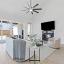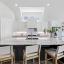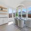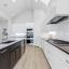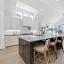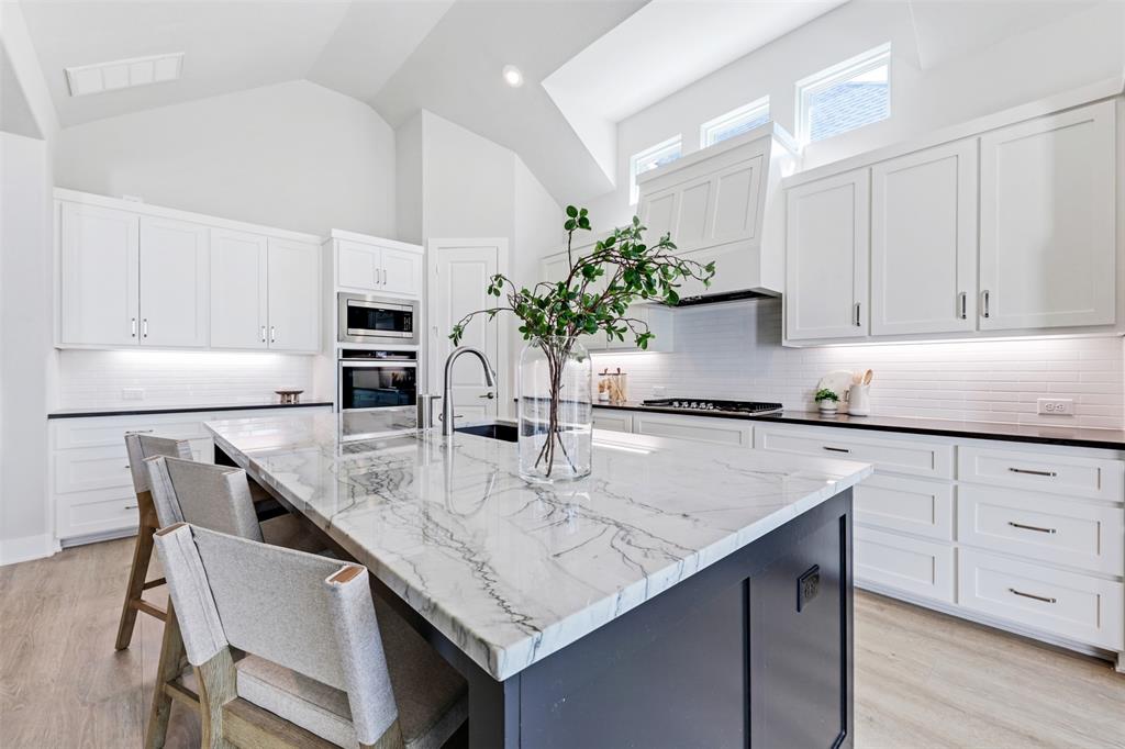 The open-concept layout showcases soaring ceilings and expansive sliders that seamlessly connect the living space to the backyard, creating a perfect flow for entertaining. The chef’s kitchen is a true showpiece, with quartzite countertops, an oversized island, abundant pot-and-pan drawers, floating shelves, and a breakfast area surrounded by windows that fill the room with natural light.