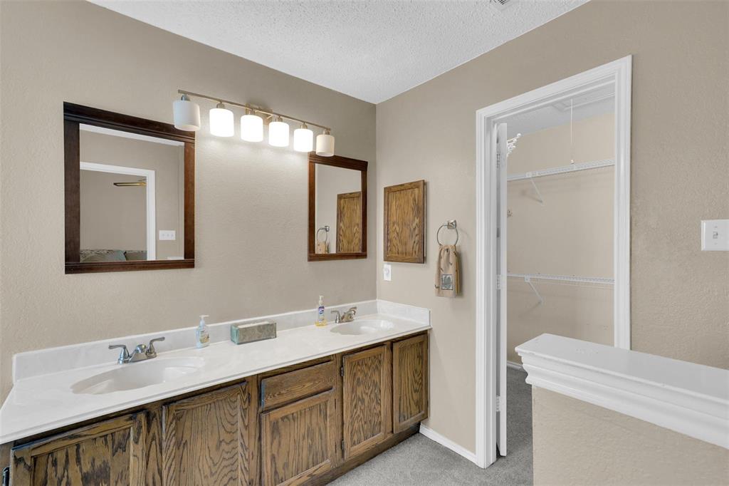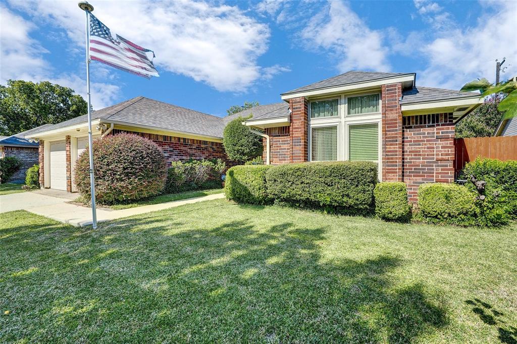 WARM AND INVITING ONE STORY HOME IN A GREAT CENTRAL DFW LOCATION * PERFECT FOR A RETIRED COUPLE, A YOUNG FAMILY OR ANYONE LOOKING FOR THE CONVENIENCE OF A SINGLE STORY ARRANGEMENT * THIS HOME HAS MANY CUSTOM FEATURES INCLUDING ELABORATE MASTER BATH WITH GARDEN TUB AND SEPARATE SHOWER, BUILTIN QUALITY CABINETRY AND SOARING VAULTED CEILINGS * MASTER BEDROOM HAS A LARGE WALK-IN CLOSET * THE HOME HAS A DESIRABLE FLOOR PLAN WITH A CENTRAL LIVING AREA WITH BEDROOMS SPLIT FRONT TO REAR ON ONE SIDE AND THE KITCHEN AND DINING AREA ON THE OTHER SIDE * THIS FULL BRICK HOME HAS A COVERED FRONT PORCH AND A REAR PATIO COVERED WITH A WOOD PERGOLA * BEAUTIFUL 2025 LUXURY VINYL PLANK FLOORING * LARGE KITCHEN HAS A LENGTHY BREAKFAST BAR * MATURE LANDSCAPING * STORAGE BUILDING * TWO CAR GARAGE WITH OPENER * ESTABLISHED NEIGHBORHOOD